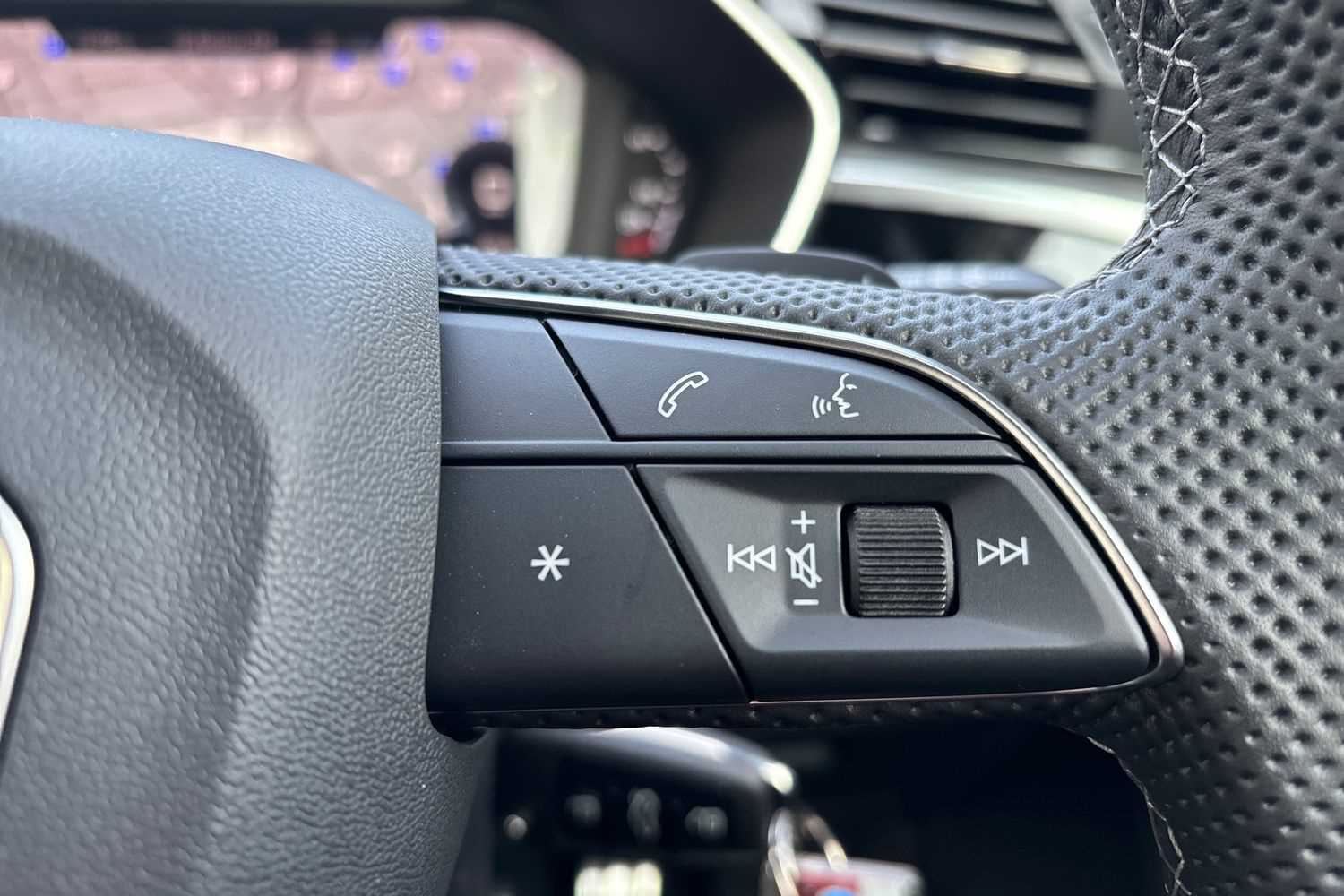 "Steering wheel mounted audio controls"