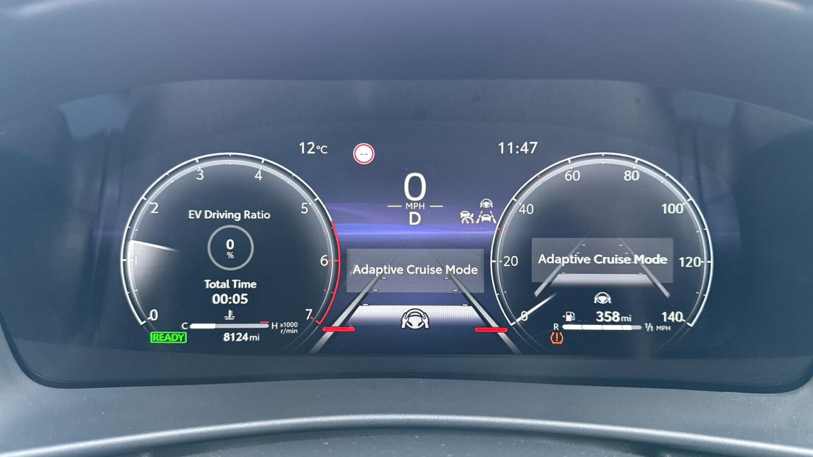 "Start up sequence with movement in dials and lighting",