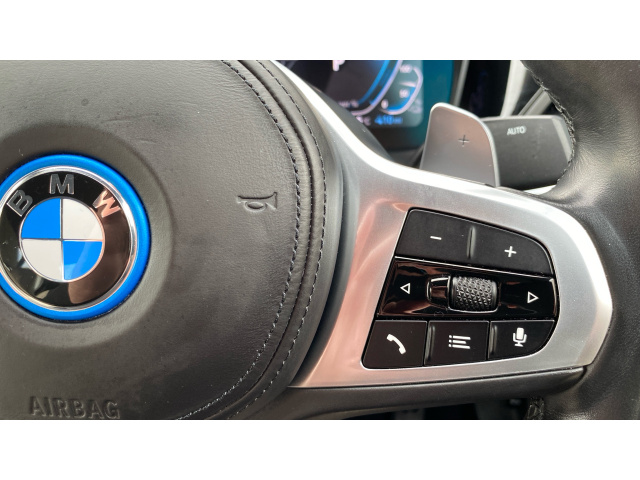"3 spoke sports leather steering wheel in black leather with black stitching and decorative finisher in pearl chrome, specific M badge + leather knob",