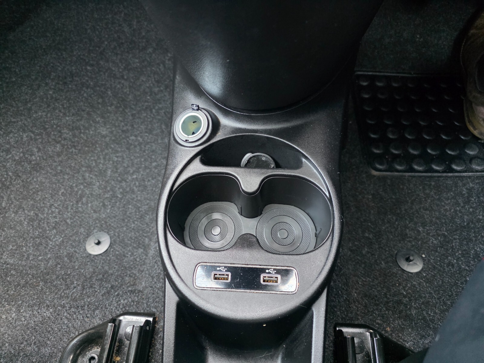 "Front centre storage with two cupholders",
