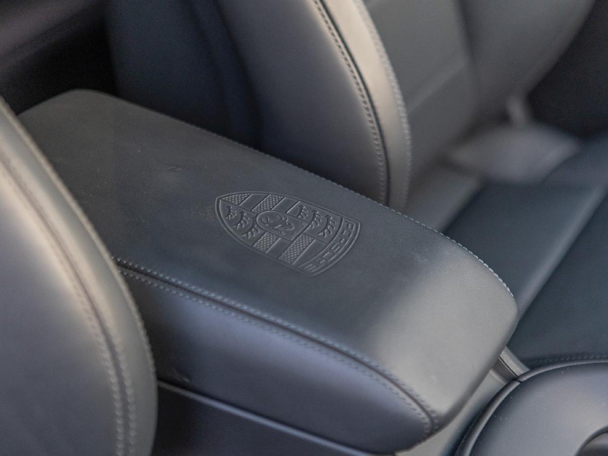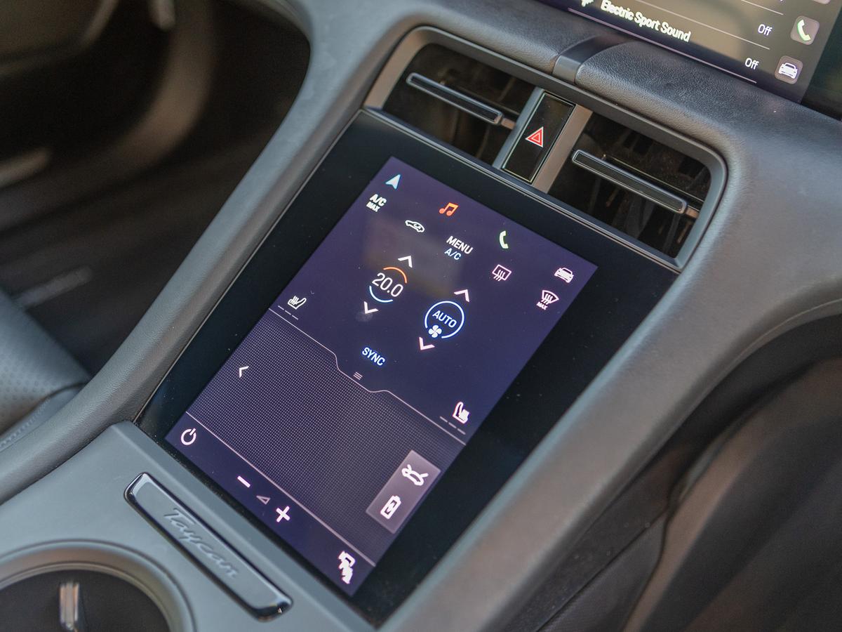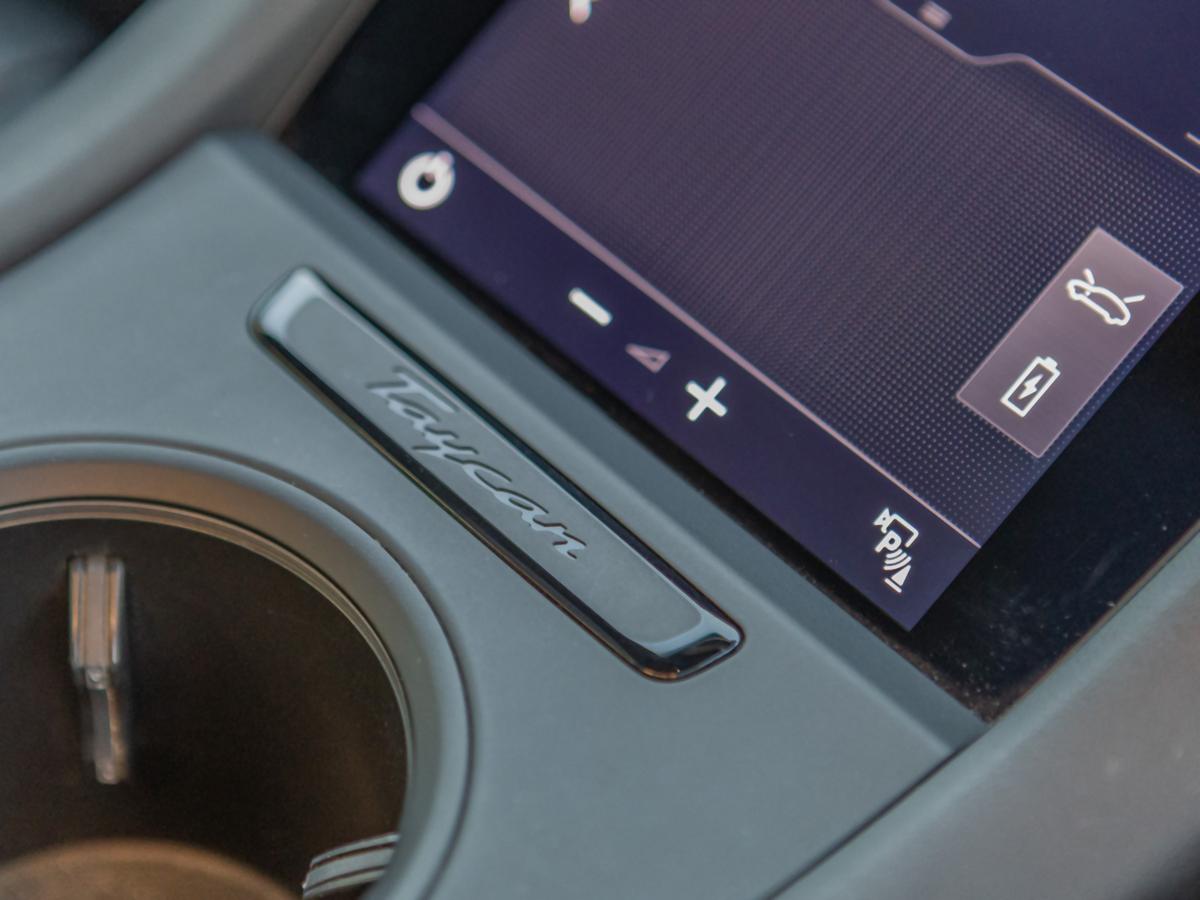 "Taycan badge on center console",