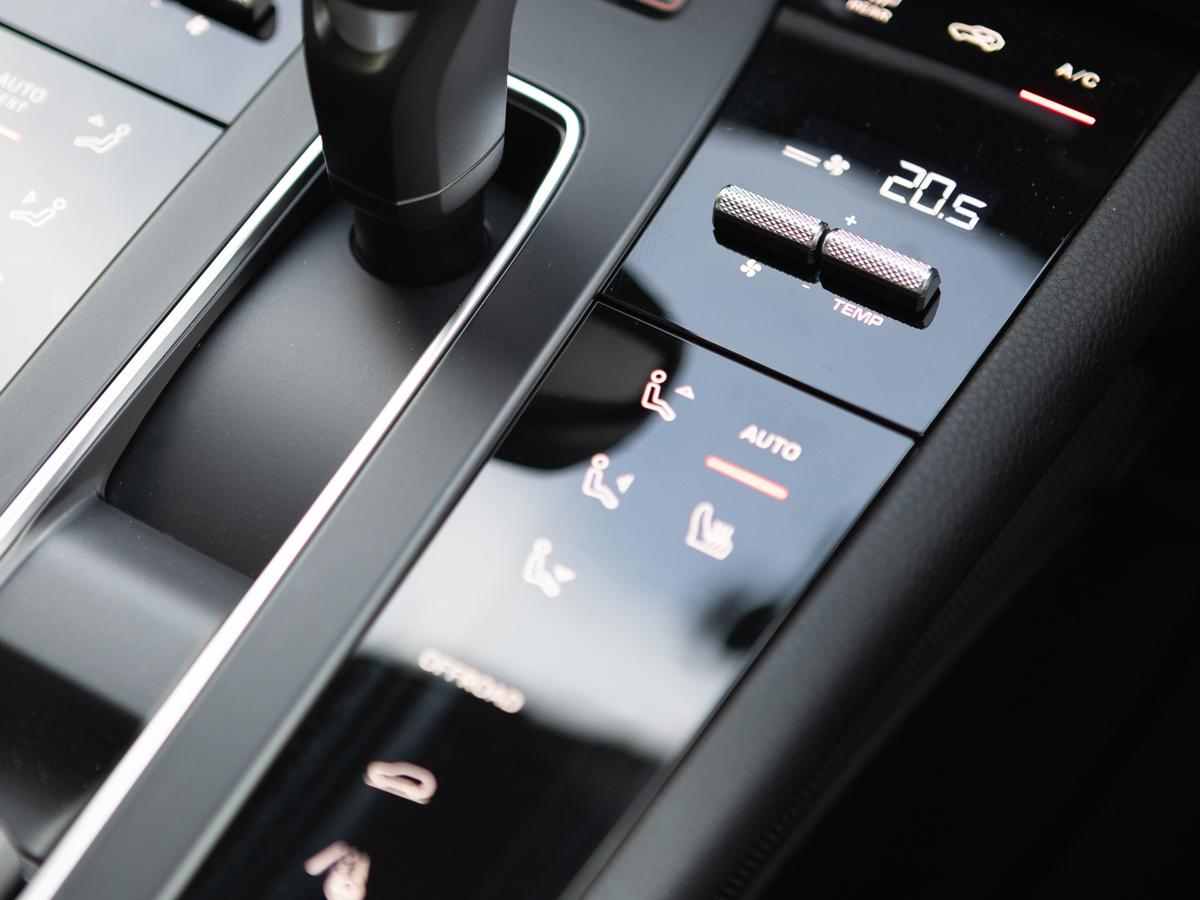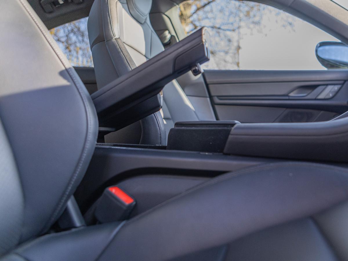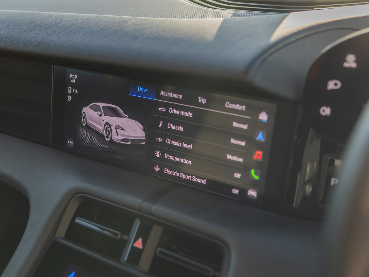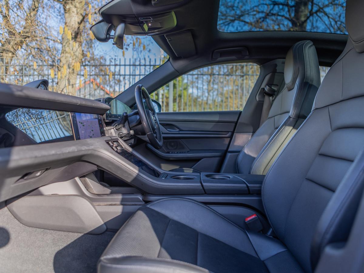 "Taycan badge on center console",