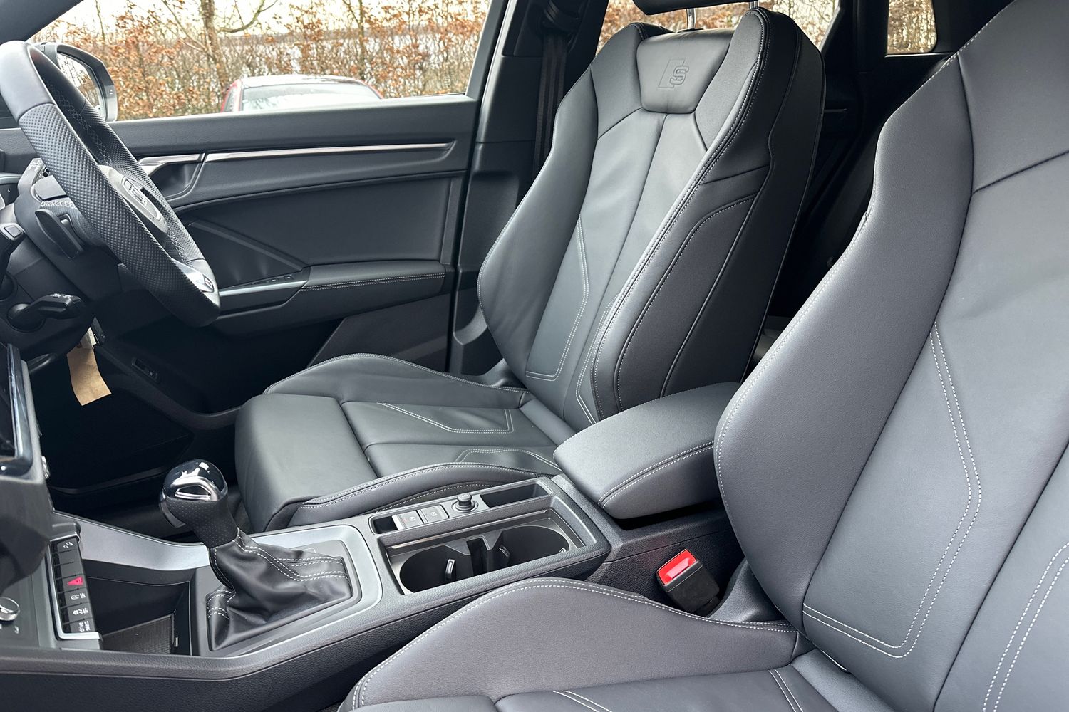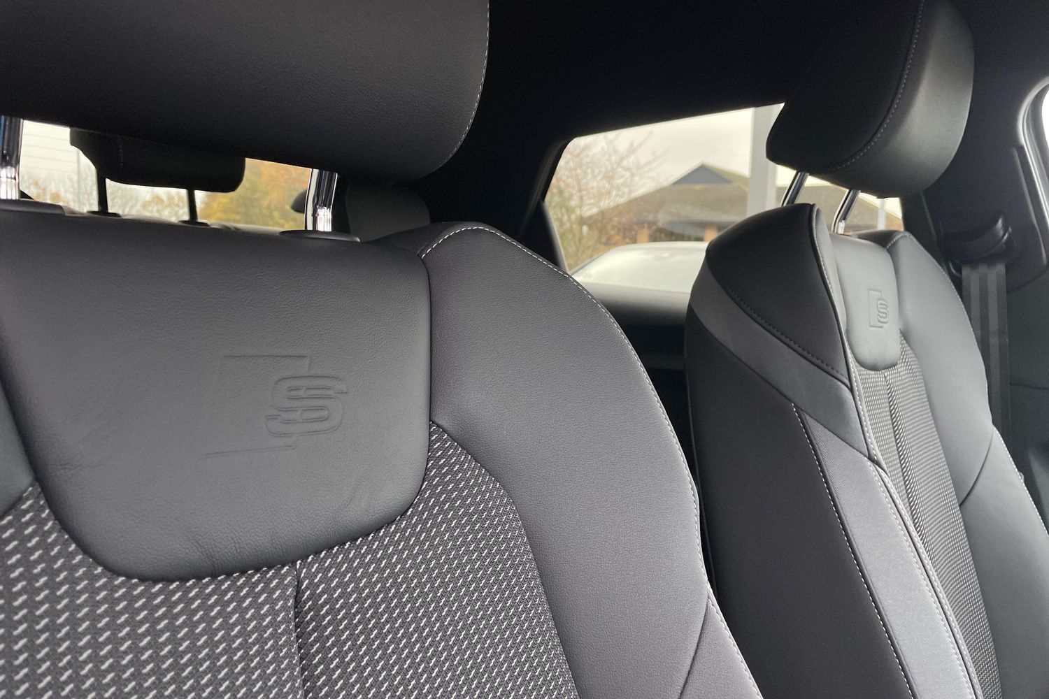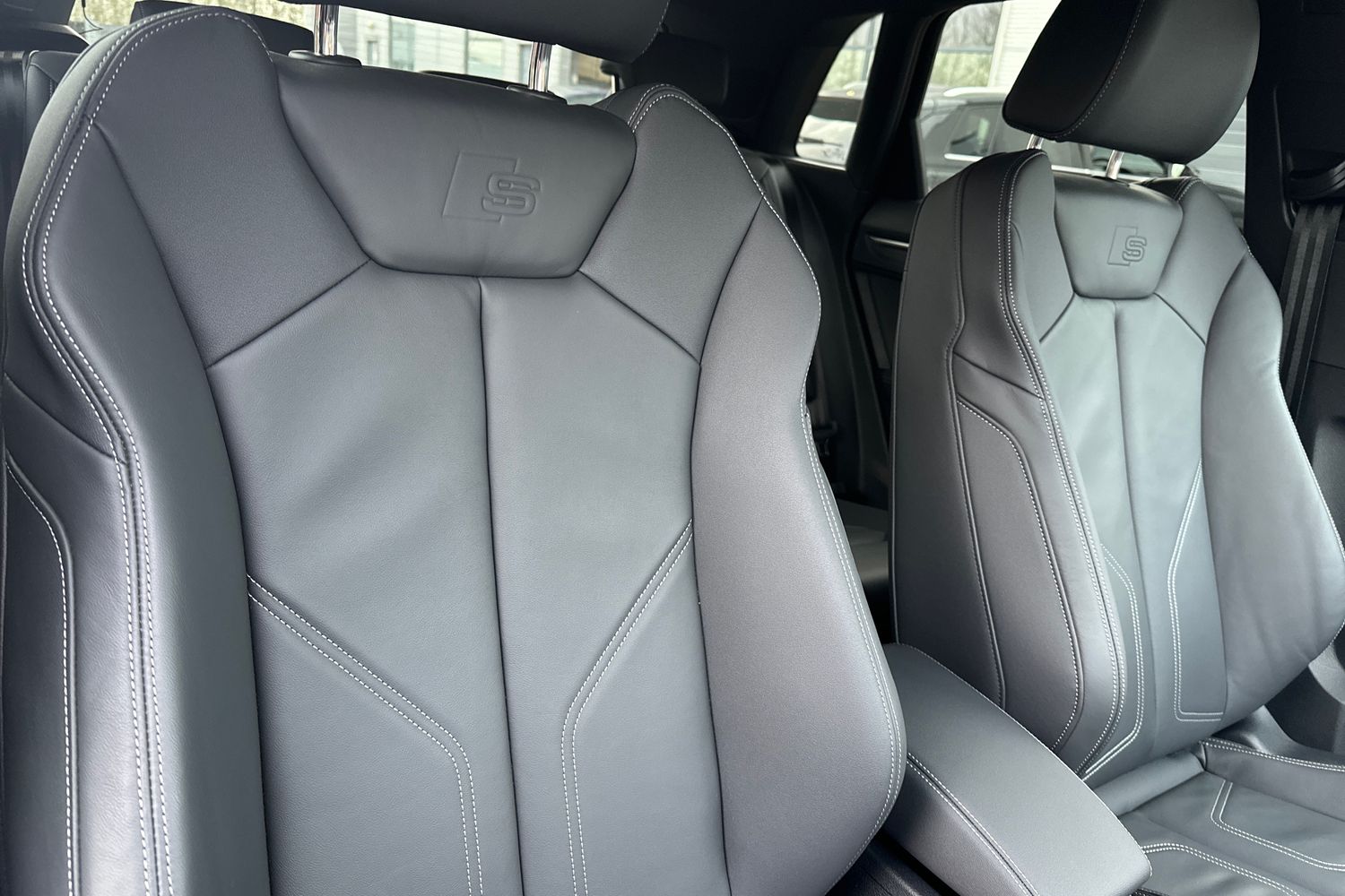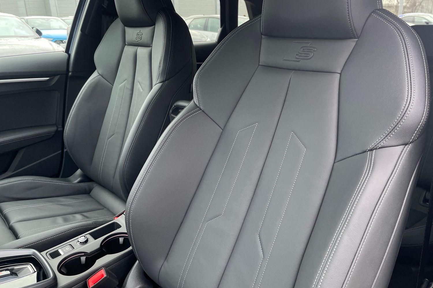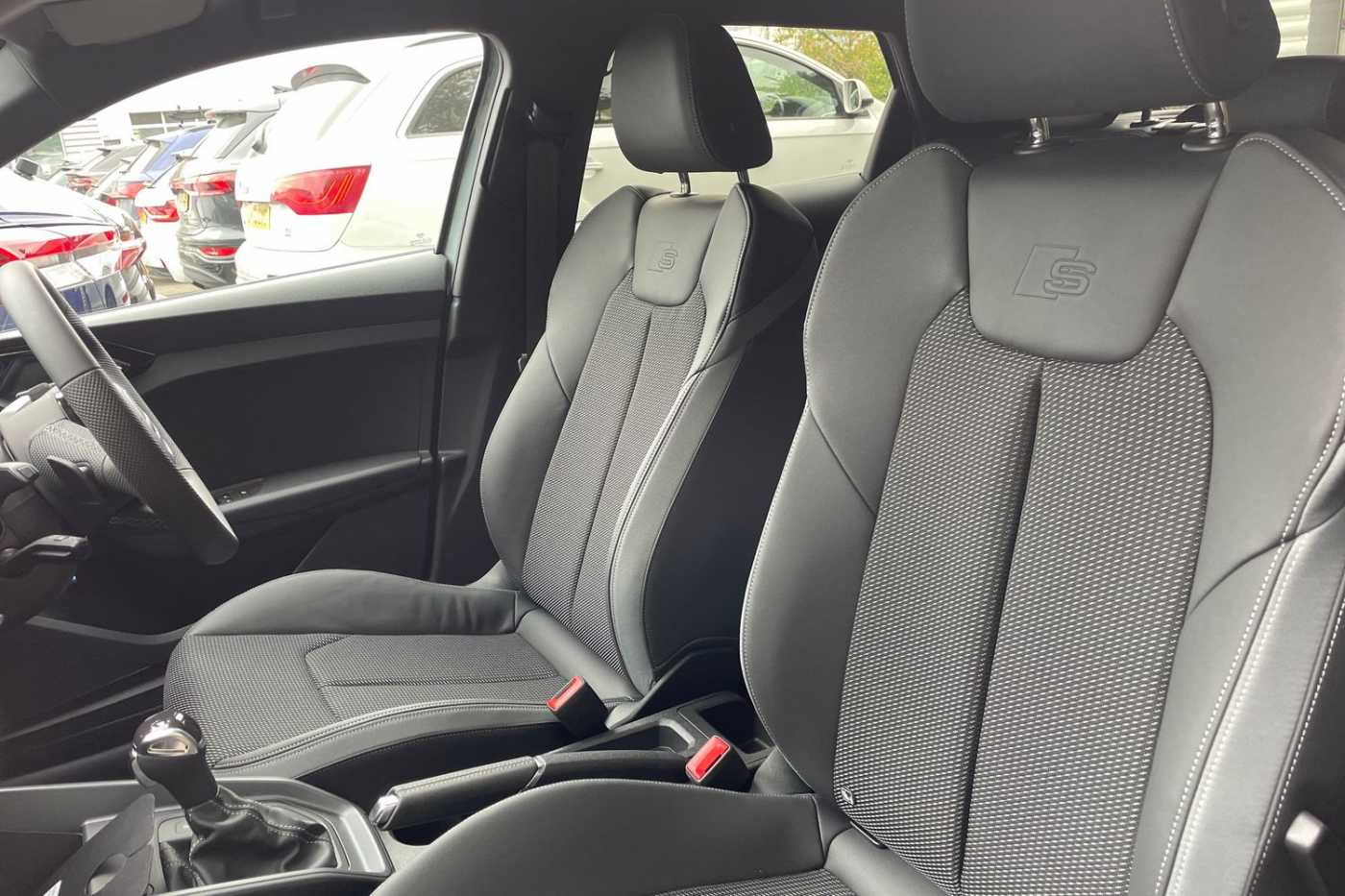 "Twin leather upholstery with front sport seats + S embossing"