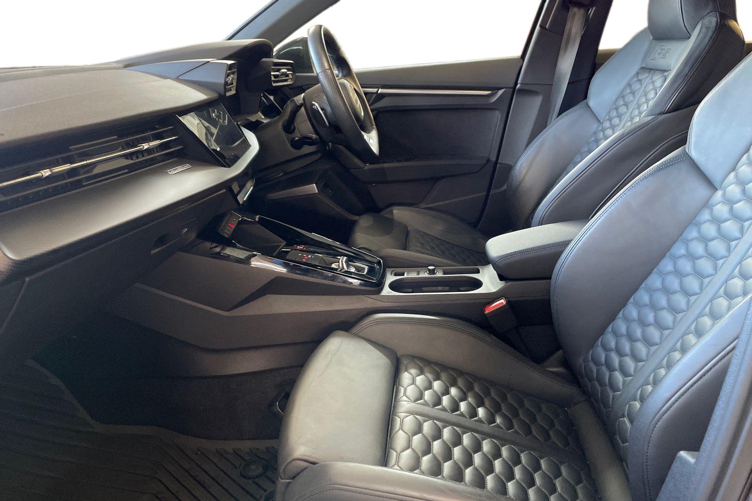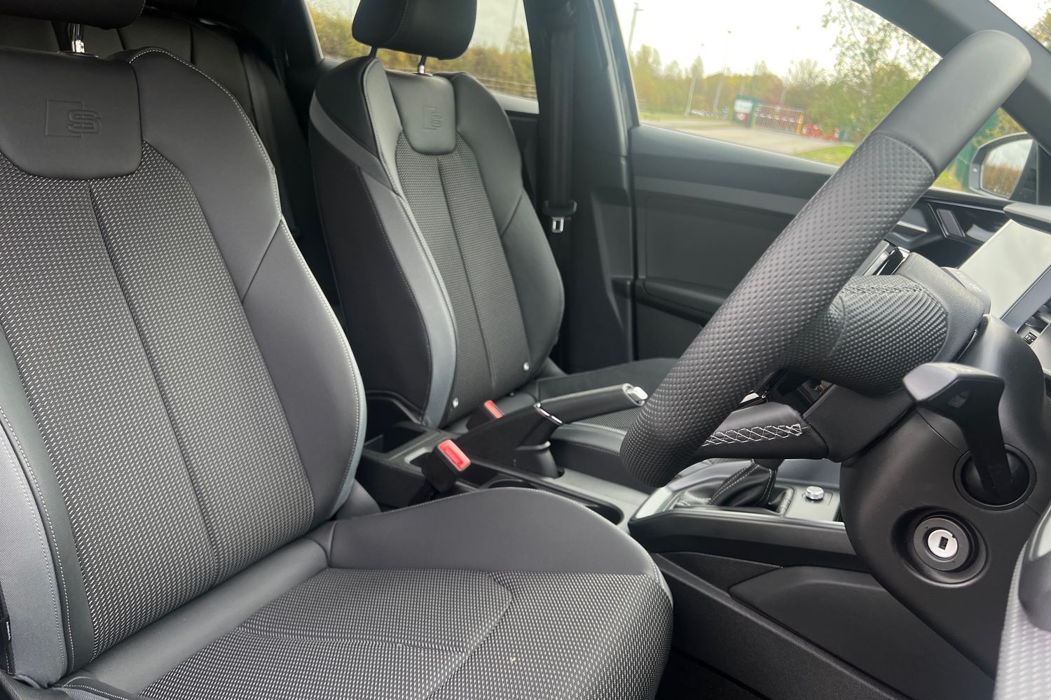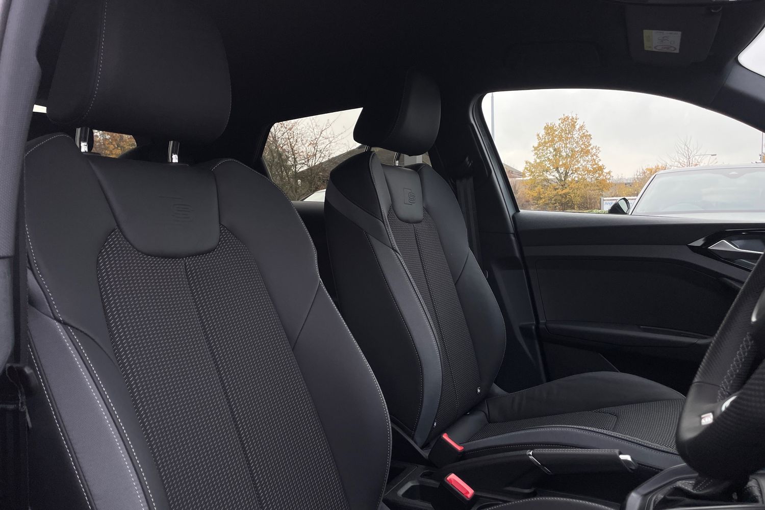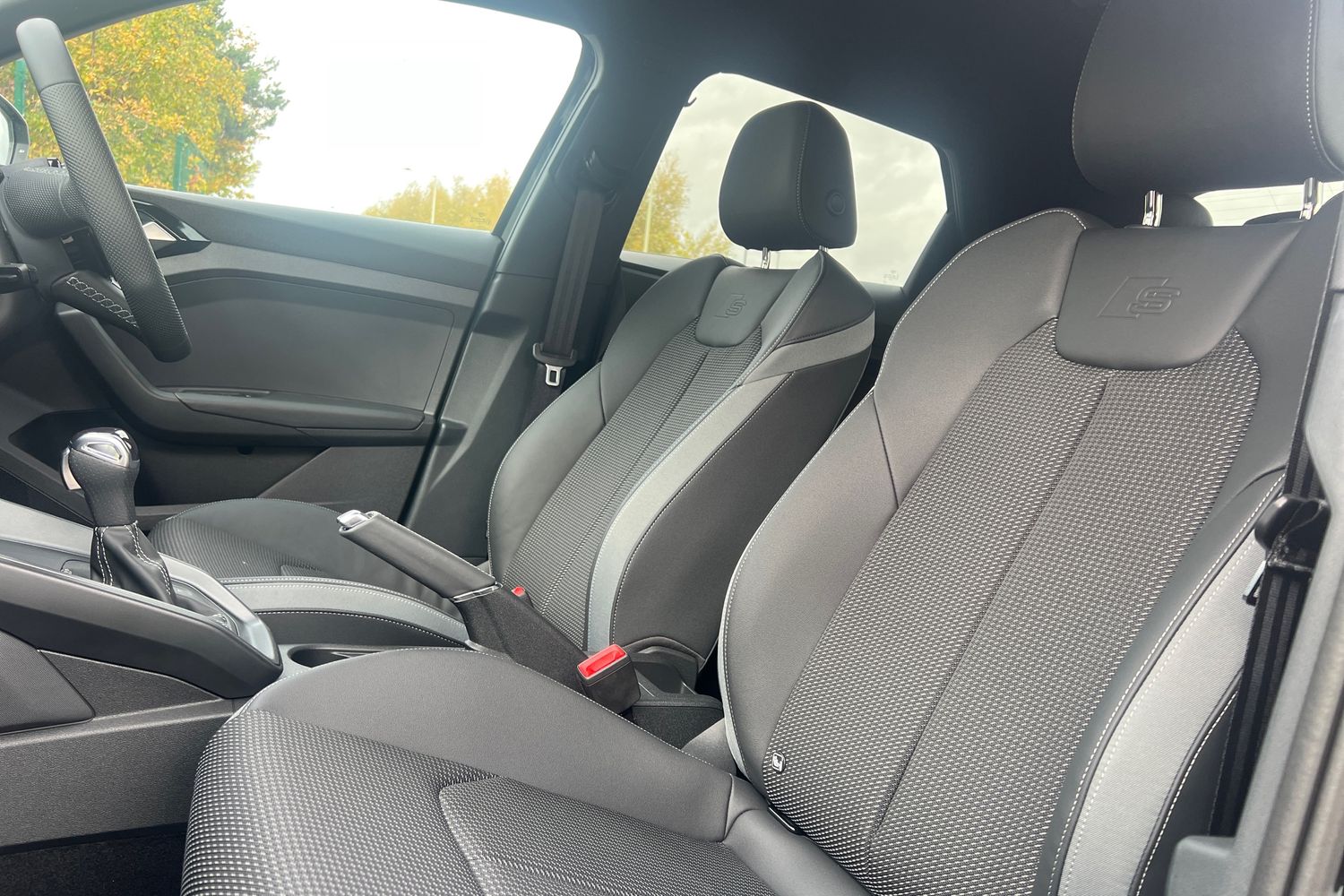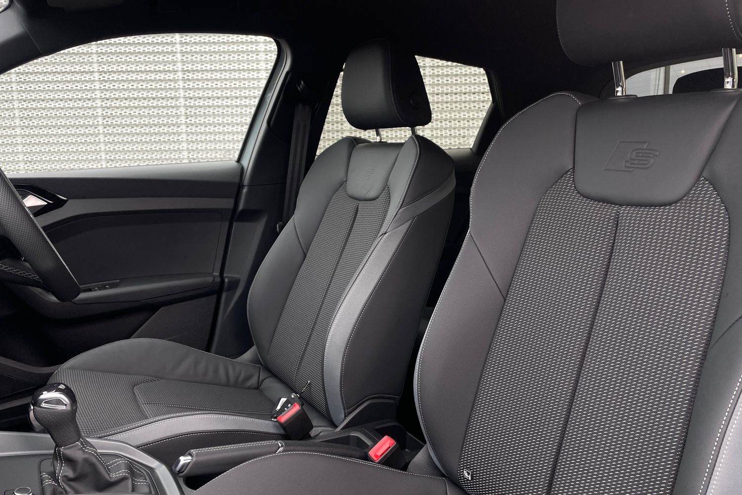 "Twin leather upholstery with front sport seats + S embossing"