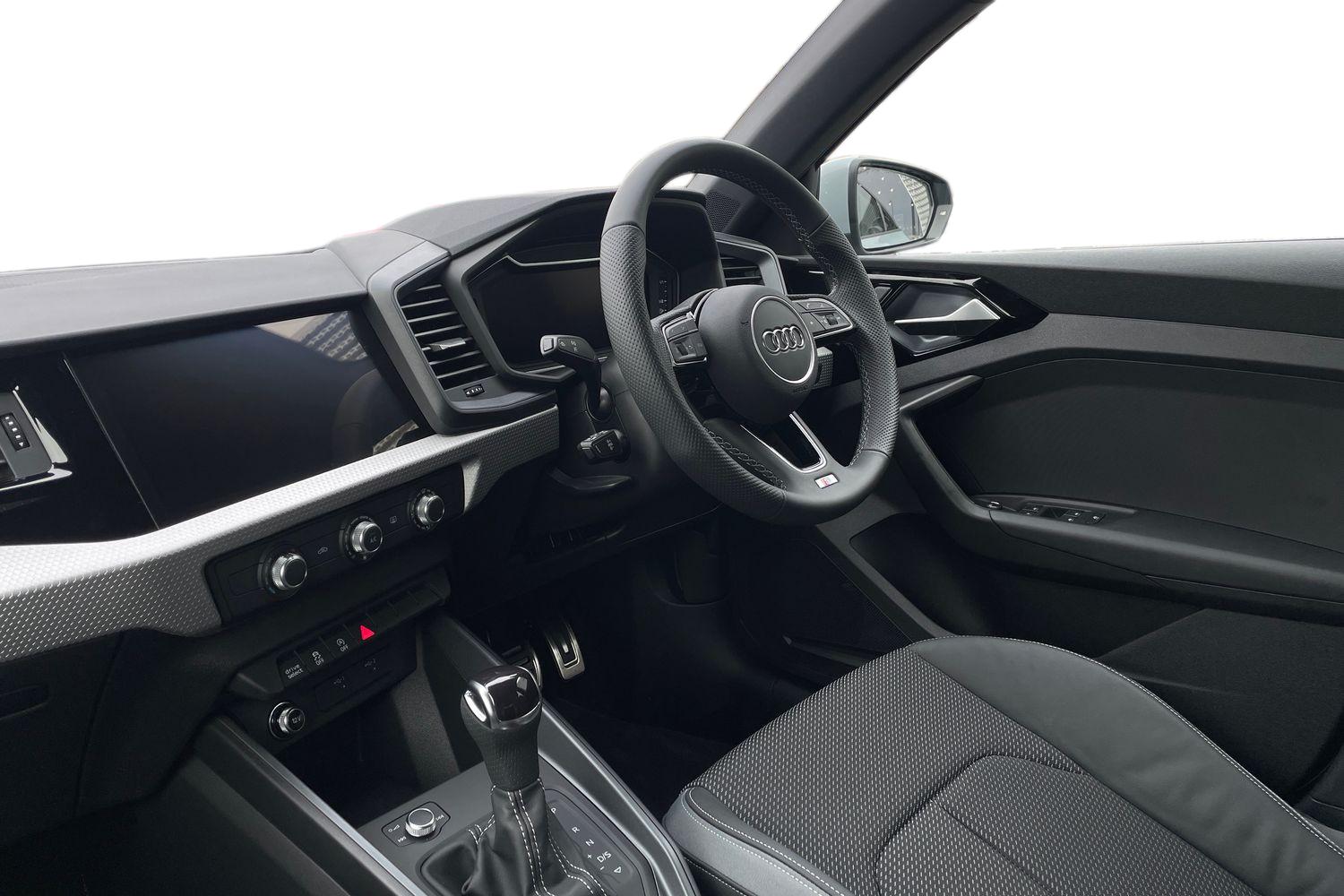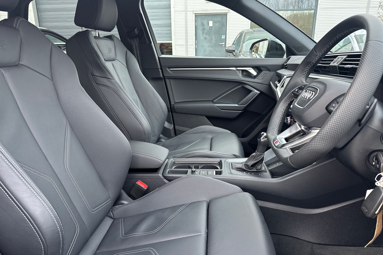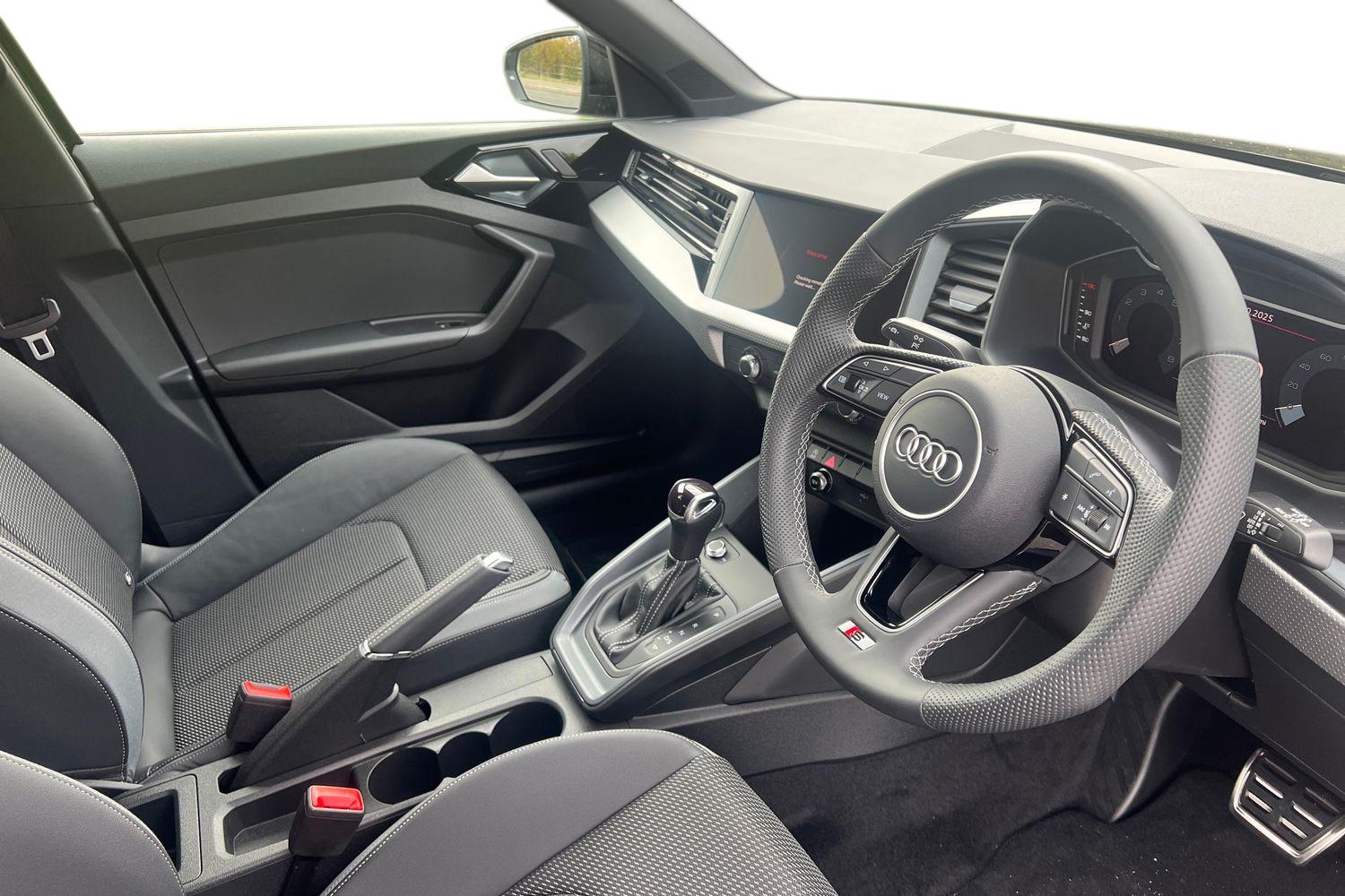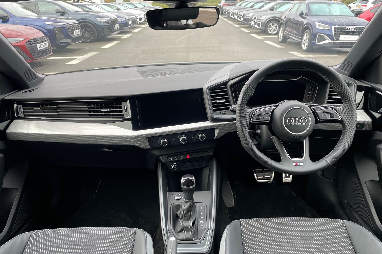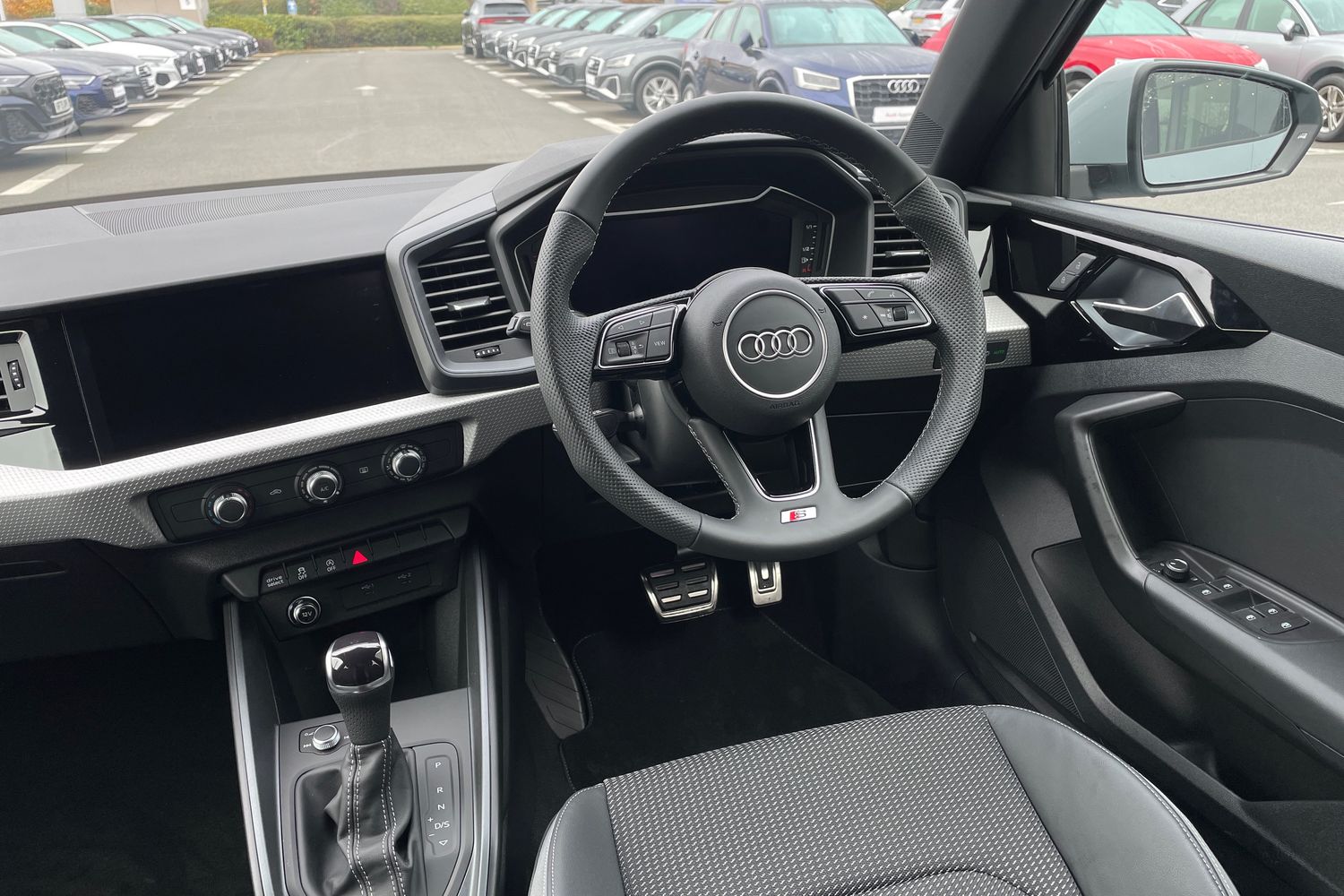 "Twin leather upholstery with front sport seats + S embossing"