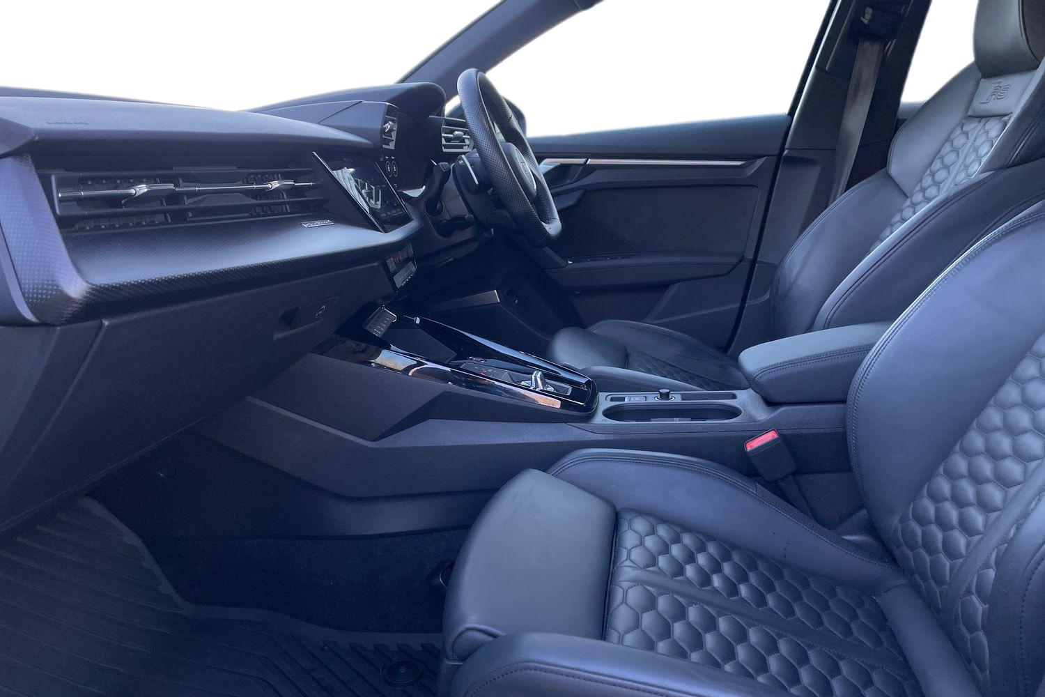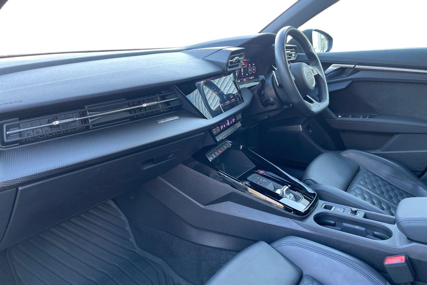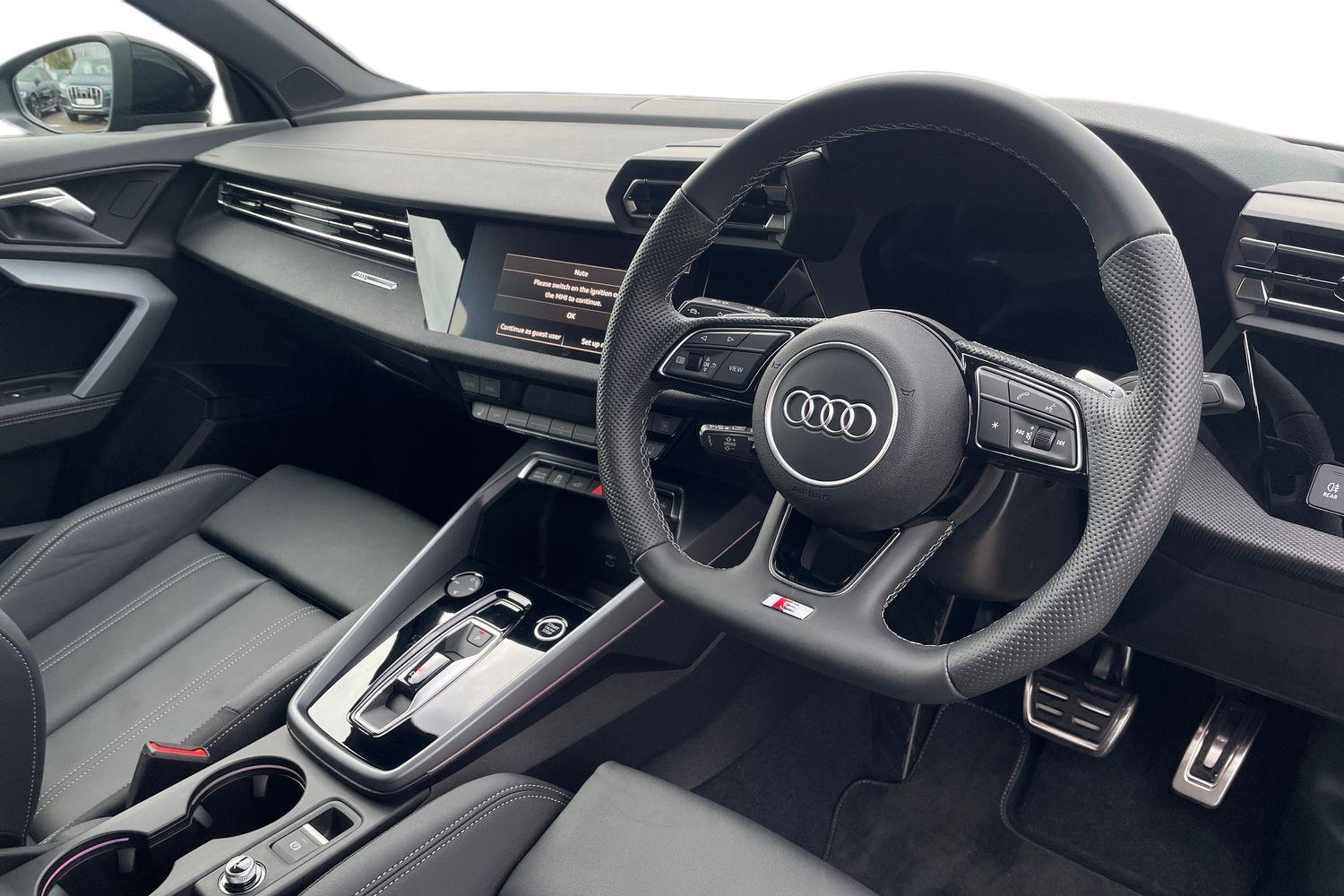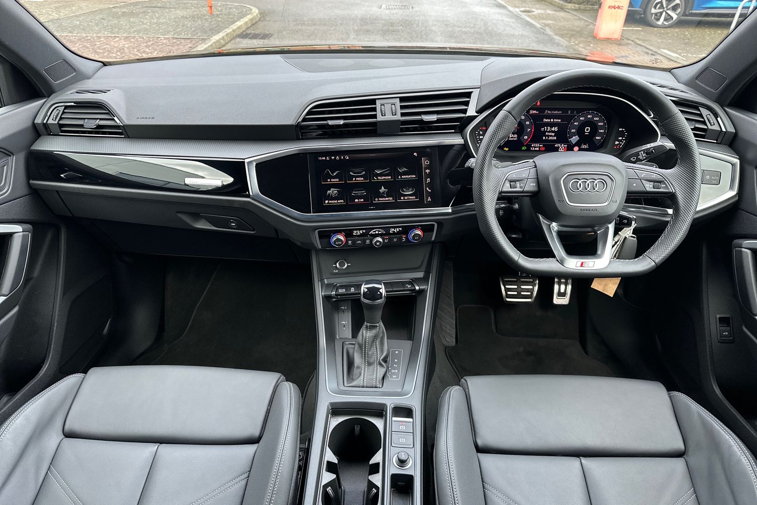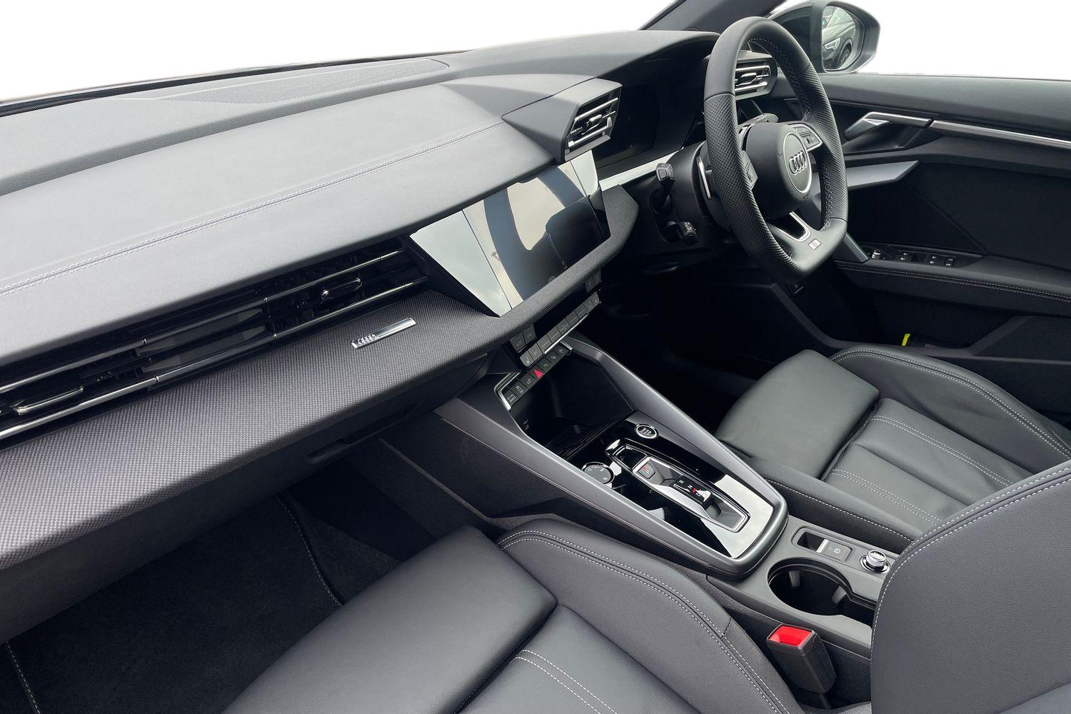 "Twin leather upholstery with front sport seats + S embossing"