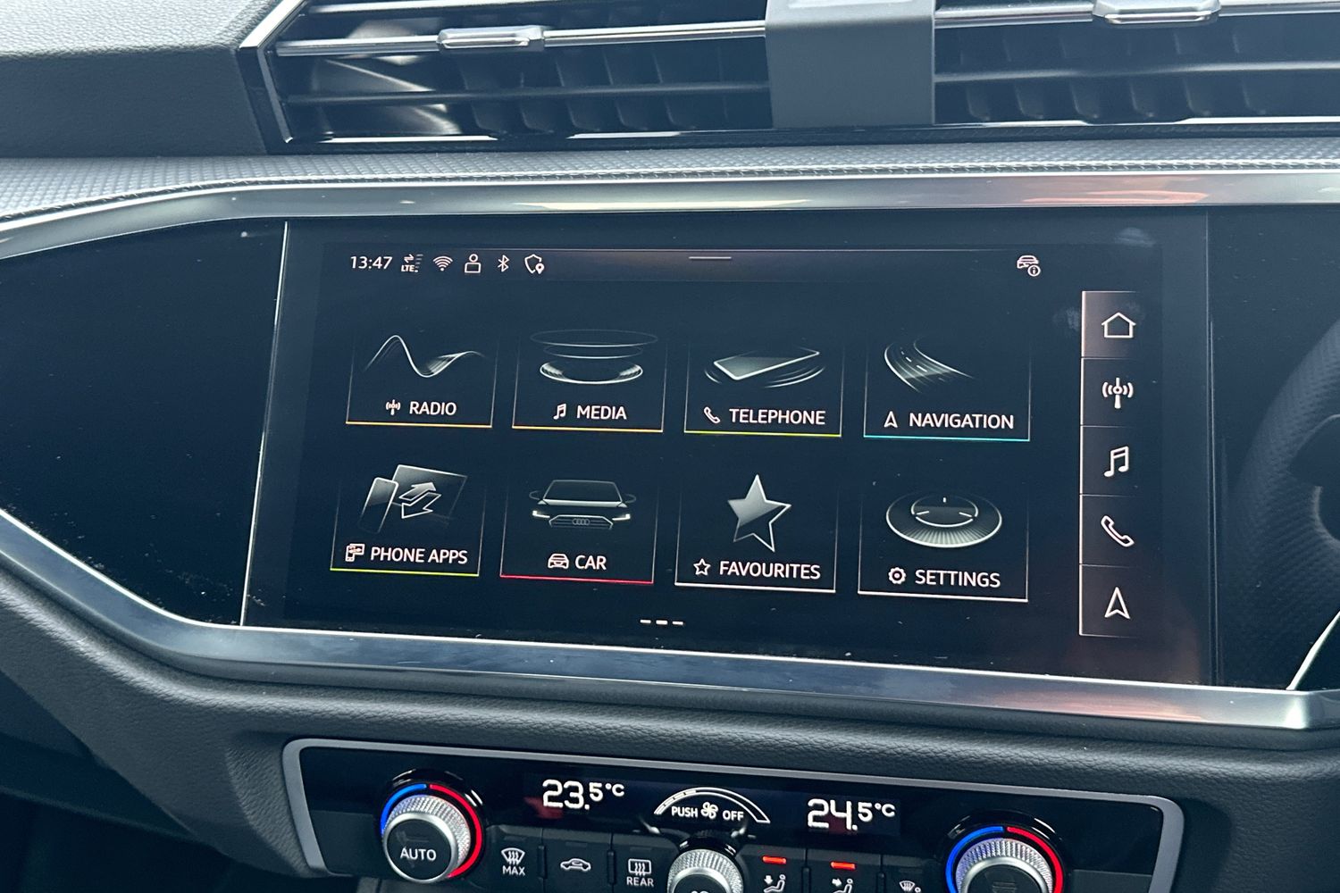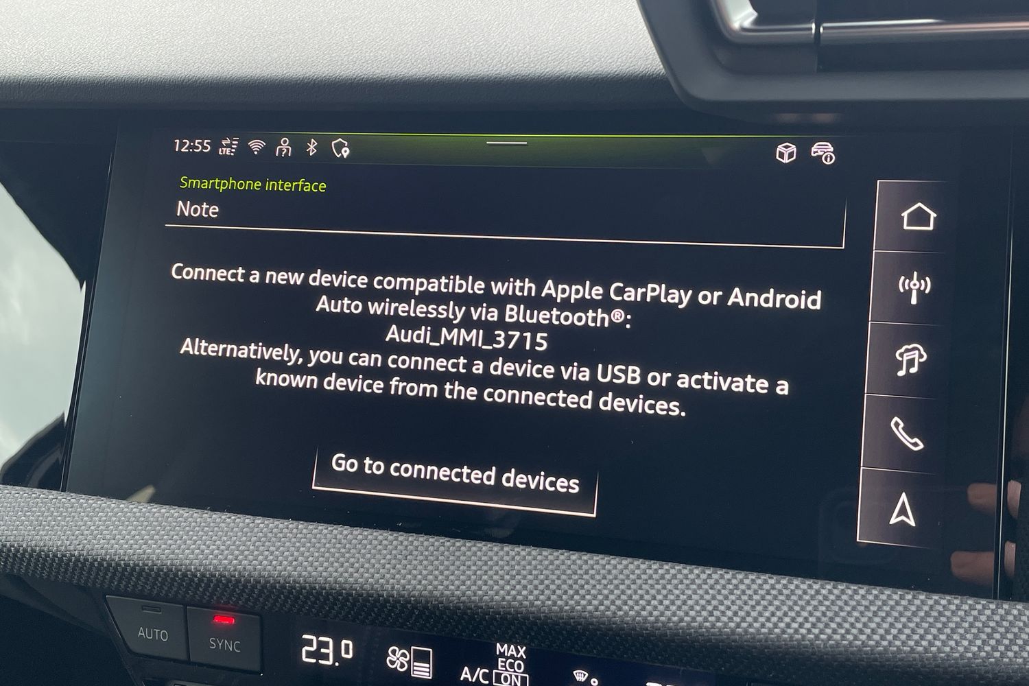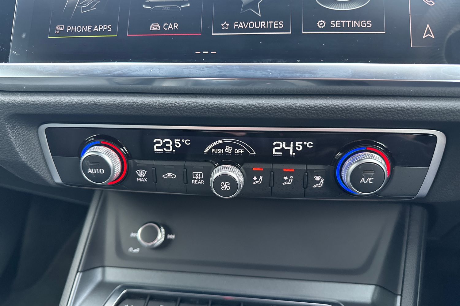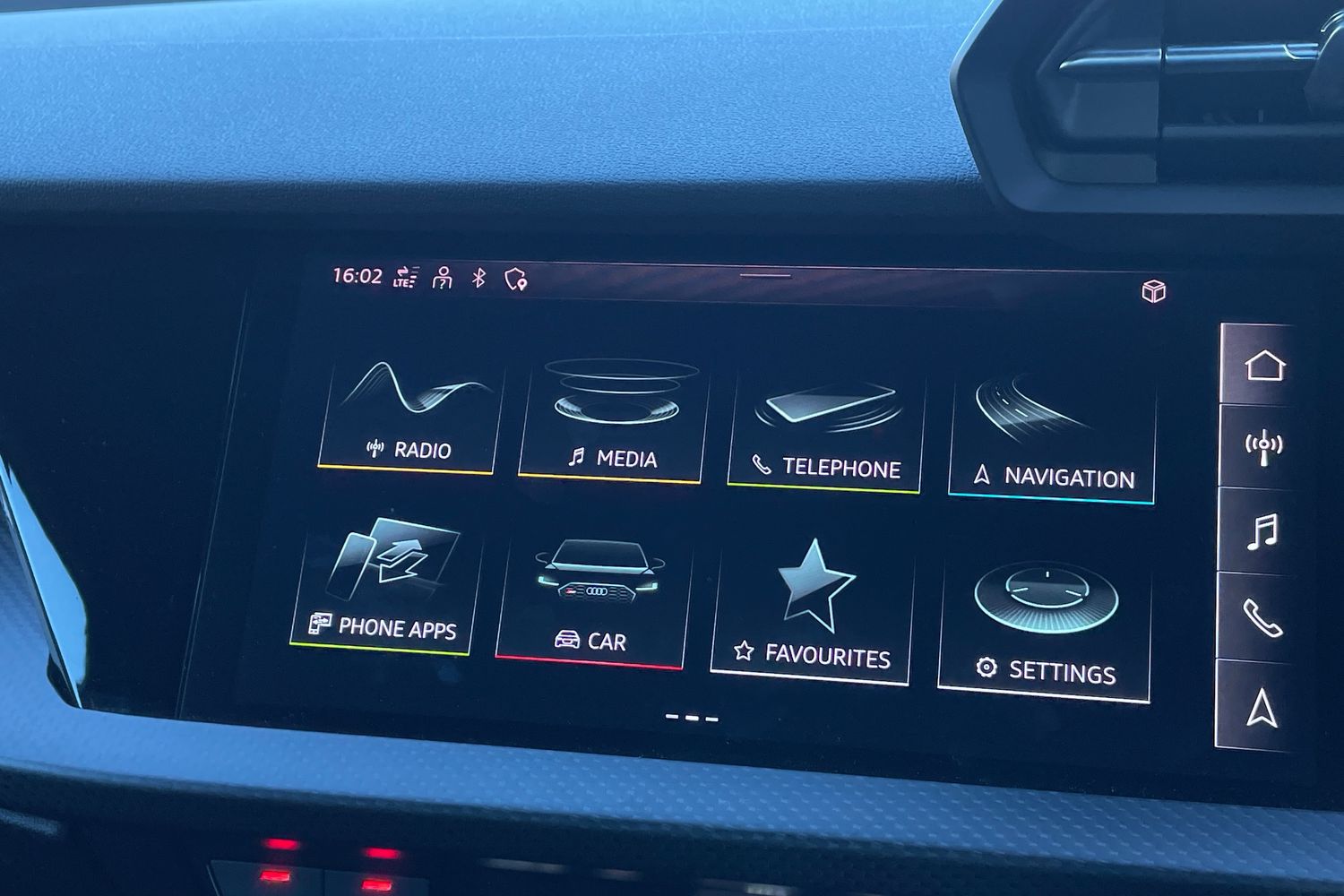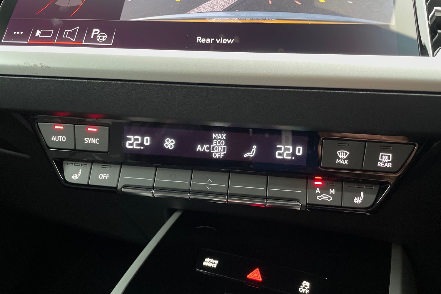 "Detail dashboard around MMI touch colour display in glass look, black with surround in aluminium look",