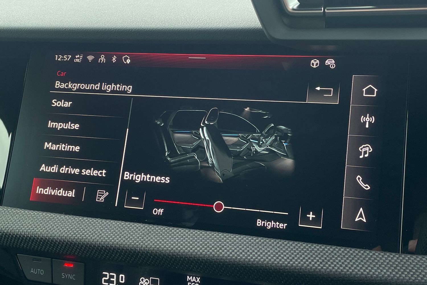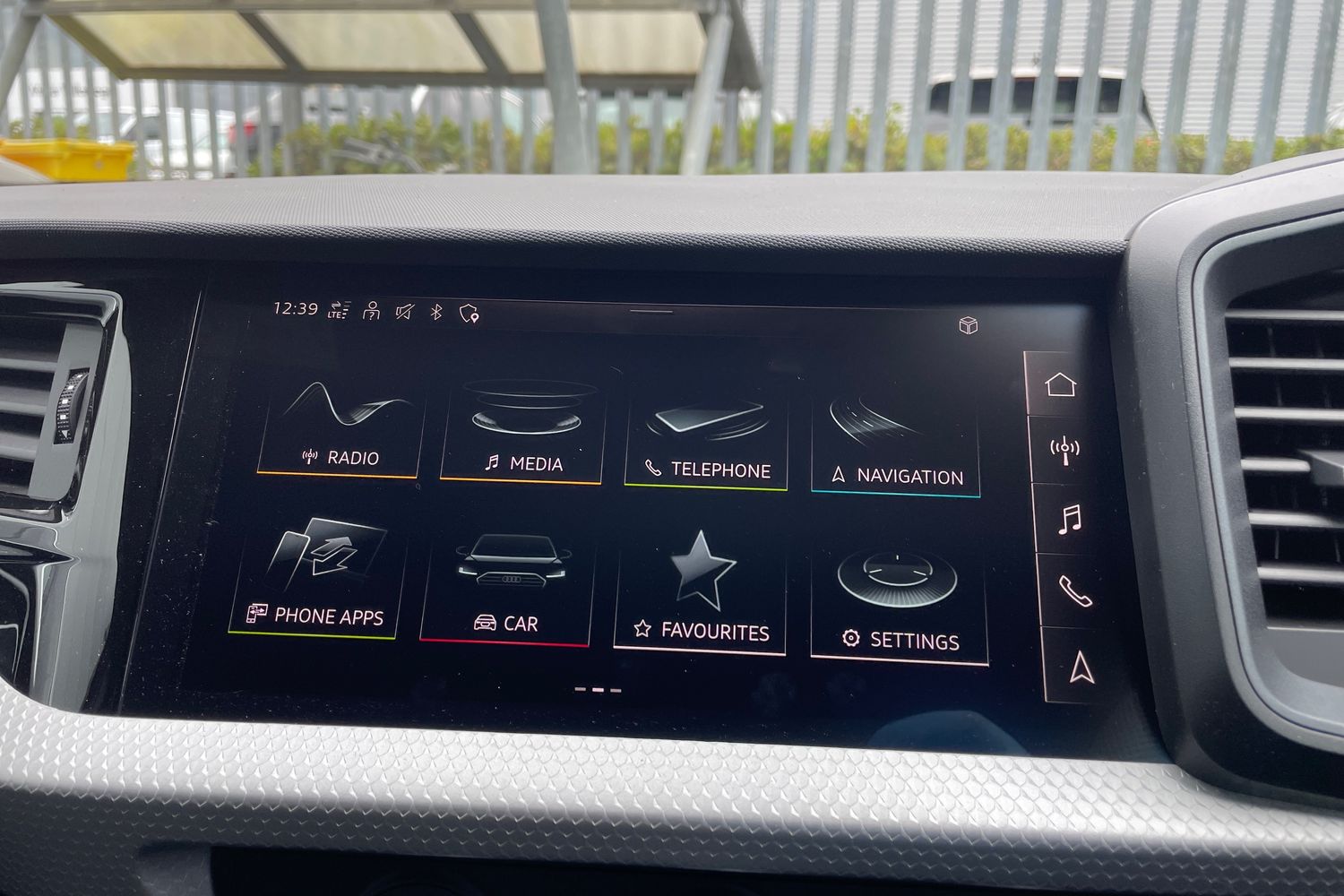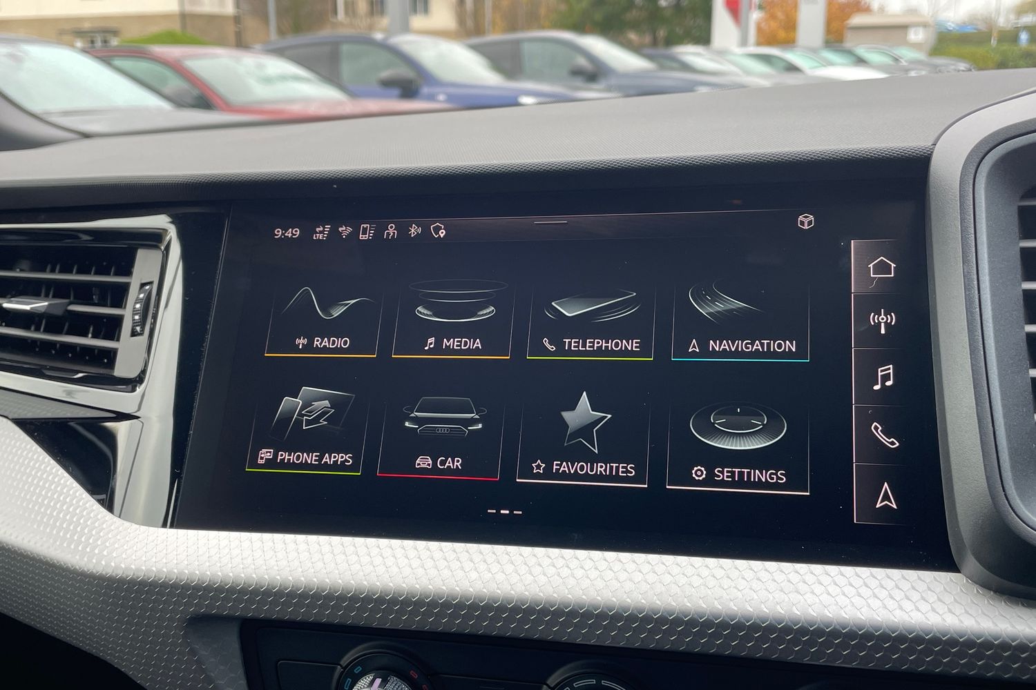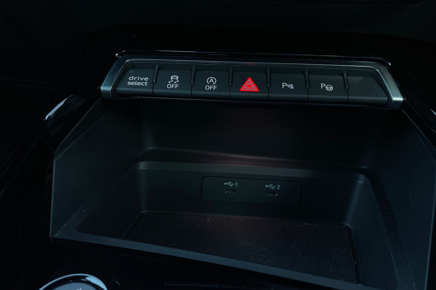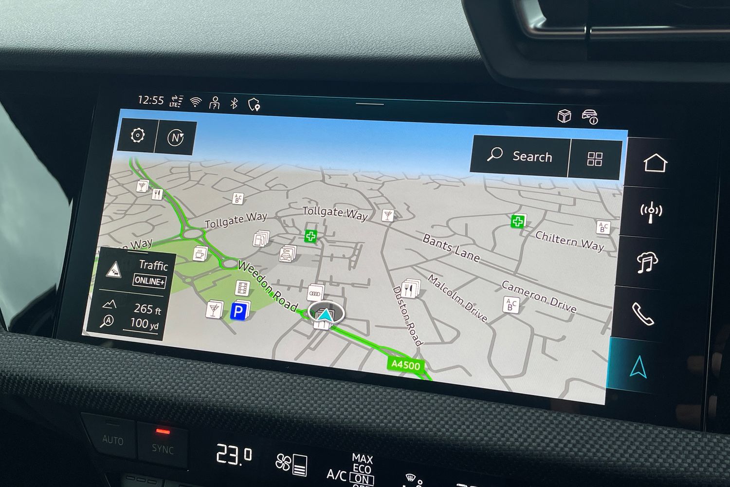 "Detail dashboard around MMI touch colour display in glass look, black with surround in aluminium look",