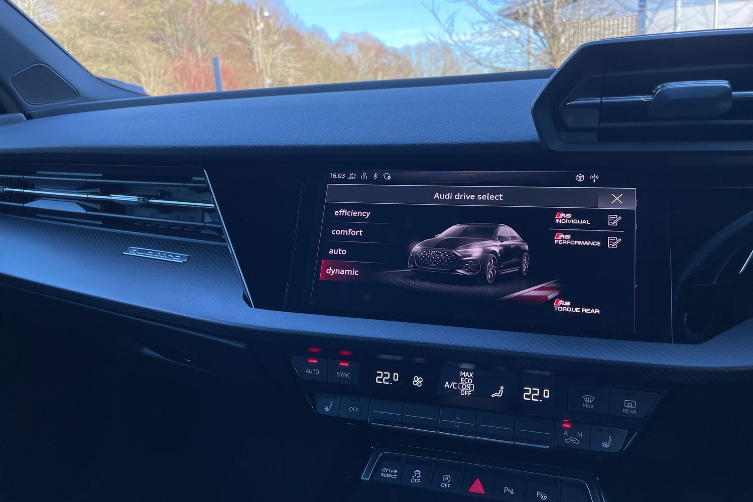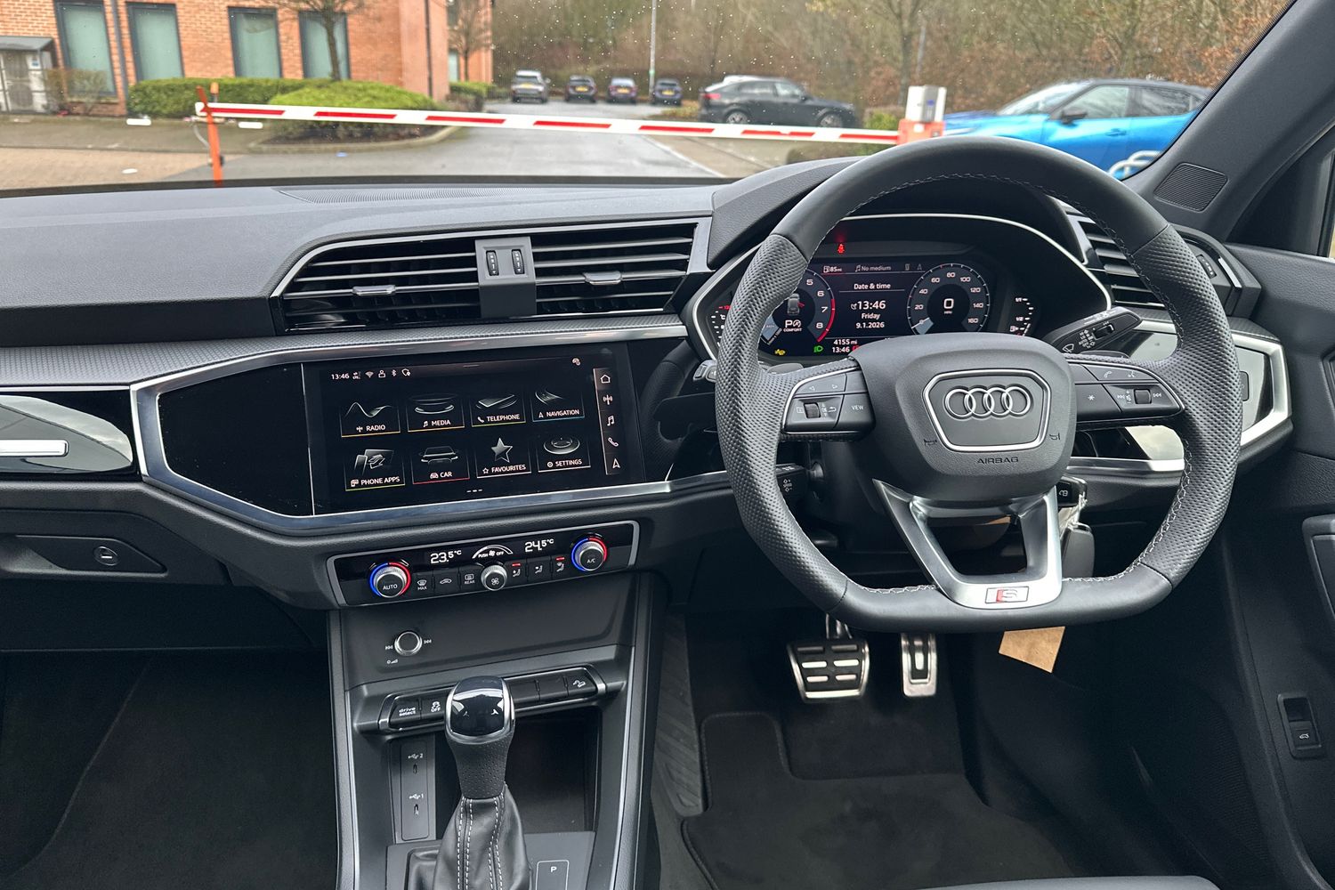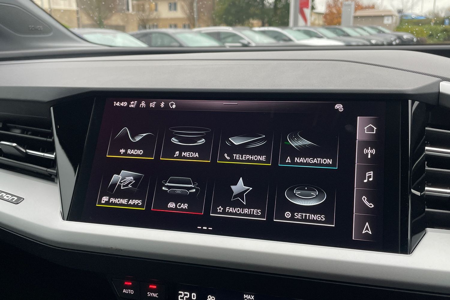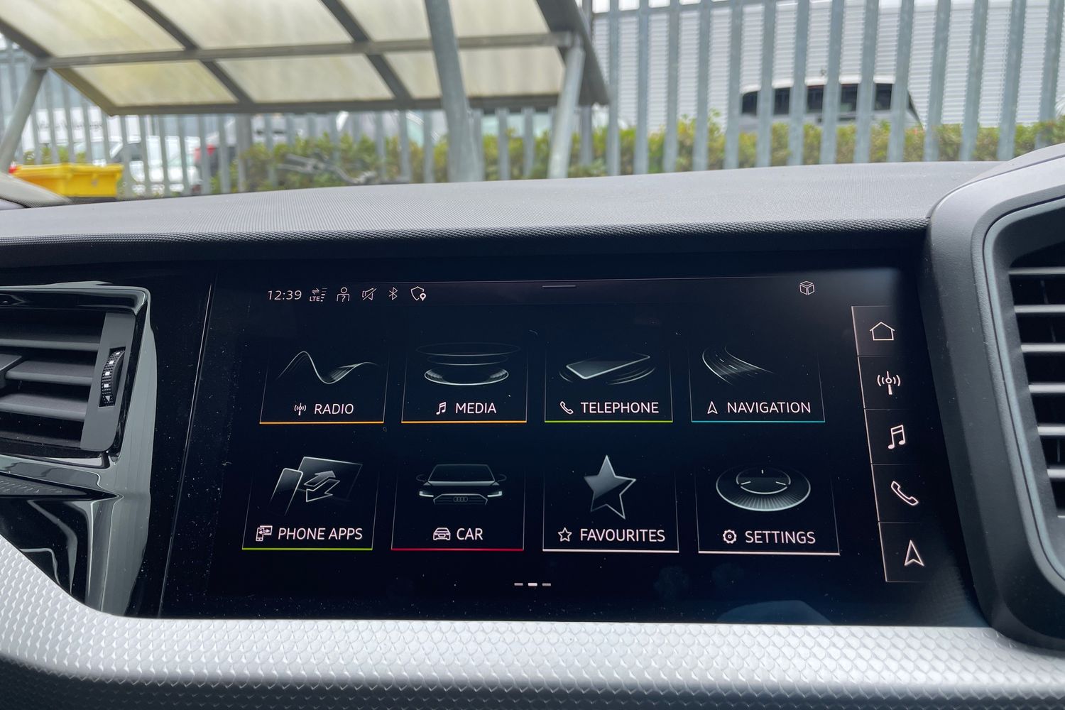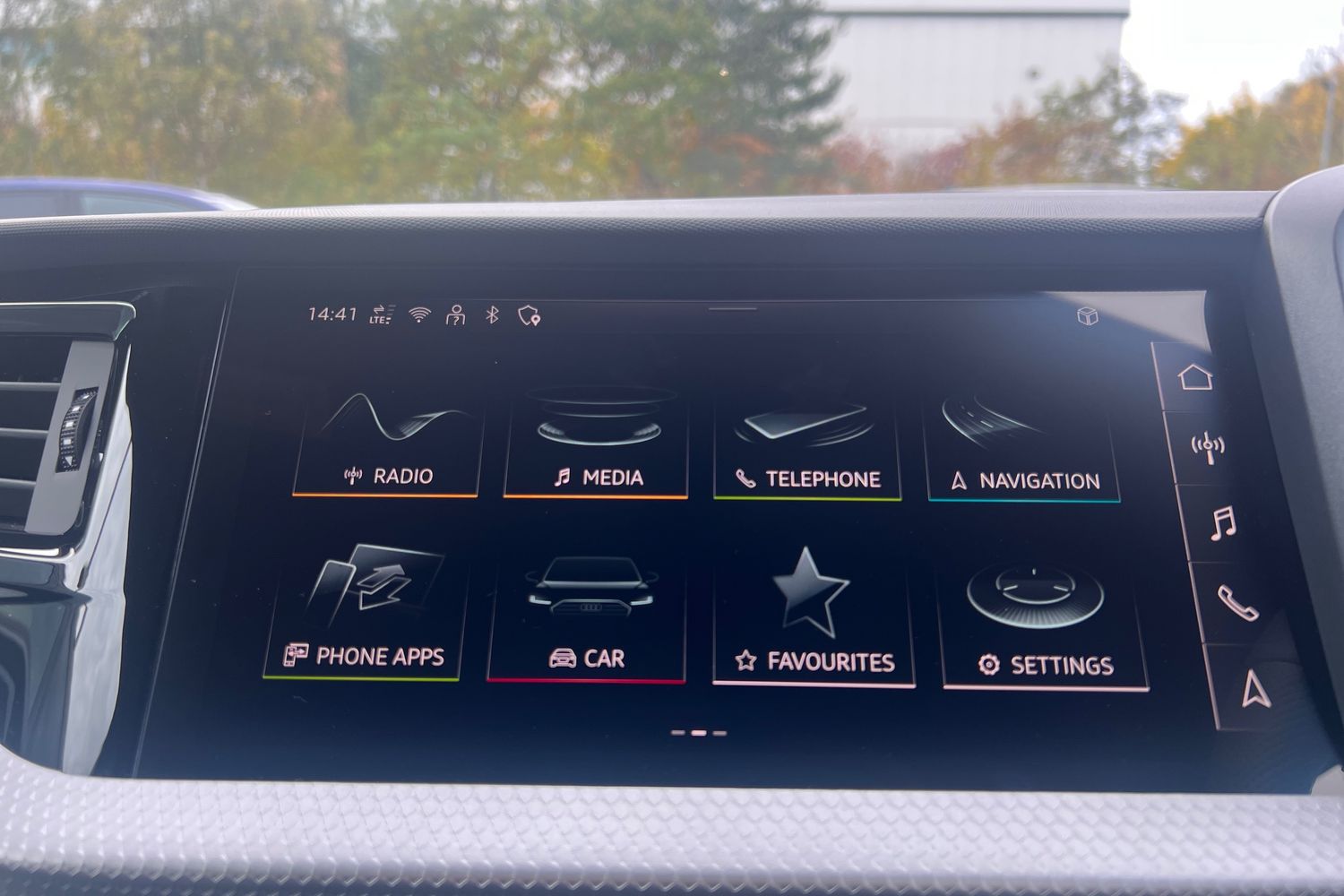 "Detail dashboard around MMI touch colour display in glass look, black with surround in aluminium look",