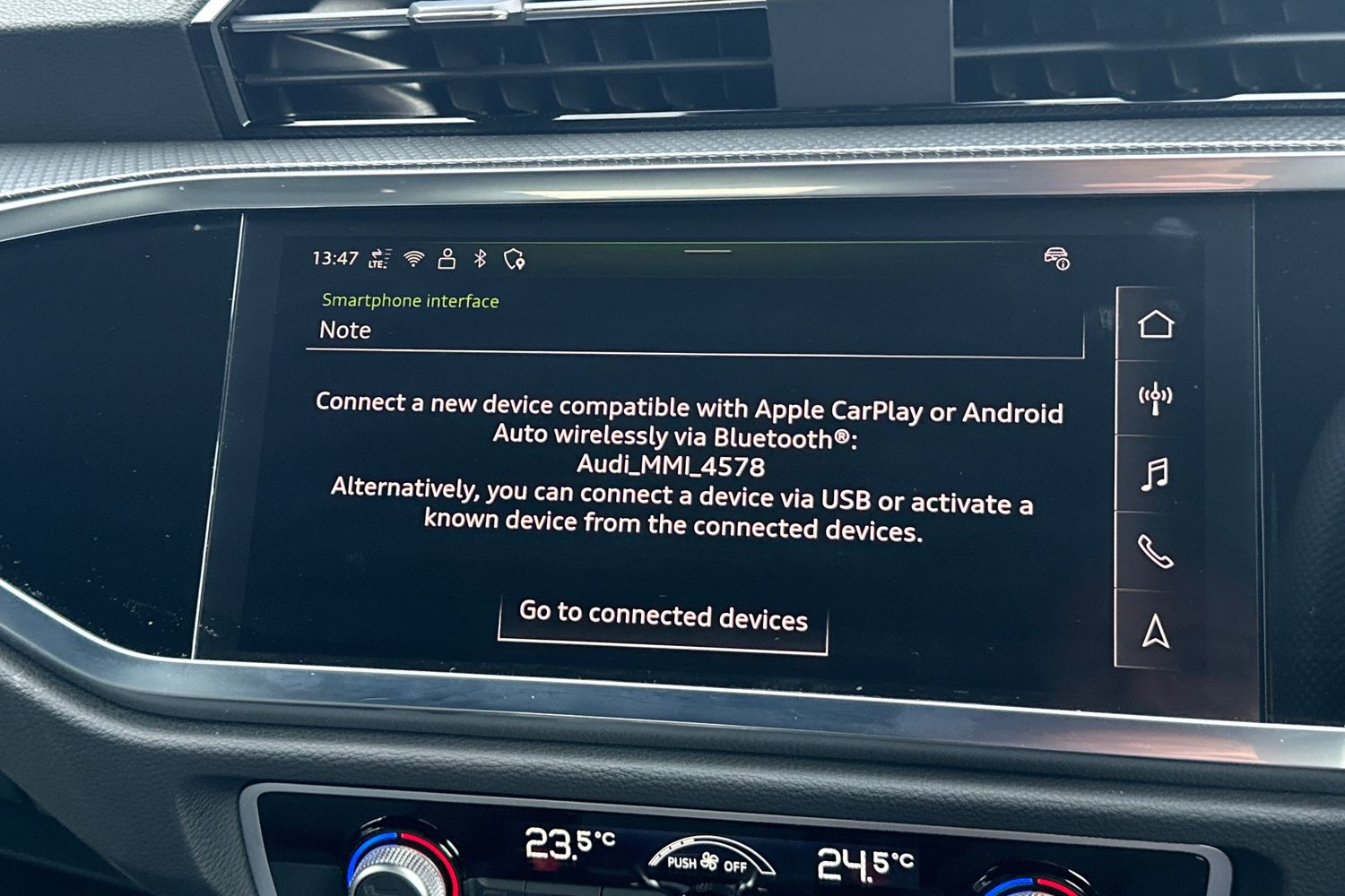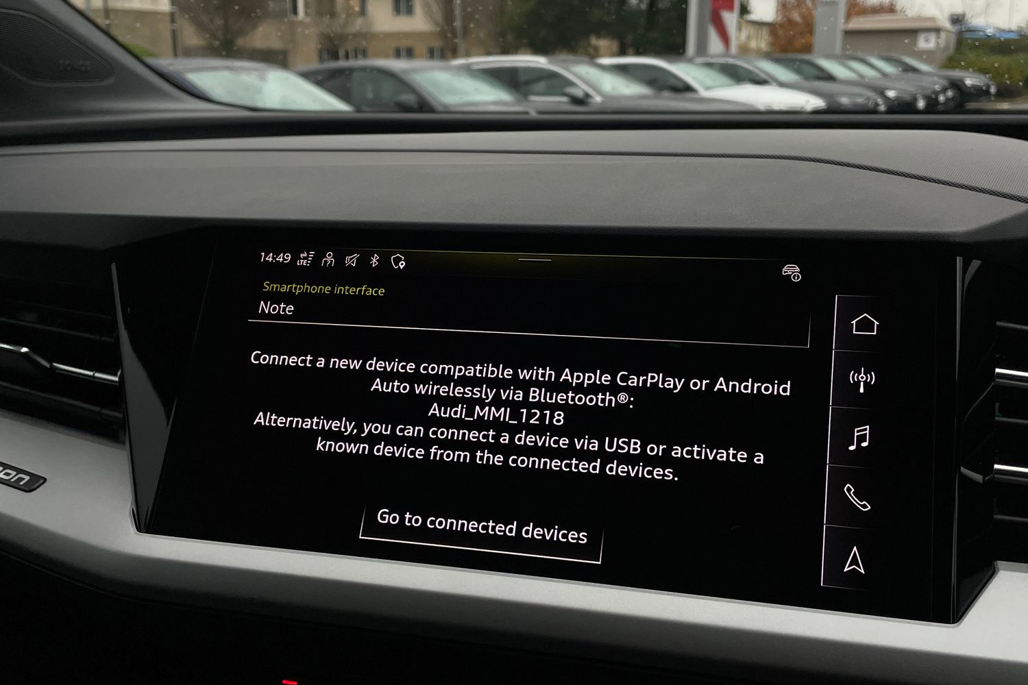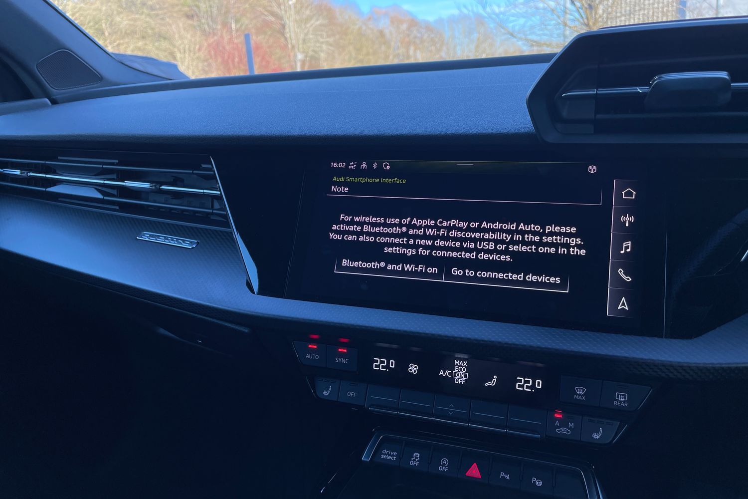 "Smartphone interface includes wireless Apple carplay/Android Auto",