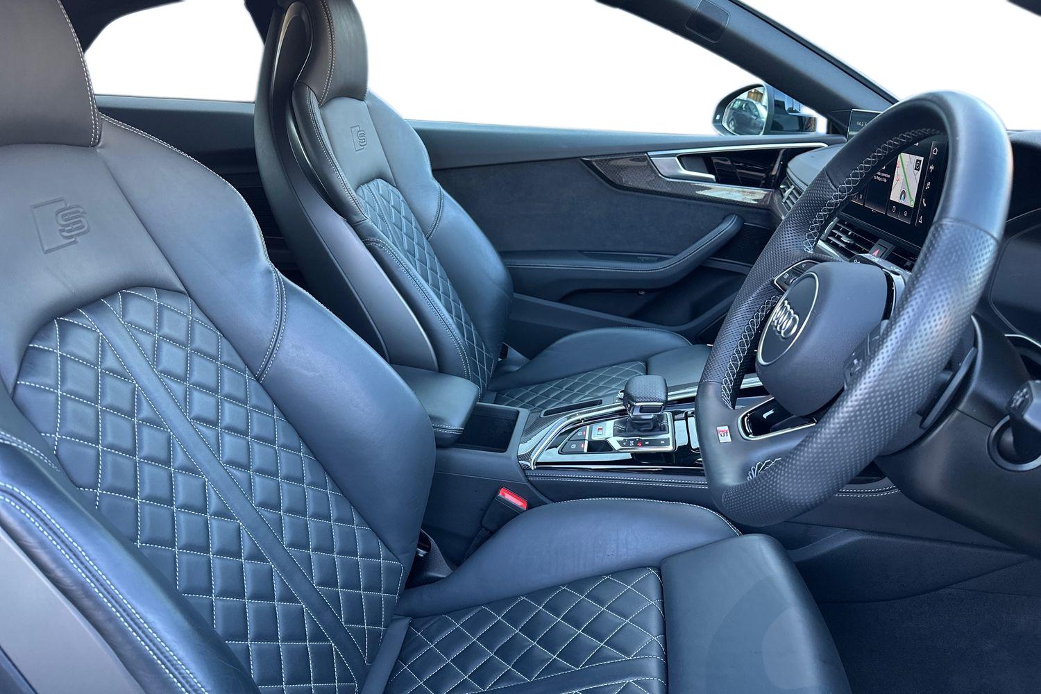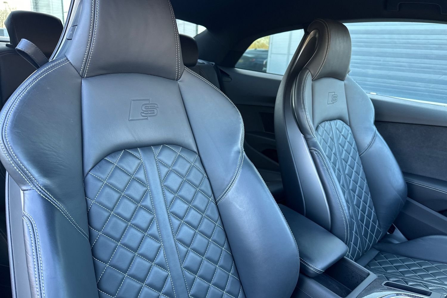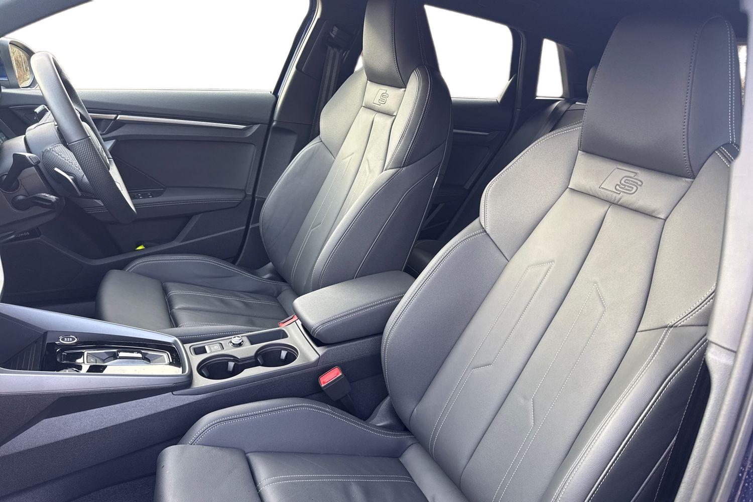 "Fine nappa leather upholstery with S embossed logo + super sports seats",