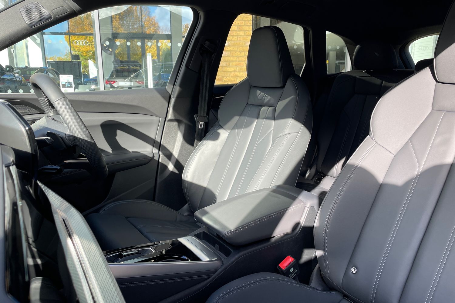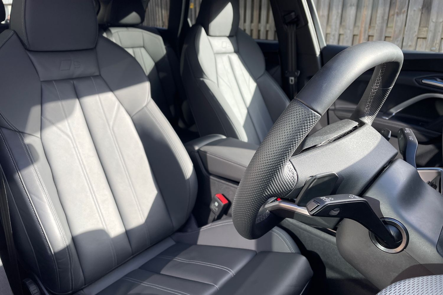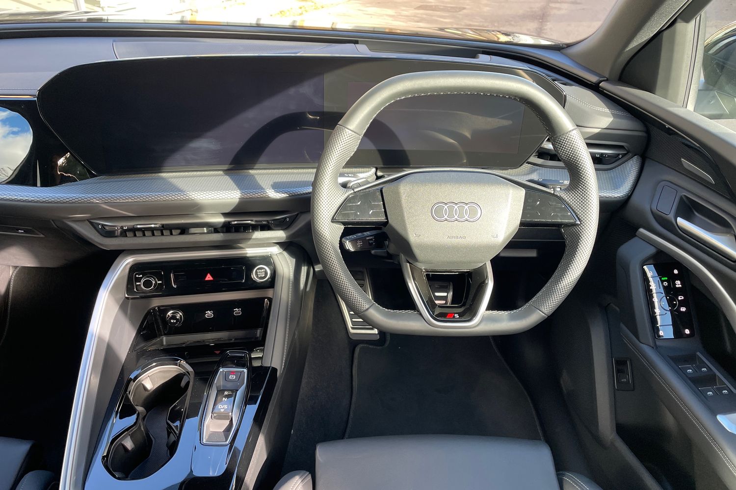 "Fine nappa leather upholstery with S embossed logo + super sports seats",