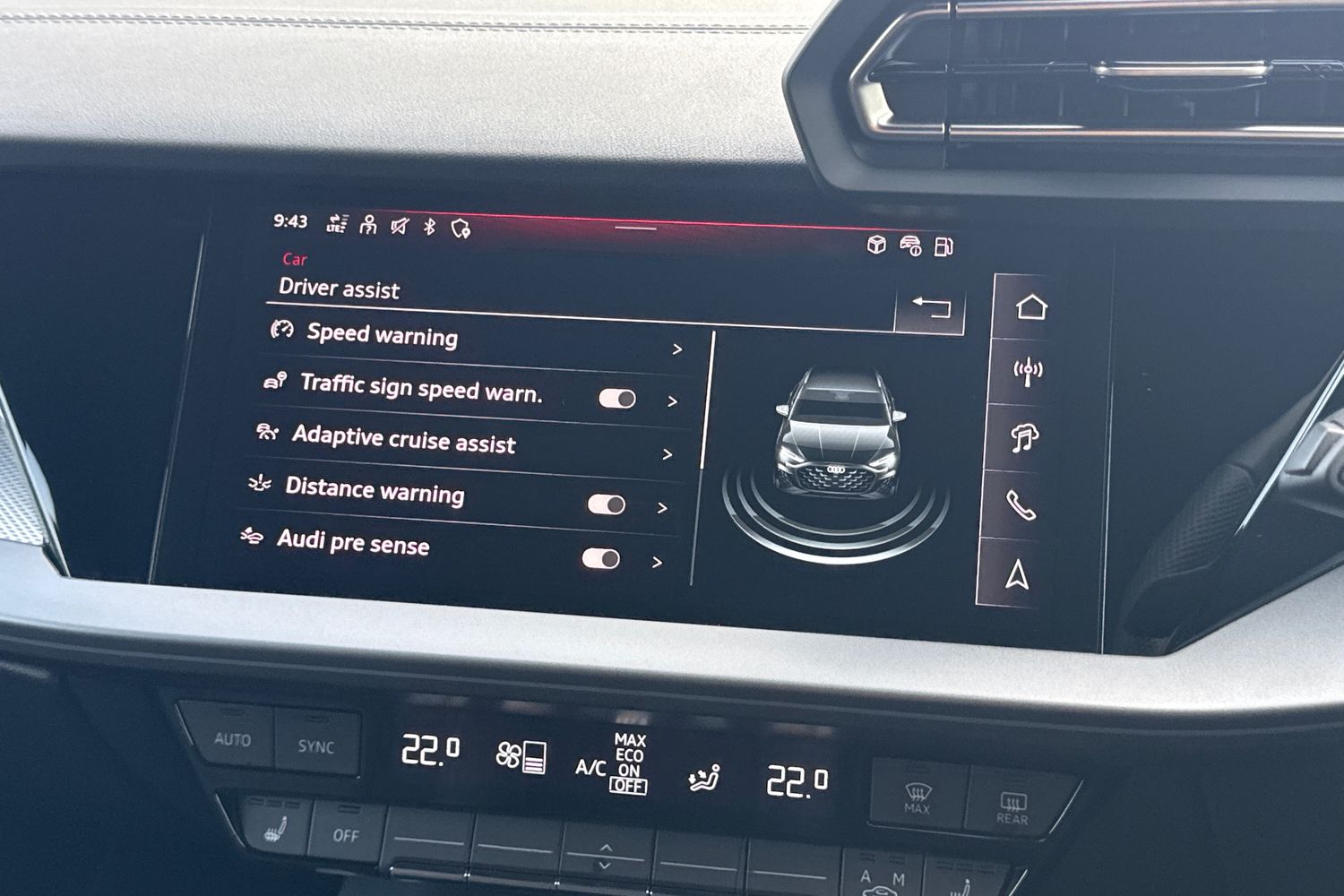 "Audi virtual cockpit - 12.3\" full colour digital instrument cluster,vehicle/engine speed,Radio/media information+Driver assistance systems",
