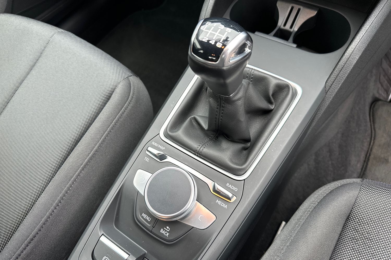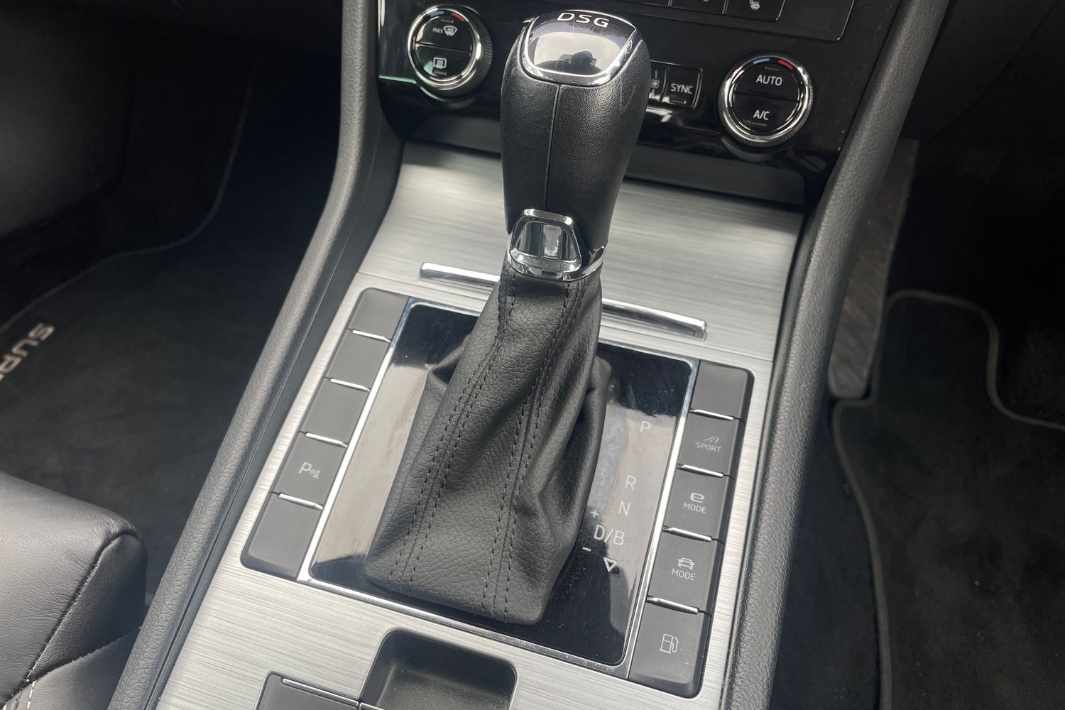 "Black leather gear lever knob",