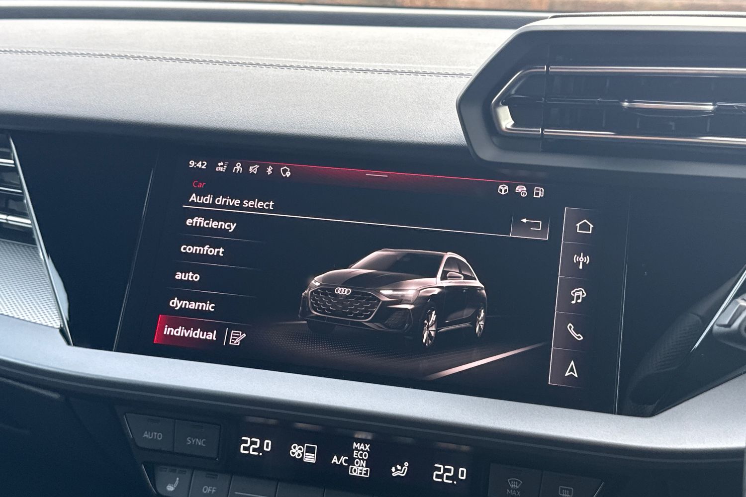 "Audi drive select (Auto, Comfort, Dynamic, Efficiency and Individual)",