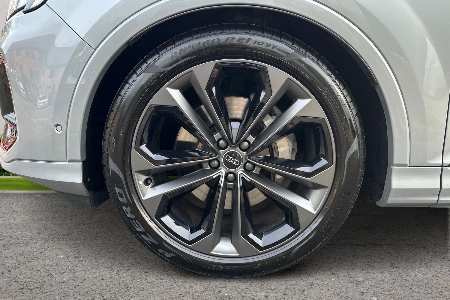 "S rear diffuser in twilight grey matt and honeycomb grille in black",