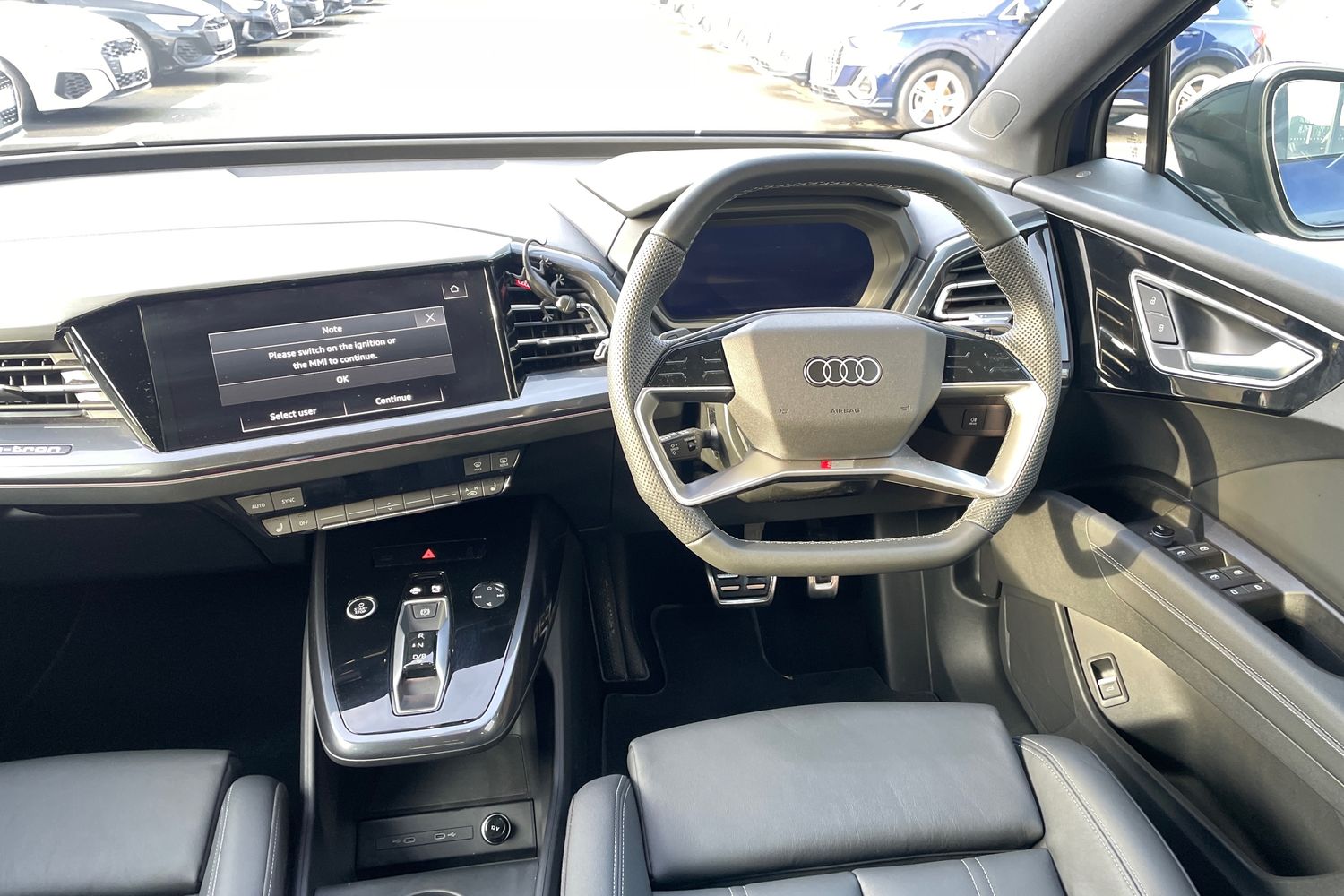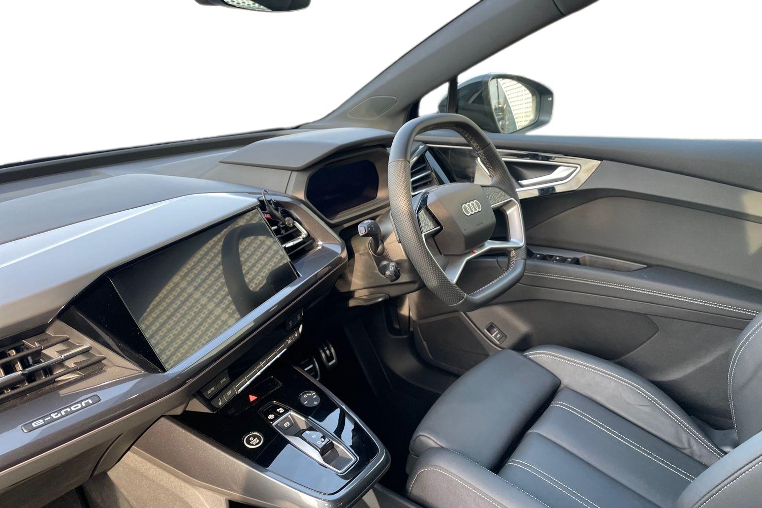 "features": "Audi connect safety and service (e-call), Audi drive select, Audi Smartphone Interface with wireless functionality, Audi Virtual Cockpit - 10.25\" display, Bluetooth interface, Camera based traffic sign recognition, Lane departure warning system, MMI Navigation Plus with high resolution 11.6 inch touchscreen colour display, Power operated tailgate, Progressive steering, Swerve assist and turn assist, 11KW onboard charger, 135kW DC charging capability, AC and DC charging access point positioned on the rear right, Compact e-tron charging system, Household plug type G (GB), Industry plug CEE 32 A/230 V/6 h/long + straight, Mode 3 AC charging cable 22 kW, 2 USB-C ports with charge and data functions, Audi sound system with 8 speakers, DAB Digital radio, 3rd brake light, Acoustic glass windscreen, Black roof rails, Contrast bumpers in Manhattan grey, Driver's door mirror memory, Electrically adjustable/heated/folding/auto dimming door mirrors with integrated LED indications + kerb view function for passenger side, Frameless auto dimming interior rear view mirror, Headlight washers, LED daytime running lights, Matrix LED headlights, digital light signatures, dynamic light sequencing and indicators + LED rear lights and illuminated light strip, Projection light in the exterior mirrors, e-tron logo projected from the underside of the exterior mirror onto the ground, Rear side wing doors, Rear wiper, Side and rear window privacy glass, Single frame grille with a structured, closed surface within an octagonal shape, 3 seat bench in 2nd row, 3 zone automatic air conditioning, 4 way electric lumbar support for driver and front passenger, Accent surfaces in gloss black - centre console control panel, switch panel and trim on front doors in gloss black, Auxiliary air conditioning, Black cloth headlining, Comfort front centre armrest, Door armrests in leatherette, Electrically adjustable front seats - driver seat with memory, Flat top and bottom twin spoke leather multifunction sport steering wheel with shift paddles for recuperation, Front and rear head restraints, Front door sill trims with aluminium inlay, illuminated with S logo, Front/rear floor mats, Heated front seats, ISOFIX child seat mounting for front passenger and outer rear seats including top tether attachment point of outer rear seats, Single front passenger seat, Stainless steel pedals, Ambient lighting plus pack - Q4 E-tron, Black styling pack - Q4 E-tron, Non smoking pack - Q4 E-tron, 3x3 point rear seatbelts, Active vehicle alerting system (AVAS), Driver and front passenger airbag with passenger airbag deactivation, Electric child locks, Front side airbags with head airbags and interaction airbag, Pre-sense front with pedestrian and cyclist detection, Seatbelt warning, Tyre pressure loss indicator, Warning triangle and first aid kit, Anti theft alarm, Anti-theft wheel bolts, Keyless Go, Aluminium look interior elements, Inlay in dark matt brushed aluminium, accent surfaces on instrument panel and centre console trim in chrome paint finish, slate grey, Tool kit, ",