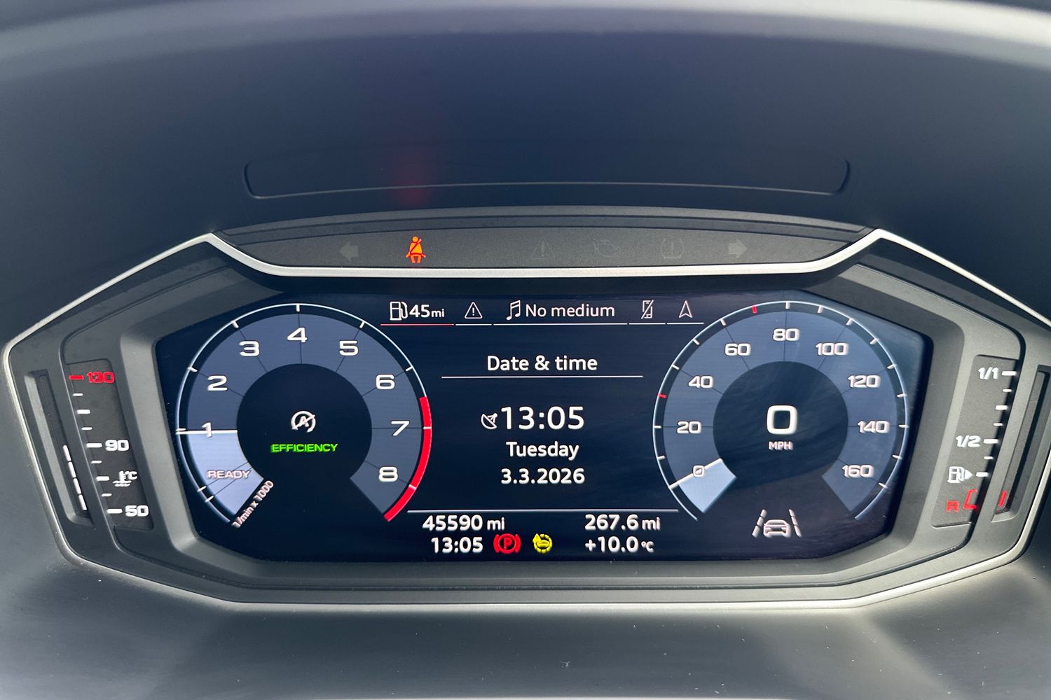 "Audi virtual cockpit - 12.3\" full colour digital instrument cluster,vehicle/engine speed,Radio/media information+Driver assistance systems",