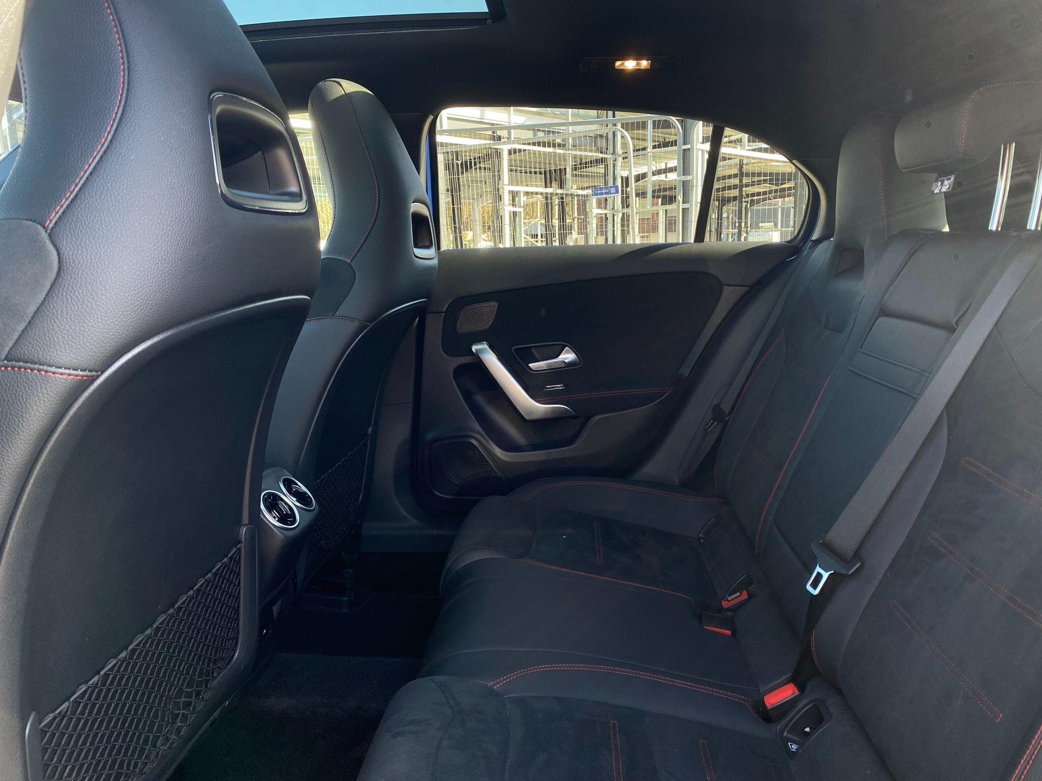 "features": "10.25 inch touchscreen central media display, 10.25\" Digital instrument cluster display screen, Acoustic ambient protection, Attention assist, Brake pad wear indicator warning light, Car wash mode, Direct steering, Direction indicators with lane change function, Dual bluetooth interfaces, DYNAMIC SELECT with a choice of driving modes (ECO, Comfort, Sport and Individual), Easy pack tailgate hands-free access, ECO start/stop function, Engine start/stop button, Fingerprint scanner, Fluid level warning indicator for fuel, oil, coolant and washer fluid, Fluorescent jacket for driver, Hard-disk navigation, Head up Display, Hey Mercedes Voice activation, Lamp failure indicator, MBUX augmented reality for navigation, MBUX Interior assistant, Mercedes me connect including emergency call system, accident recovery, breakdown and maintenance management, Mercedes me remote services, Outside temperature gauge, Owners manual in English, Pre-installation of private car share, Preinstallation for Mercedes Benz link, Remote and charging services plus, Remote boot closing, Service indicator (ASSYST), Smartphone integration with Apple CarPlay and Android auto, Speed sensitive power steering, Tailgate, Traffic sign assist, Trip computer in multifunction display with current consumption indicator, Wireless charging, Charging system - AC charging system rated at 11kW, Charging system - DC charging system rated at 22 kW, Comfort suspension, Mode 2 charging cable for domestic socket with 5m up to 1.8kW, Mode 3 charging cable for wallbox and public charging stations with 4m upto 22 kW, DAB Digital radio, MBUX multimedia system, Mercedes Benz advanced sound system (225 W) with 10 speakers, 1 central speaker, speakers on doors, a tweeter on door,one sub woofer + boost amplifier, 4 Electric Front and Rear windows, Adaptive brake lights, AMG body styling - AMG front apron with front splitter and AMG rear apron and visible exhaust tailpipe trim elements, Body colour bumpers, Body colour door handles with chrome inserts, Body colour side skirt, Body coloured door mirrors, Chrome beltline strips, Diamond radiator grille with pins in fine star pattern, Electric adjustable and heated door mirrors with integrated LED side indicators, Exhaust system with 2 visible tailpipe trim elements and rear apron, Headlamp assist automatic headlamp activation, Heat insulating dark tinted rear and rear side windows, Heated glass rear windscreen + timer control, LED daytime running lights, LED High level third brake light, LED tail lamp, Multibeam LED headlamps with adaptive highbeam assist and cornering function, Panoramic sliding sunroof, Privacy glass, Radio aerial, Rain sensing windscreen wipers with two sensitivity settings, Rear fog lights, Rear side wing doors, Rear windscreen wiper, Surround lighting with logo projection, Window line trim strip in chrome, 3 seat bench in 2nd row, 3 Spoke flat bottom leather multi function steering wheel with perforated leather in grip area, 40:20:40 split folding rear seats, Air conditioning - Two zone thermotronic luxury automatic climate control with display, AMG floor mats, Automatic child seat recognition sensor, Black air vents with surround in silver chrome, Black roof lining, Brushed stainless steel sports pedals with rubber studs, Charging socket, Electrically adjustable front memory seats including lumbar support and backrest inclination, Front centre armrest with stowage, Front seat backs luggage nets, Galvanished gear shift paddles on steering wheel, Heated front seats, Height/reach adjustable steering column, Illuminated Mercedes Benz lettering front door sills with changeable cover, Interior lighting - 64 colour Ambient lighting, Interior mirror with reading lamps in black and frameless, Pre-entry climate control, Rear armrest with 2 cupholders, Seat occupancy sensor for front passenger seat, Single front passenger seat, Sports seats with integrated headrests, Stowage compartment in centre console with retractable cover, Sunvisors with illuminated vanity mirrors, Twin front cupholders, Light and sight pack - A Class, Mirror package - A Class, Parking pack with 360 degree camera - A Class, Seat comfort pack - A Class, USB pack plus - A Class, 3 rear 3 point seatbelts, ABS with Brake Assist, Active bonnet, Adaptive brake assist with hold function and hill start assist, Bonnet with power domes, Childproof locks manually operated for rear doors and electrically operated for rear power windows, Crash responsive emergency lighting, Driver and passenger head and side airbags, Drivers knee airbag, Dual stage driver/passenger airbags, Electronic parking brake, ESP curve dynamic assist, ESP with ASR, Exit warning, Front and rear seatbelt reminder, ISOFIX and top tether child seat fixing points in two outer rear seats, Perforated front brake discs, Radar based regeneration, Tyre pressure monitoring system, Warning triangle and first aid kit, Window airbags, Alarm system/interior protection/immobiliser, Guard 360 degree vehicle protection, Keyless entry lock/unlock, Keyless Go, Remote central locking and crash sensor with emergency opening function, Black seatbelts, Light longitudinal grain aluminium trim, 19\" AMG multi-spoke light alloy wheels,aerodynamically optimised, painted in titanium grey with high sheen finish, Summer tyres, Tirefit sealant kit, ",