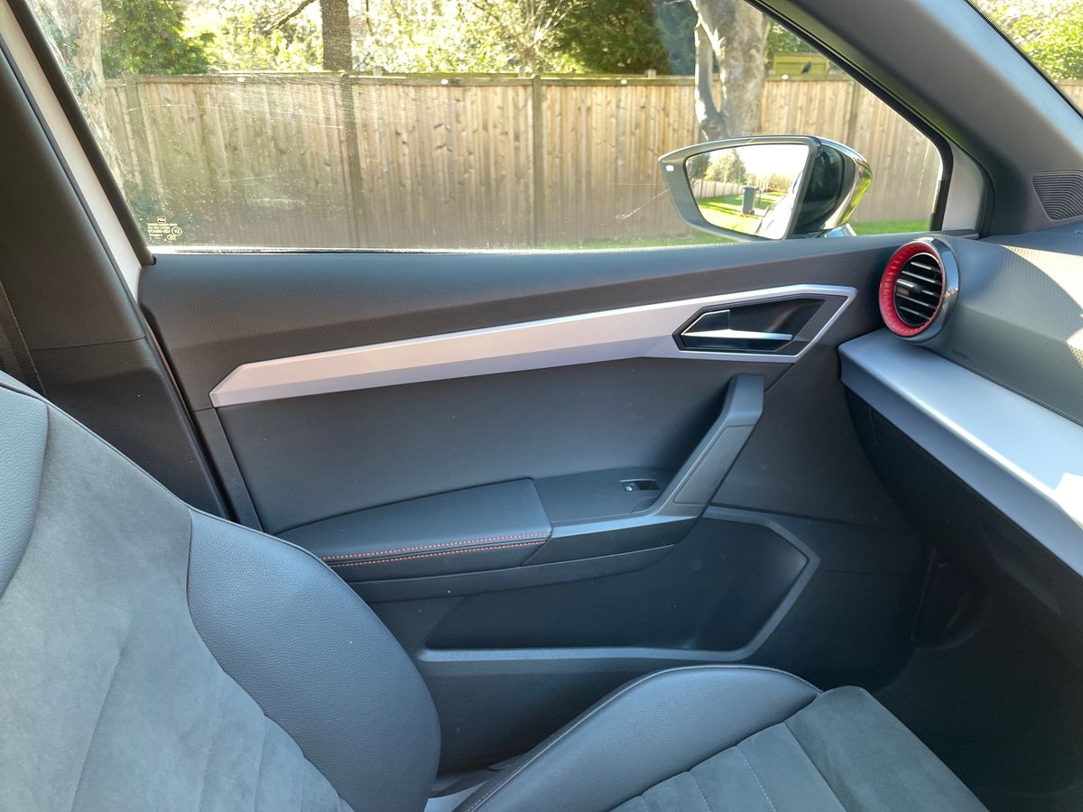 "Door trim panel and armrest in plastic",