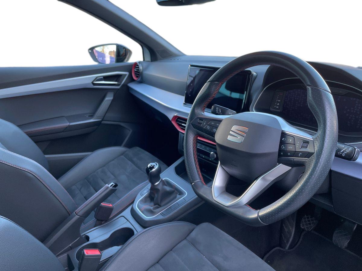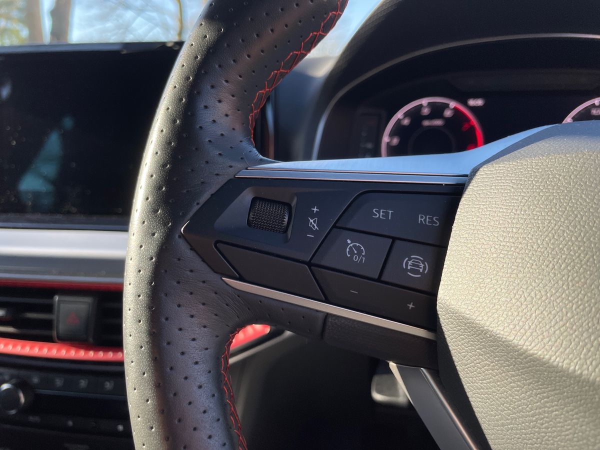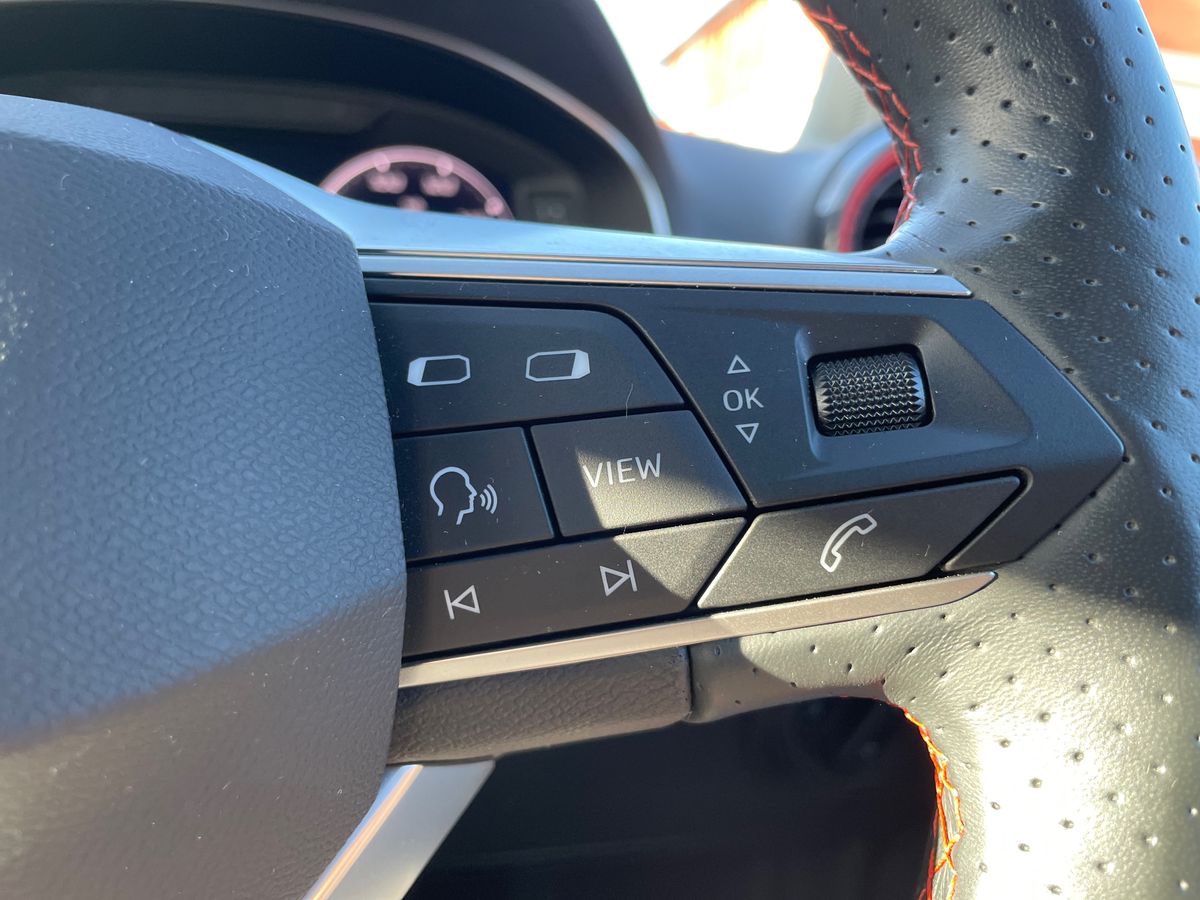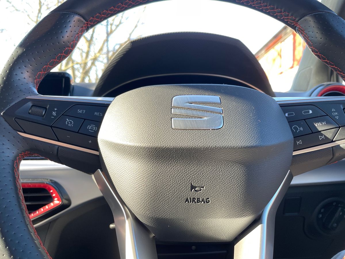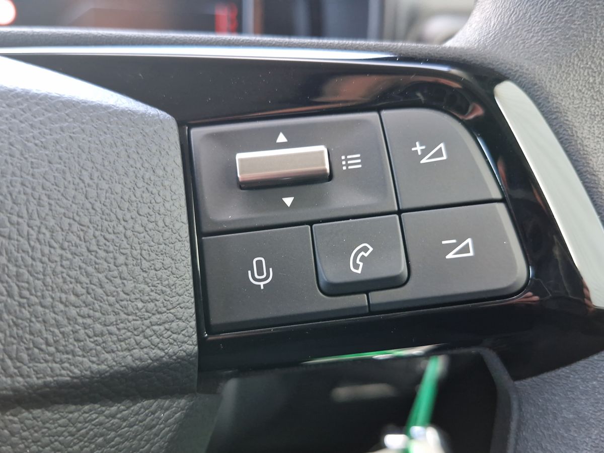 "Steering wheel, dashboard and central controls in black",