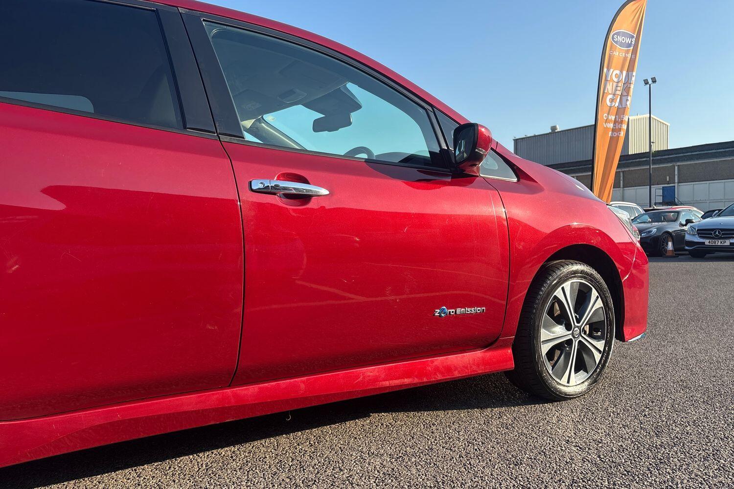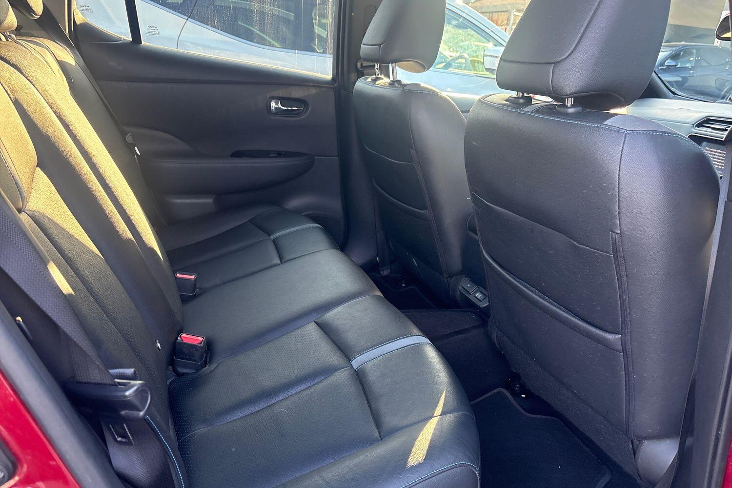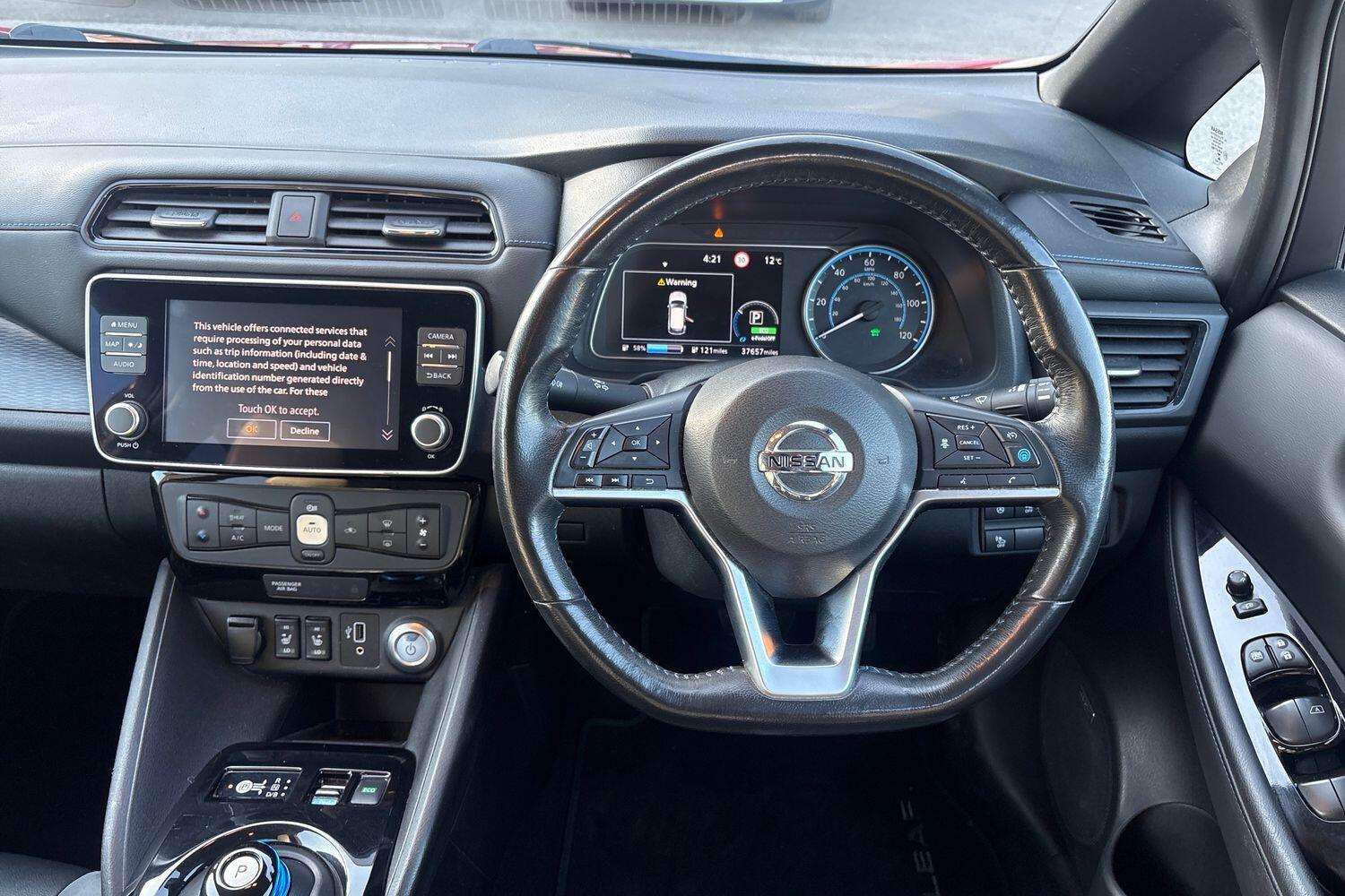 "features": "7\" Combimeter, Apple car play/Android Auto, Blind spot warning, E Pedal, Intelligent Cruise control (ICC), Intelligent lane intervention, Lane departure warning system, Nissan connect EV 8\" touch screen navigation and entertainment system, Push button starter, Rear cross traffic alert, Rear view camera, Speed limiter, Speed sensitive power steering, Telematics system, Trip computer, Voice control system, 6.6 kw On-board charger, 6.6 kW onboard charger, EVSE charging cable, AM/FM/DAB audio system, Aux-in socket, Bose Premium Audio system+7 speakers, Remote audio control, Two rear USB sockets, USB port, Anti dazzle rear view mirror, Auto dimming rear view mirror, Automatic activation of hazard warning lights, Automatic rain sensing wipers, Body coloured door mirrors with integrated LED indicators, Chrome door handles, Door mirrors with turn signal and puddle lamps, e+ embossed charging port, Electric front/rear windows, Electrically adjustable and folding door mirrors, Follow me home headlights, Gloss black finish B pillar, High beam assist, Intelligent auto headlights, LED signature daytime running lights, LED tail light signature, Metallic blue front splitter, Metallic blue rear bumper accent, Rear privacy glass, 60/40 split folding rear seat, Automatic air conditioning with timer and heater, Front centre console and armrest, Front head restraints, Front seatback pocket, Heat pump system with remote control, Height adjustable driver seat, Isofix child seat anchor points, Leather D shaped steering wheel, Manual adjust driver/passenger seats, Part leather/Ultra suede upholstery, PTC (Positive Temp Co-efficent) heater, Quick charge port, Rear assist grips, Rear head restraints, Rear heater duct, Tilt adjustable steering wheel, Heat pack - LEAF, LED Pack - Leaf, Pro pilot Pack - Leaf, Tech Pack - Leaf, 3 point front seatbelts with pre-tensioners, 3x3 point rear seatbelts, ABS with EBD and brake assist, Curtain airbags, Driver and passenger airbags, Front seatbelt pretensioners + load limiters, Height adjustable front seatbelts, Hill start assist, Intelligent emergency braking with pedestrian recognition, Intelligent trace control, Seatbelt reminder for driver and front passenger, Side airbags, Traction control, Tyre pressure monitoring system, VDC Dynamic Vehicle Control, Deadlock, Immobiliser, Nissan i-key, Remote central locking, Thatcham Cat.1 alarm, 17\" alloy wheels, ",