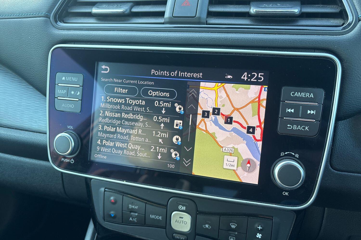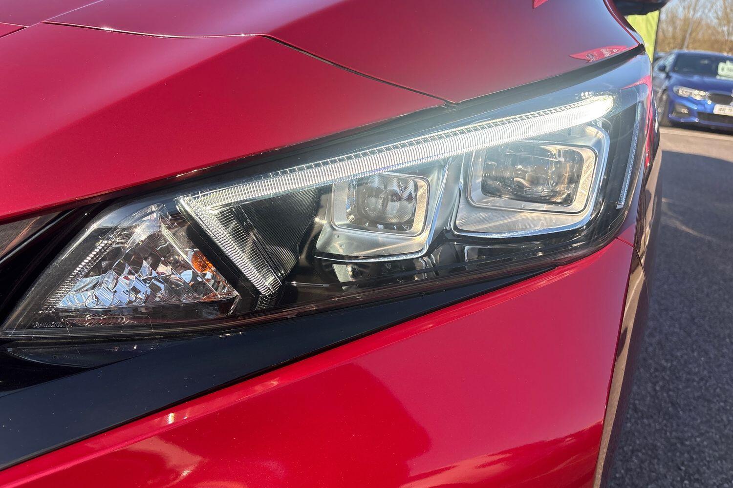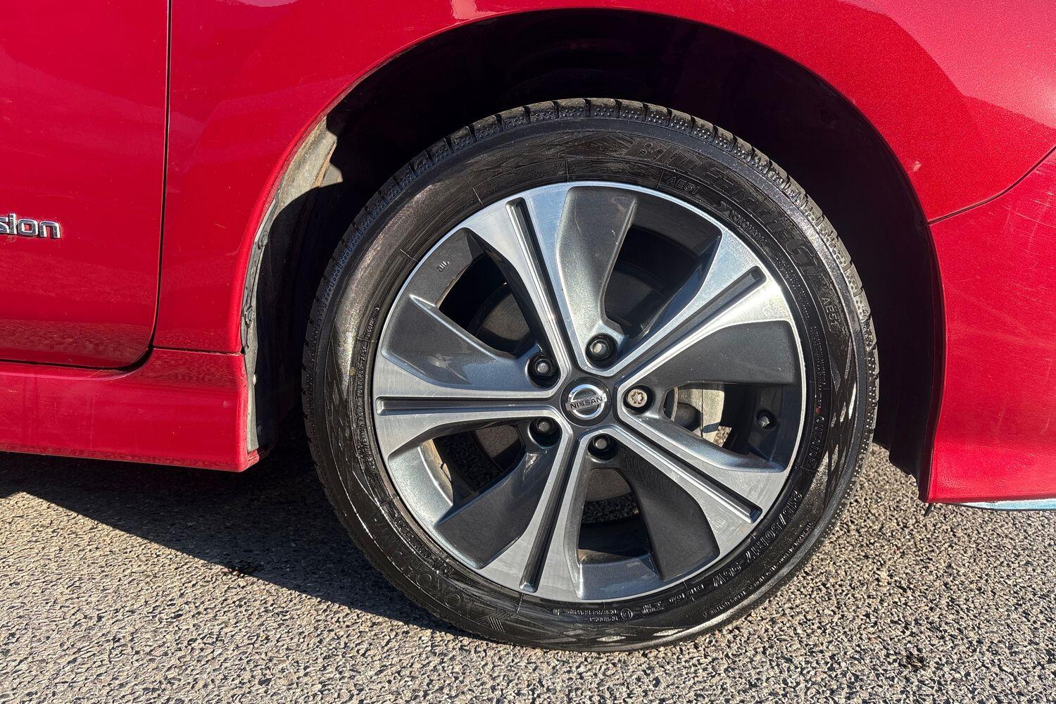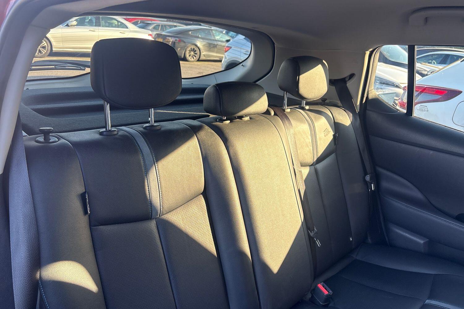 "features": "7\" Combimeter, Apple car play/Android Auto, Blind spot warning, E Pedal, Intelligent Cruise control (ICC), Intelligent lane intervention, Lane departure warning system, Nissan connect EV 8\" touch screen navigation and entertainment system, Push button starter, Rear cross traffic alert, Rear view camera, Speed limiter, Speed sensitive power steering, Telematics system, Trip computer, Voice control system, 6.6 kw On-board charger, 6.6 kW onboard charger, EVSE charging cable, AM/FM/DAB audio system, Aux-in socket, Bose Premium Audio system+7 speakers, Remote audio control, Two rear USB sockets, USB port, Anti dazzle rear view mirror, Auto dimming rear view mirror, Automatic activation of hazard warning lights, Automatic rain sensing wipers, Body coloured door mirrors with integrated LED indicators, Chrome door handles, Door mirrors with turn signal and puddle lamps, e+ embossed charging port, Electric front/rear windows, Electrically adjustable and folding door mirrors, Follow me home headlights, Gloss black finish B pillar, High beam assist, Intelligent auto headlights, LED signature daytime running lights, LED tail light signature, Metallic blue front splitter, Metallic blue rear bumper accent, Rear privacy glass, 60/40 split folding rear seat, Automatic air conditioning with timer and heater, Front centre console and armrest, Front head restraints, Front seatback pocket, Heat pump system with remote control, Height adjustable driver seat, Isofix child seat anchor points, Leather D shaped steering wheel, Manual adjust driver/passenger seats, Part leather/Ultra suede upholstery, PTC (Positive Temp Co-efficent) heater, Quick charge port, Rear assist grips, Rear head restraints, Rear heater duct, Tilt adjustable steering wheel, Heat pack - LEAF, LED Pack - Leaf, Pro pilot Pack - Leaf, Tech Pack - Leaf, 3 point front seatbelts with pre-tensioners, 3x3 point rear seatbelts, ABS with EBD and brake assist, Curtain airbags, Driver and passenger airbags, Front seatbelt pretensioners + load limiters, Height adjustable front seatbelts, Hill start assist, Intelligent emergency braking with pedestrian recognition, Intelligent trace control, Seatbelt reminder for driver and front passenger, Side airbags, Traction control, Tyre pressure monitoring system, VDC Dynamic Vehicle Control, Deadlock, Immobiliser, Nissan i-key, Remote central locking, Thatcham Cat.1 alarm, 17\" alloy wheels, ",