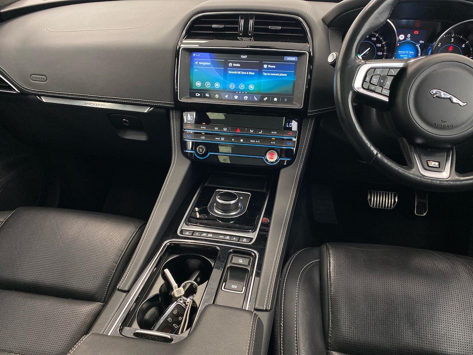 "Front cupholders and storage",