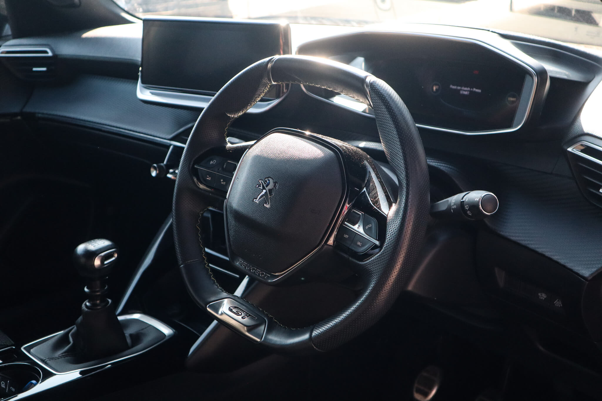 "Mistral full grain perforated leather steering wheel with aikinite stitch detail and satin chrome 'GT' emblem",