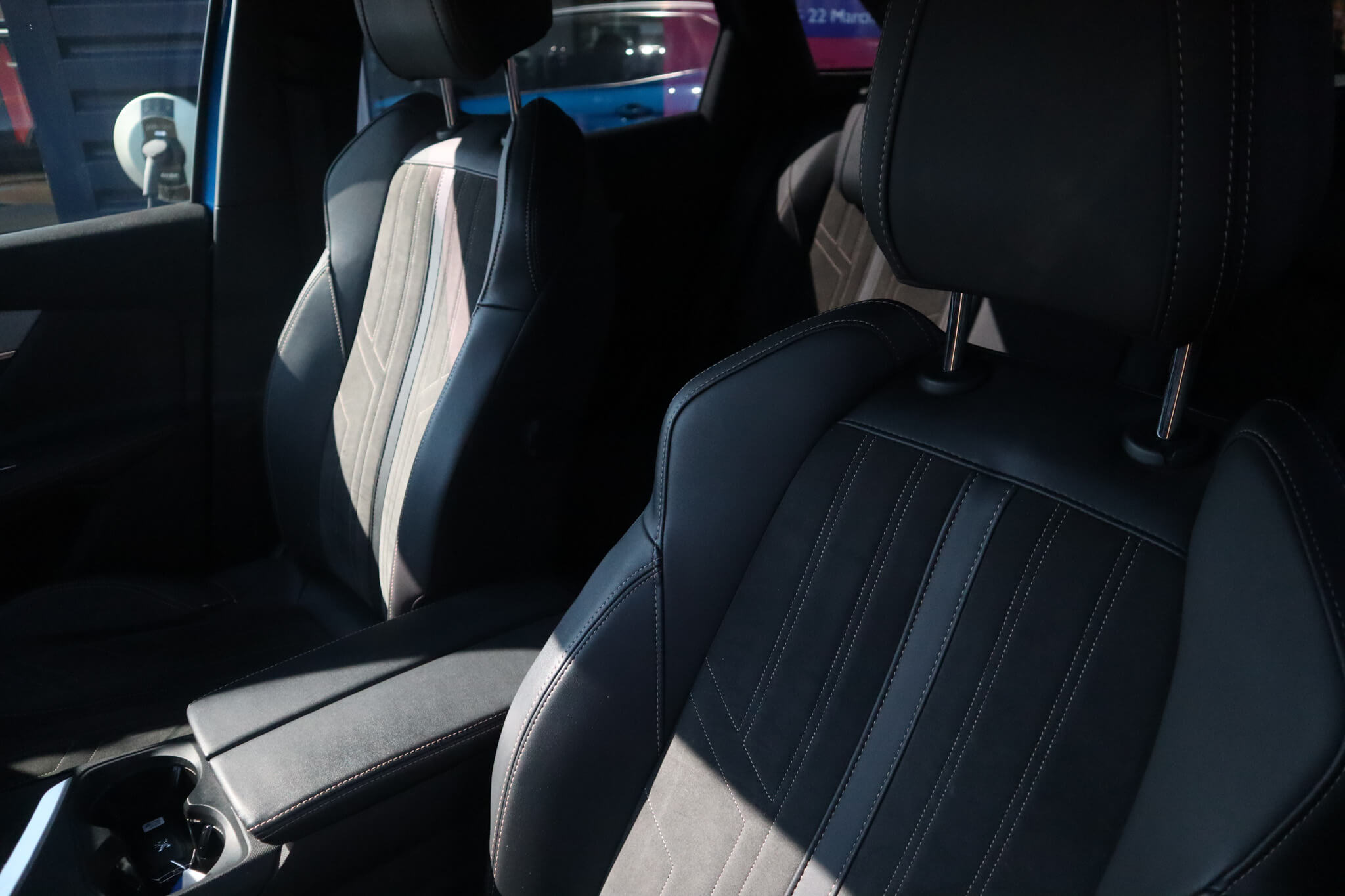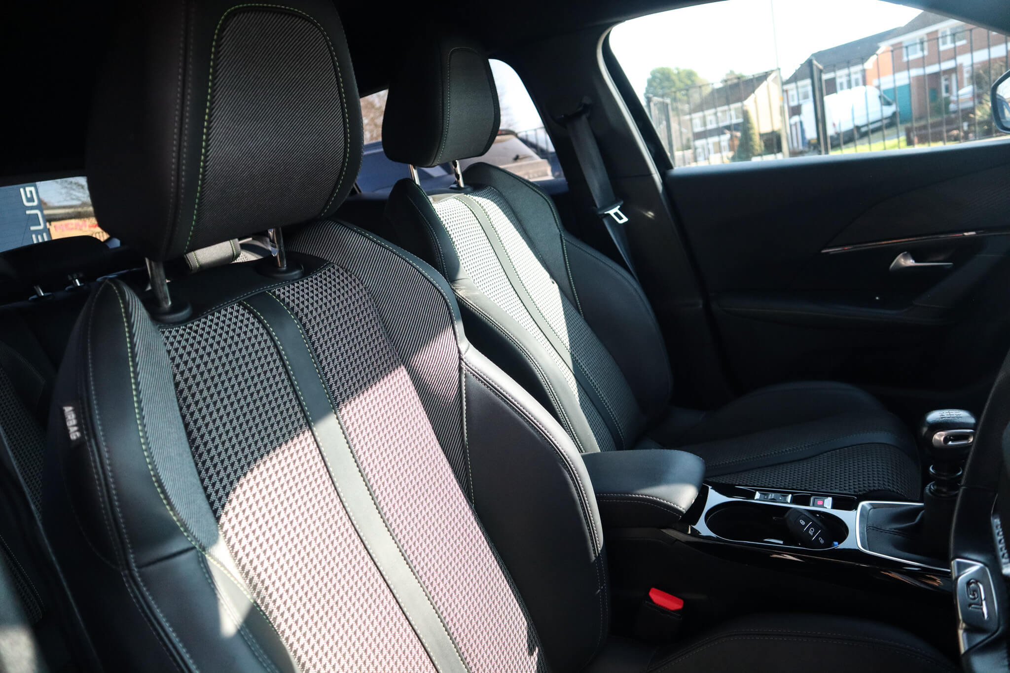 "Aikinite stitching in armrest, gear lever and dashboard facia",