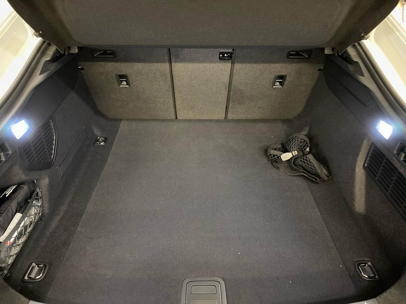 "Net package and top tether hooks in boot space",