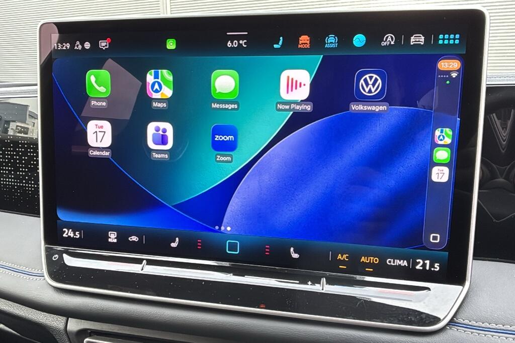"features": "Adaptive cruise control ACC including speed limiter, Advanced driver attention and drowsiness monitor, App-Connect incl. App-Connect Wireless for Apple CarPlay and Android Auto, Area view camera [PAV], Bluetooth phone integration system, Comfort drive travel assist, Digital Cockpit Pro - 10.25\" high resolution dash display screen with customisable menus and information, Dynamic road sign display, E-Sim card for online connectivity, eCall emergency call service, eCall emergency call system, Extended safety system (proactive passenger protection system), Full electric tailgate operation, Head up Display, Inductive smartphone charging without external antenna connection, Lane change system, Side assist, Rear traffic alert and Exit warning system, Lane keeping system Lane Assist, Multifunction front facing camera, Navigation system, Oncoming vehicle braking when turning including swerve support, Park assistance plus with front and rear parking sensors, Power assisted steering with speed sensitive, Rear view camera, Rev counter, Service interval indicator, Speed limit display, Start/stop system with regenerative braking, Trip computer, Voice control and enhancer, Warning signal and warning light for front and rear seatbelts not fastened, Wireless App-Connect, Front wheel drive, 15\" Infotainment display, 8 speakers, DAB radio, Diversity antenna for FM reception, Ambient lighting with logo projection, Auto dimming interior rear view mirror, Automatic headlight control system, Body colour door handles, Body coloured door mirrors with integrated indicators, Chrome moldings on the side windows, Coming/leaving home lighting function, Dynamic headlight range control with dynamic cornering light, Exterior mirrors power folding, auto-dimming on drivers side with surround lighting and memory feature, Front and rear electric windows, Heat insulating darkened glass in side and rear windows, Heated windscreen washer jets, High Beam Assist, automatic sensing for switching between dipped and main beam, High level 3rd brake light, High-resolution matrix beam plus digital projection, Highway light, Illuminated door handle recesses, Illuminated lightline between headlamps and illuminated door handle recesses, IQ.Light - HD matrix headlamps with poor weather light, entry and exit lighting, Laminated safety glass windshield, heat and sound insulating, LED rear lights with welcome farewell lights with illuminated Volkswagen Logo, LED separate daytime running light, Rear fog light on one side, reversing light on both sides, Rear side wing doors, Rear wiper, Remote electrically foldable door mirrors, puddle lights and reverse activated passenger's door mirror, 12V outlet in center console rear and in luggage compartment, 12V socket in centre console, 2 USB-C ports in the front, 2 USB-C charging sockets on the centre console in rear, charging capacity up to 45 W, 3 bench rear seats in 2nd row, 3 rear headrests, 30 colours options interior ambient lighting, Air Care Climatronic 3 zone automatic climate control with enhanced air filter and controls in the rear, Black roof lining, Brushed stainless steel pedals, Carpet mats, front and rear, Centre console with illuminated storage compartment with sliding cover and two drinks holders, Door and side trim panel with leatherette insert, Door sill protectors, Drivers seat with manual adjustment of seat travel and height and backrest angle with thigh support longitudinally sliding, Front centre armrest, Front integrated head restraints, Front massage seats, Front sports comfort seats, Heated front seats, Heated steering wheel, Height adjustable front seats, ISOFIX anchors for child seats on outer rear seats and front passenger seat. Compatible with i-Size, Leather wrapped multifunction steering wheel with paddle shift, Mechanical rear seat release, Power adjustable lumbar support in front, Rear bench seat asymetrically split folding, longitudinally movable and folding with load-through hatch and center armrest, Single front passenger seat, Sun visors with illuminated vanity mirrors, Variable luggage compartment floor, 3 point seat belt for centre rear seats, 3 Point seat belts in front with pretensioners, 3 point seatbelts in outer rear with ECE label, Autonomous emergency braking front assist with pedestrian and cyclist monitoring, Driver/Front Passenger airbags, Electronic parking brake with auto hold, Front disc brakes, Front passenger airbag deactivation, Impact bar in doors, Manual rear child locks, Rear disc brakes, Two tone horn, Tyre pressure loss indicator, Warning triangle, Anti theft alarm system with interior monitoring, backup horn and towing protection, Anti theft wheel bolts, Central locking system keyless entry, Chrome elements on the mirror switch and power window switches, door pulls interior door handle in matte chrome, Decorative inserts, Tool kit for tyre mobility set, ",