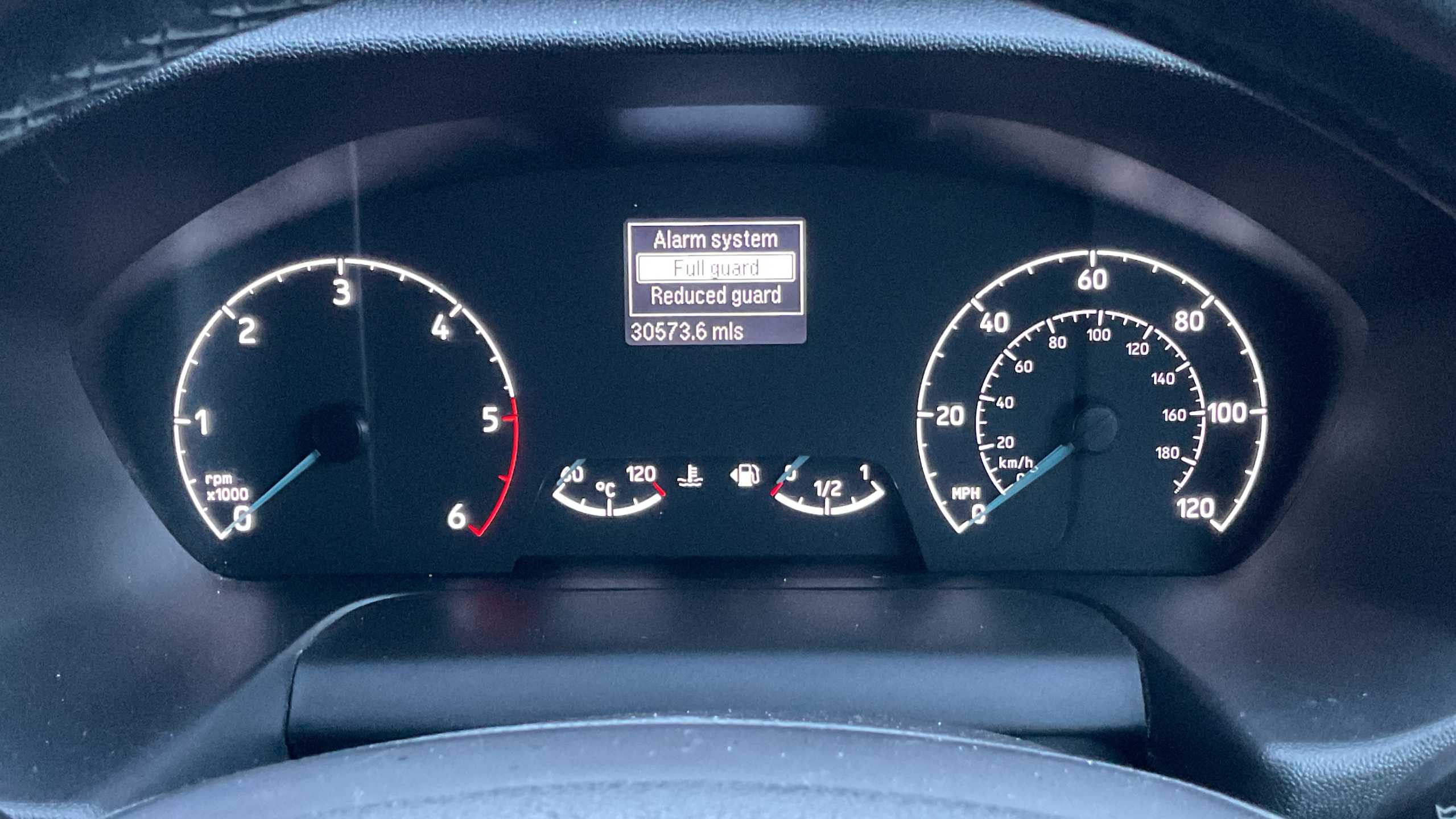 "Speedo, rev counter, electronic odometer, trip, service interval display, exterior temperature and fuel gauge",
