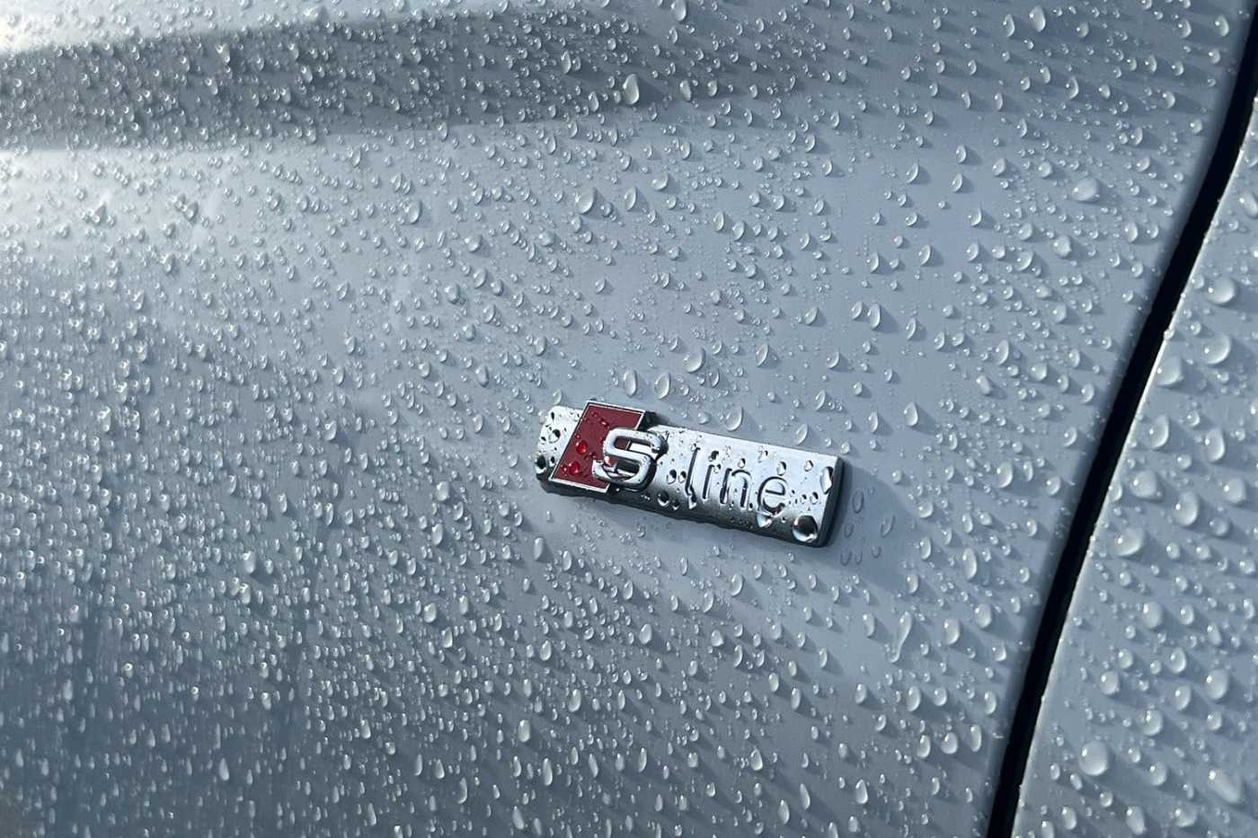 "Window trim strips and attachments, dark with audi rings, front and rear in anthracite grey",