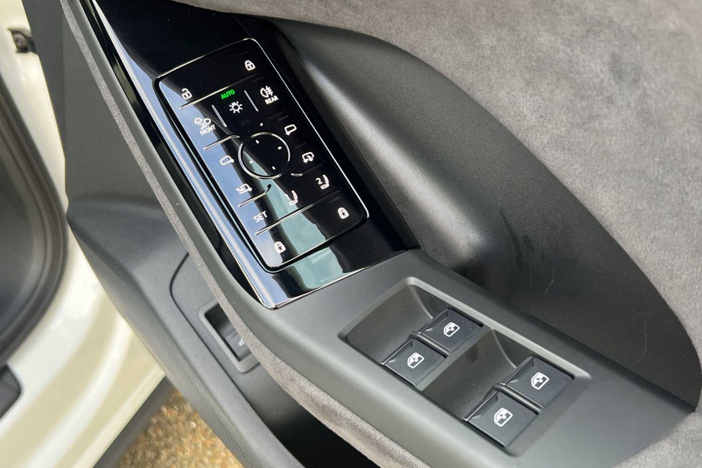 "Centre armrest, centre console and door armrests in dinamica microfibre black",