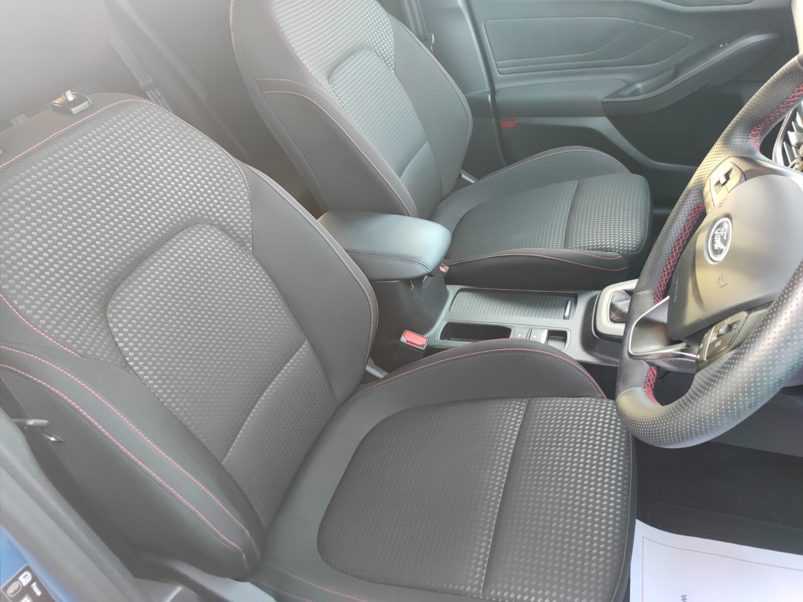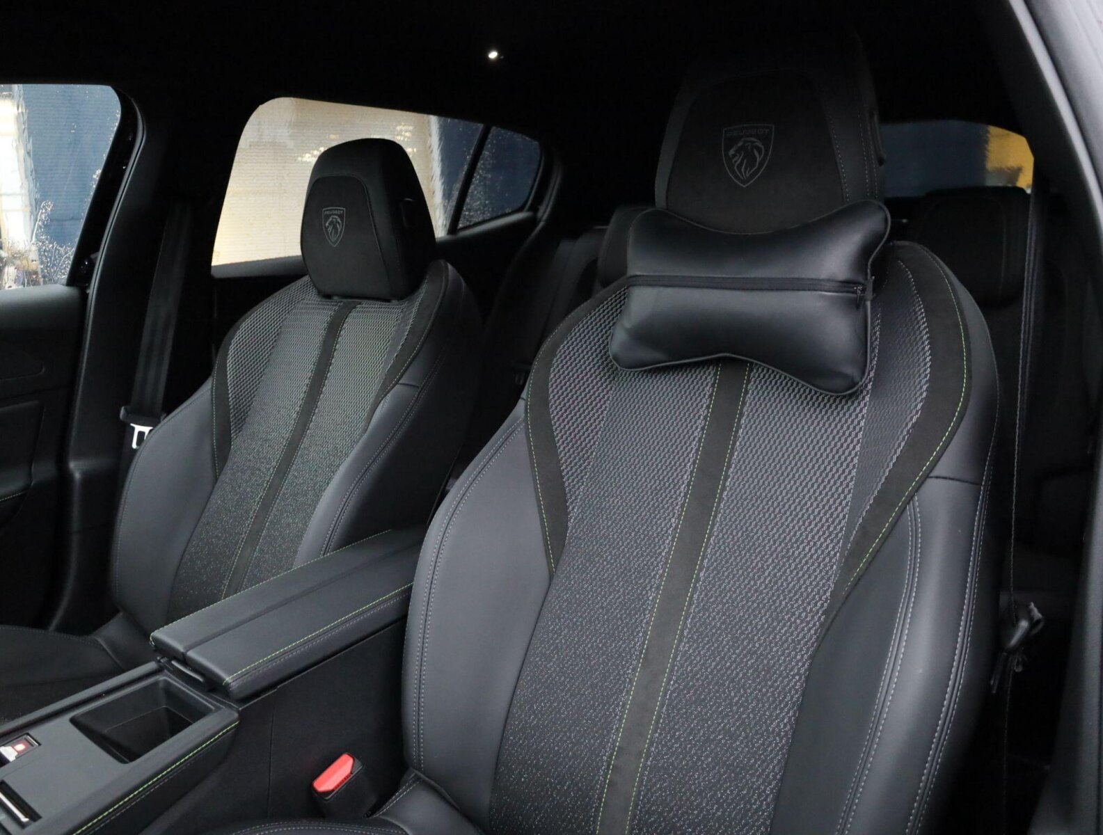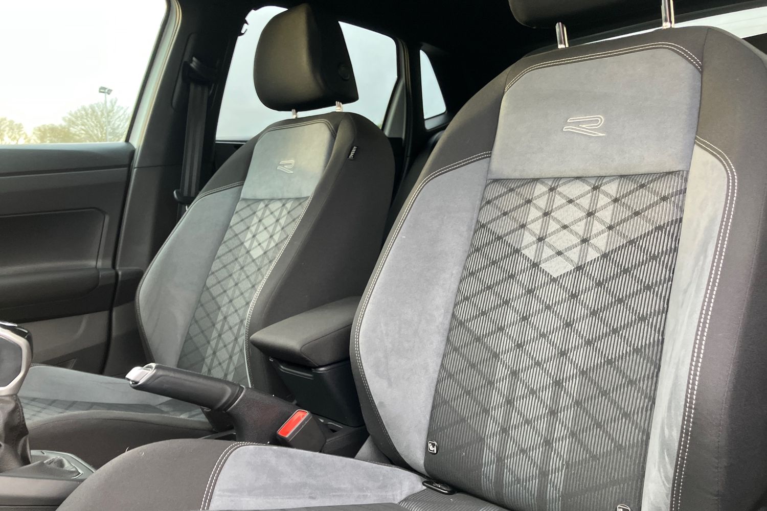 "Black / Grey armrest stitching",