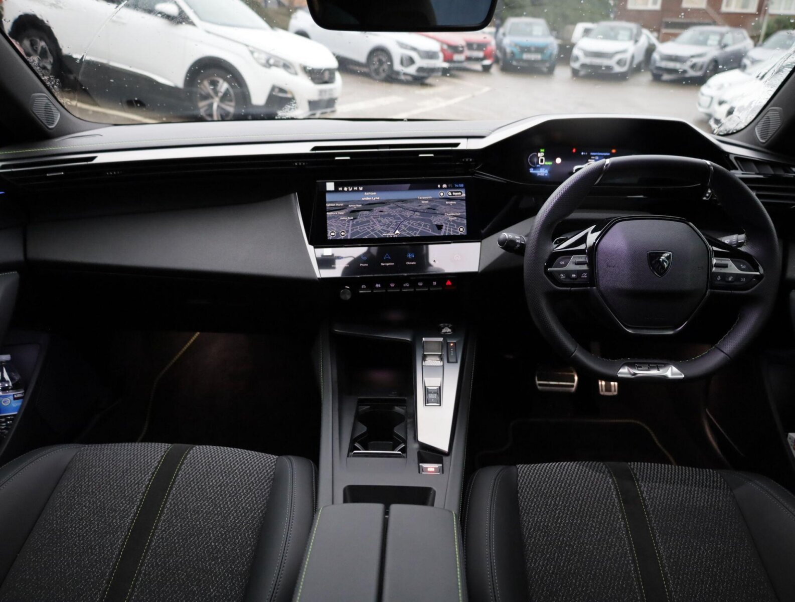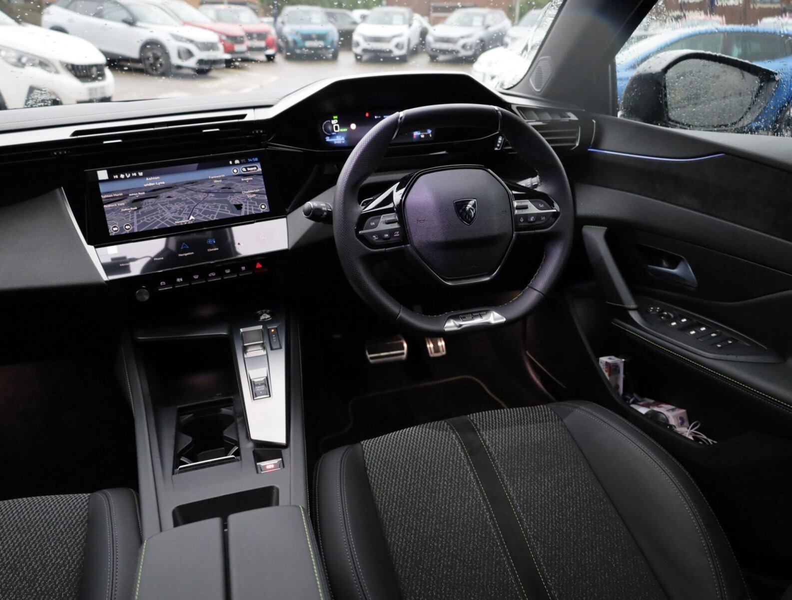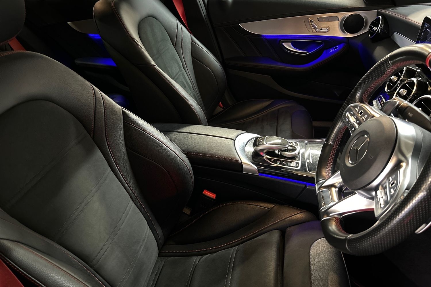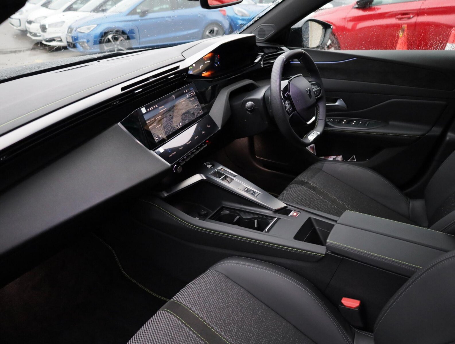 "Black / Grey armrest stitching",