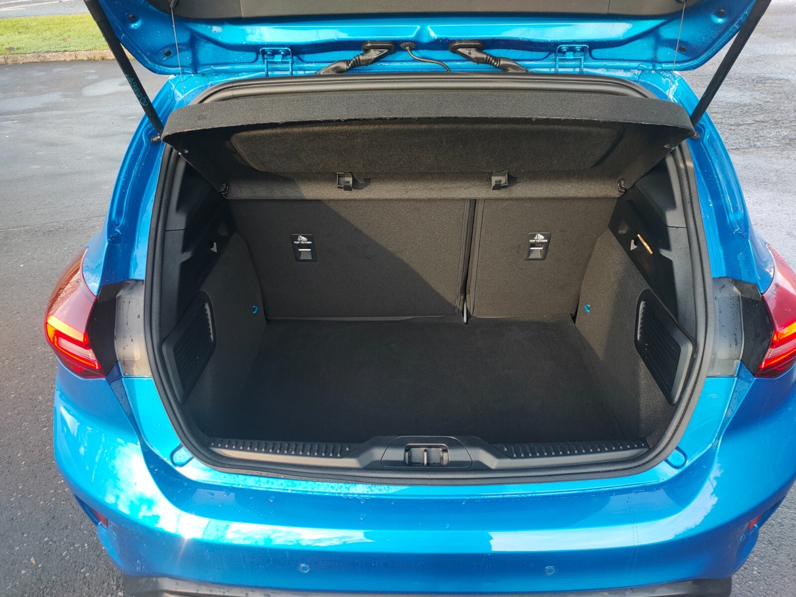 "Net package and top tether hooks in boot space",