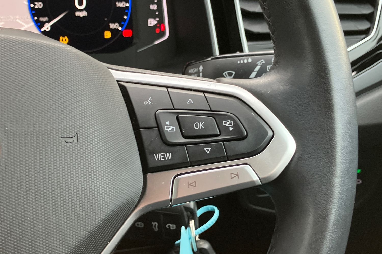 "Skoda lettering on steering wheel",