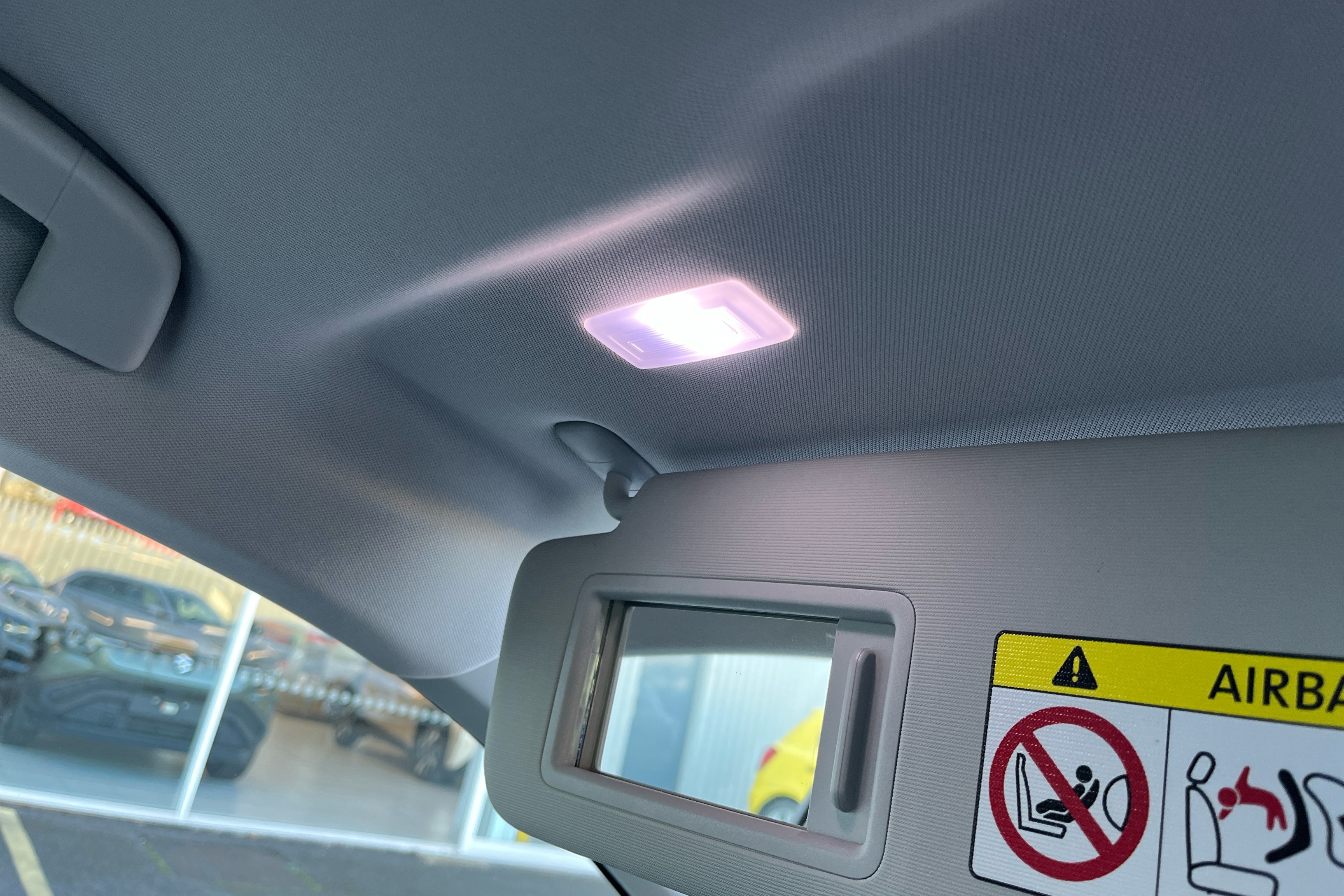 "Illuminated vanity mirrors + ticket holder",