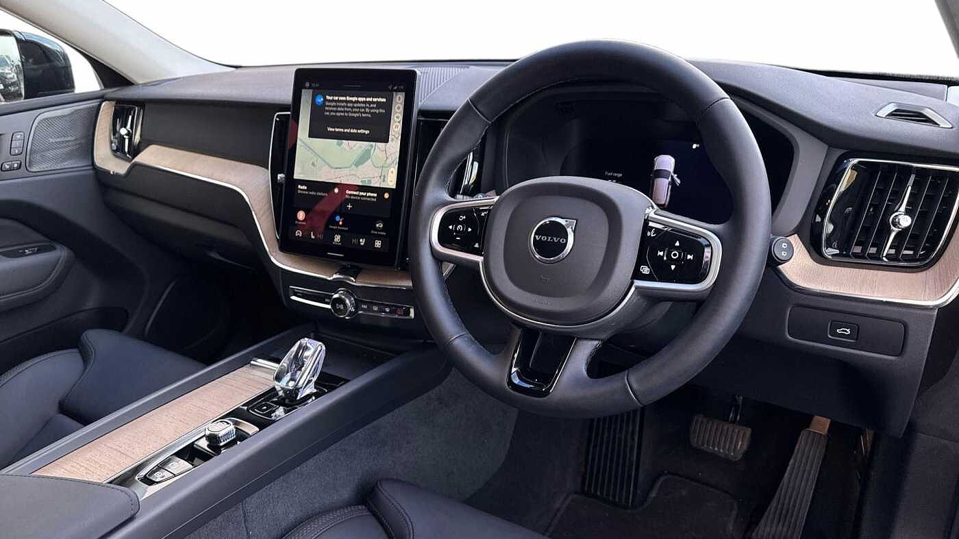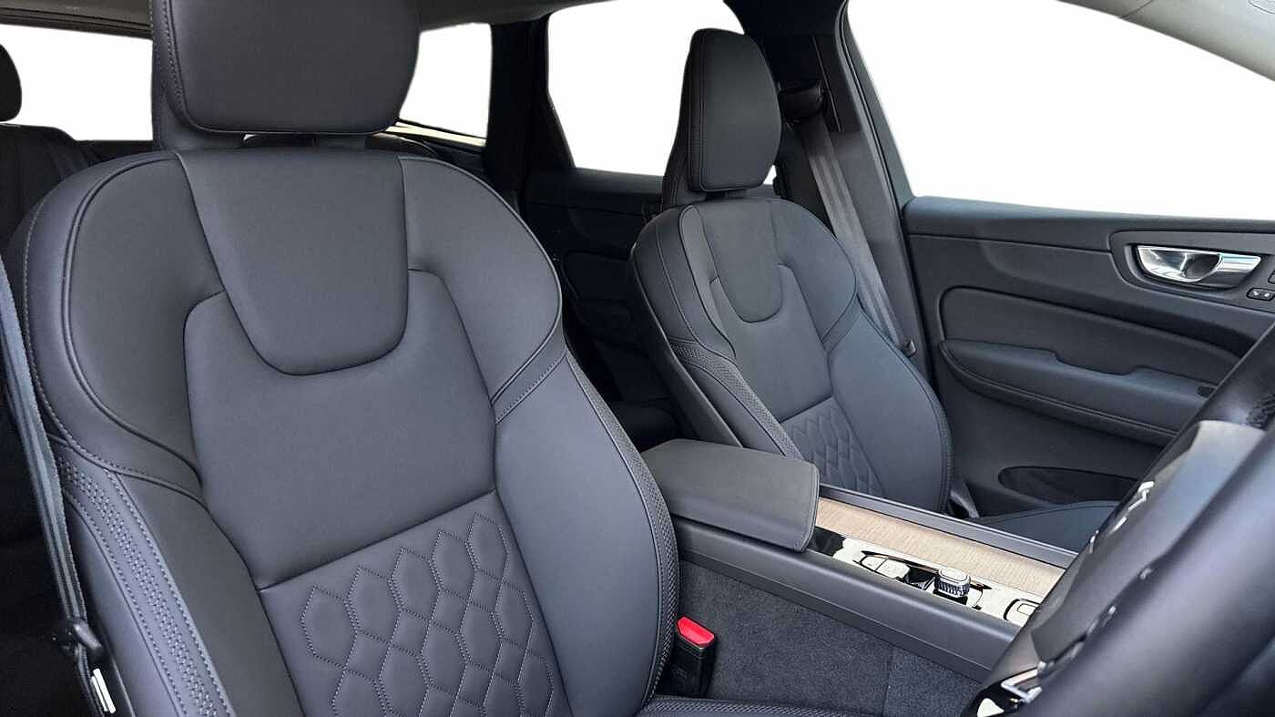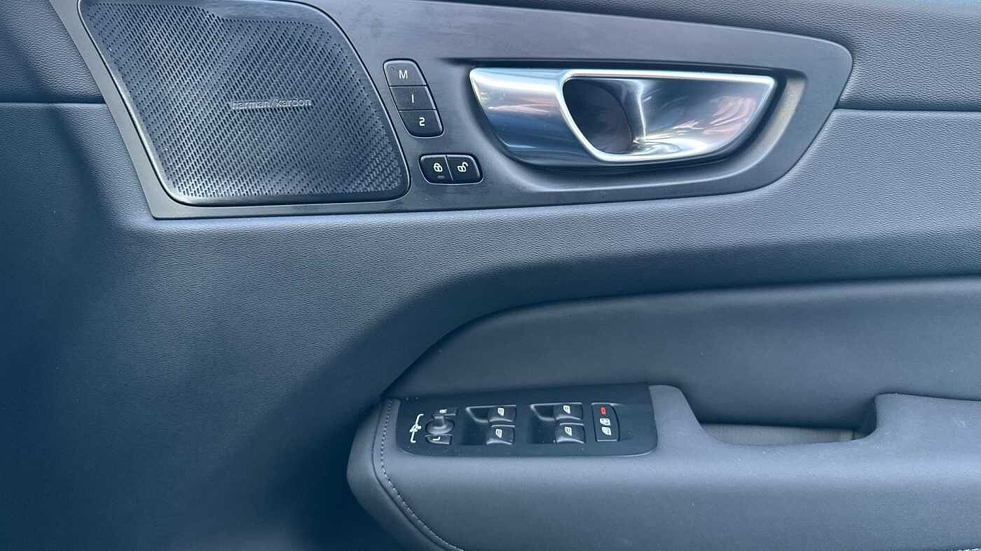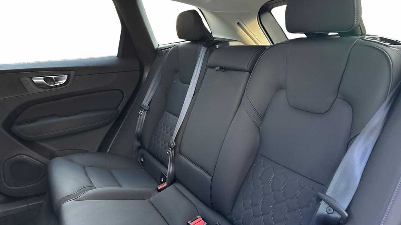 "features": "11.2\" centre console touch screen, 12.3\" Progressive Driver Display, 360 degree surround view parking camera with side proximity sensors, Adaptive cruise control, Adjustable steering wheel force, Android auto (Wired), Apple carplay (wired), Bluetooth handsfree system, Driver alert control with lane keeping aid, Emergency services call system, Front and rear park assist, Google Automotive Services, Intelligent speed assistance, Oncoming Lane Mitigation, PAS, Power operated tailgate with handsfree opening and closing, Service interval indicator, Speed limiter, Speed sensitive steering, Trip computer, Volvo cars services with app, Volvo on call with App, Wireless/Inductive Mobile Phone Charging, 8 speed automatic transmission with start/stop + manual change functions, DAB Digital radio, Premium Sound by Harman Kardon, dirac unison, dolby pro logic II surround sound, 13 speakers/600W output and fresh air subwoofer, Steering wheel remote infotainment controls, Adaptive brake lights with high level LED brake lights, Auto dimming interior + exterior mirrors, Automatic headlight levelling system, Automatic LED Headlights + Active high beam incorporating daytime running lights, Electric adjustable/heated/auto power folding door mirrors, Electric front+rear windows, Front aluminium tread plates, Heated front windscreen, High gloss black door mirrors and window surround, High gloss black front and rear bumper decoratives, High gloss black mesh front grille with high gloss black surround, Home safe and approach lighting, Integrated roof rails in high gloss black, Puddle lights, Rain sensor with automatic windscreen wiper activation, Rear side wing doors, Rear wiper, Roof antenna, Roof spoiler, Tinted windscreen, Visible VIN plate, 12V socket in front tunnel console and luggage compartment, 3 seat bench in 2nd row, 3 Spoke tailored steering wheel with chrome trim, 4 Zone electronic climate control, A-pillar parking ticket holder, Air purifier particulate matter (PM) 2.5 filter, B Pillar ventilation, Bright metal luggage scuff plate, Centre console cupholders and storage, Charcoal floor mats, Front and rear courtesy lights, Front and rear door pocket illumination, Front cupholder illumination, Front footwell illumination, Front reading lights, Front seat cushion extensions, Glovebox compartment with illumination, Head restraints for all seats, Heated front seats, Heated steering wheel, Height/reach adjustable steering column, Illuminated luggage compartment, Illuminated vanity mirrors + ticket holder, Inner door release handle illumination, ISOFIX attachment on outer rear seats, Load cover, Load protection net, Multi directional lumbar support, Power driver seat with memory + exterior mirrors memory, Power height adjustable passenger seat, Power passenger seat with memory, Quilted nordico leather upholstery, Rear armrest with cupholder, Rear footwell and front and rear side step illumination, Rear reading lights, Rear seat concealed storage, Single front passenger seat, Tailgate illumination and ambient door lighting, Underfloor stowage compartment, Versatile split folding rear seat - 60/40, Driver assist pack without Adaptive cruise control - XC60, 5 three point seatbelts, City safety with steering support with Pedestrian + cyclist + front collision warning with full auto brake and rear auto brake, Drivers knee airbag, Dual stage driver/passenger airbags, Electronic parking brake with auto hold, First aid kit, Front seats SIPS airbags, Hill descent control - Off-road drive mode, Hill start assist, IC (Inflatable Curtains) - Full Length, Passenger airbag cut-off device, Power child locks on rear doors, Road sign information display, Run off Road Mitigation, Run off Road Protection, Seatbelt reminder and pretensioners, SIPS (Side Impact Protection System), Slippery road and hazard light alert, Stability and Traction Control with Spin control, Engine Drag Control and Corner Traction Control, Tyre pressure monitoring system, Vehicle deceleration control with Anti-lock Brake System, Electronic Brake Distribution and Emergency Brake Assist, Warning triangle, WHIPS whiplash protection system - front, Anti-theft alarm including immobiliser/volume sensor + level sensor, Key integrated remote control central locking + fuel flap with deadlocking system and auto open/close power windows, Keyless Drive (includes Keyless Entry and Keyless Start), Locking wheel nuts, Private locking for tailgate, Summer tyres, ",