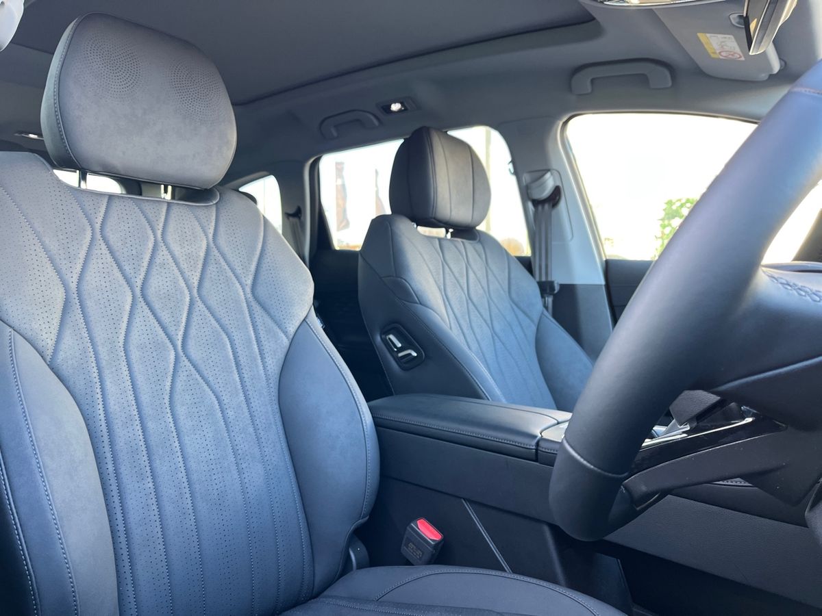 "features": "10.25\" LCD instrument cluster, 15.6\" LCD central console infotainment display, 4G cellular connected, FOTA, 540 degree panoramic view camera, Adaptive cruise control (ACC), Blind spot detection, Cloud-based voice assistant, DAI Forward Departure System, Drive mode selector, Driver monitor system (DMS), E-call safety system, Electric power steering, Emergency Lane Keeping Assist (ELKA), Front and rear parking sensors, Front collision warning, Hands free powered tailgate open, Head up Display, ICA - integrated cruise assist, Intelligent elude system, Lane departure prevention, Lane departure warning (LDW), Multiple collision defence system, RCTA - Rear cross traffic alert, Remote engine start, Remote HVAC start, Speed limit reminder, Traffic jam avoidance assistant, Wireless apple car play/android Auto, 230V V2L outlet 3.3kW, Multi-link rear suspension, 1st Row USB type-A and USB type-C, 2nd row USB-Ax1,USB-Cx1, DAB Digital radio, Sony 12 speaker audio system, Auto dimming rear view mirror, Automatic high beam, Automatic LED headlights, Body colour door handles, Dual rear fog and reversing light, Electric slide and tillt front panoramic sunroof/fixed rear sunroof with sunblind, Electrically adjustable, heated and folding wing mirrors, Electrically height adjustable headlights, Follow me home headlight function, Heated rear windshield, Hidden front wiper - adaptive speed control, High level brake light, LED daytime running lights, LED rear lights, One touch window function for all doors, Rear side wing doors, Rear wiper, Side mirror ground illumination puddle lamps, Silent glass - front windscreen, 12V socket outlet 3rd row, 1st row dome reading light, 1st row heated seats, 2nd row AC vents, 2nd row dome reading light, 3rd row dome reading light, 4 way adjustable steering column, 4 way electric adjustable passenger seat, 4 way power lumbar driver seat, 6 way power adjustable driver seat, 60/40 split folding rear seats with flat folding, 7 seats with integrated head support, Driver/passenger sunvisor with auto illuminated vanity mirrors, Dual zone air conditionor with auto climate control, Front and rear headrests, Front centre armrest with storage cover auto illuminate, Heated seats (2nd row), Heated steering wheel, Isofix child seat anchor points, Leather steering wheel, LED illuminated step entry sills, Massage function for front passenger, Multifunction steering wheel, Synthetic leather upholstery, Ventilated front seats, 3 point seatbelts on all seats, Anti-lock brake system (ABS), Autonomous emergency braking, Brake assist and priority system (BAS) (BOS), Child proof door locks, Dual front airbags, EBD - Electronic brakeforce distribution, Electric limited seatbelts with pretensioners, Electrical brake booster, Electronic parking brake with auto hold function, Electronic Stability Programme (ESP), Front centre airbag, Front side airbags, Front ventilated disc brakes, HAC - Hill start assist control, Height adjustable front seatbelts, PAB manual switch off, Side curtain airbags, Tyre pressure monitoring system, Uphill and downhill assist, Automatic door locking, Engine immobiliser, PEPS (passive entry and passive start), Dark colour interior, 19\" Alloy wheels, Puncture repair kit, ",