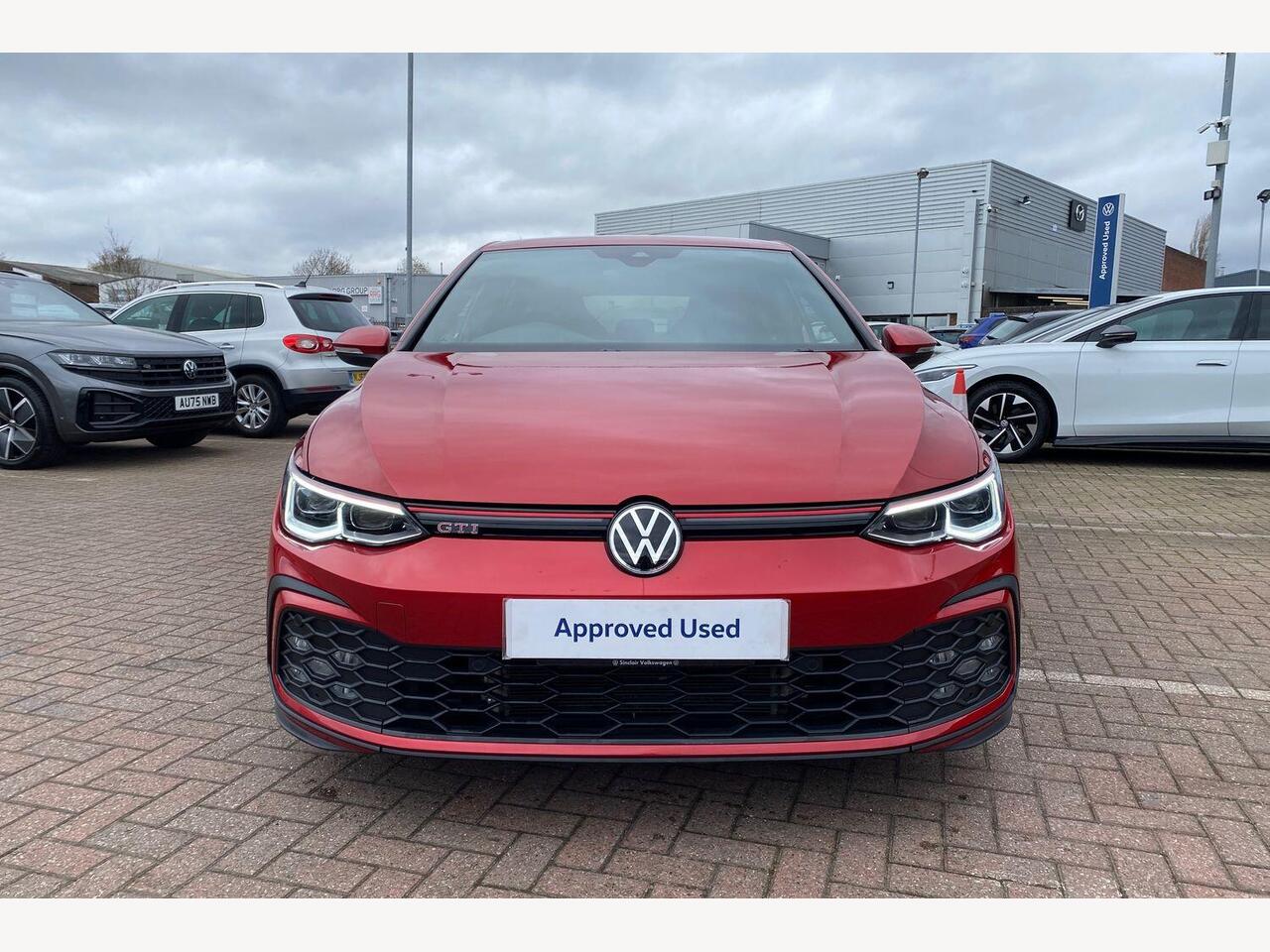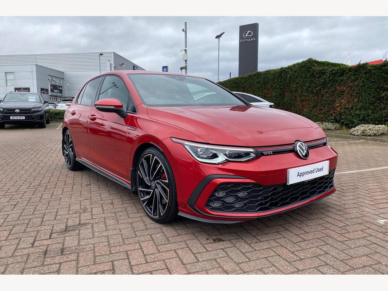 "remarks": "Experience driving redefined with the Volkswagen Golf 2.0 TSI GTI Hatchback. Finished in striking Kings Red, this iconic model combines spirited performance with cutting-edge technology and refined comfort. Under the bonnet lies a powerful 2.0-litre TSI engine delivering 245 horsepower, paired with a smooth DSG transmission, offering responsive and effortless acceleration that is perfectly suited to both city streets and open roads. Step inside to discover the exquisite Jacara Cloth upholstery in Titan Black with bold red accents, blending sporty character with premium craftsmanship. The cabin centres around the Digital Cockpit � a 10.25-inch high-resolution TFT display � providing fully customisable menus to keep vital information clearly in view and enhancing your connection with the car. Safety and convenience come as standard with Adaptive Cruise Control, seamlessly maintaining a safe distance from the vehicle ahead, while Travel Assist supports semi-autonomous driving including Emergency Assist to help prevent accidents. The Vehicles IQ.Light LED Matrix Headlights offer superior visibility, optimising illumination with dynamic cornering lights to safely light up bends after dark. Additionally, Side Assist enhances awareness of vehicles in the blind spots, contributing to a confident and secure drive. This Golf GTI exemplifies Volkswagen�s commitment to Euro 6 standards with a turbocharged petrol engine delivering exciting performance while maintaining responsible emissions. Every journey becomes a pleasure with responsive handling, advanced driver assistance, and a bold design that turns heads. Discover a hatchback that excels in daily practicality and thrilling dynamics. The Volkswagen Golf 2.0 TSI GTI Hatchback in Kings Red � where passion meets precision. Visit your local Volkswagen retailer today to arrange a test drive.",