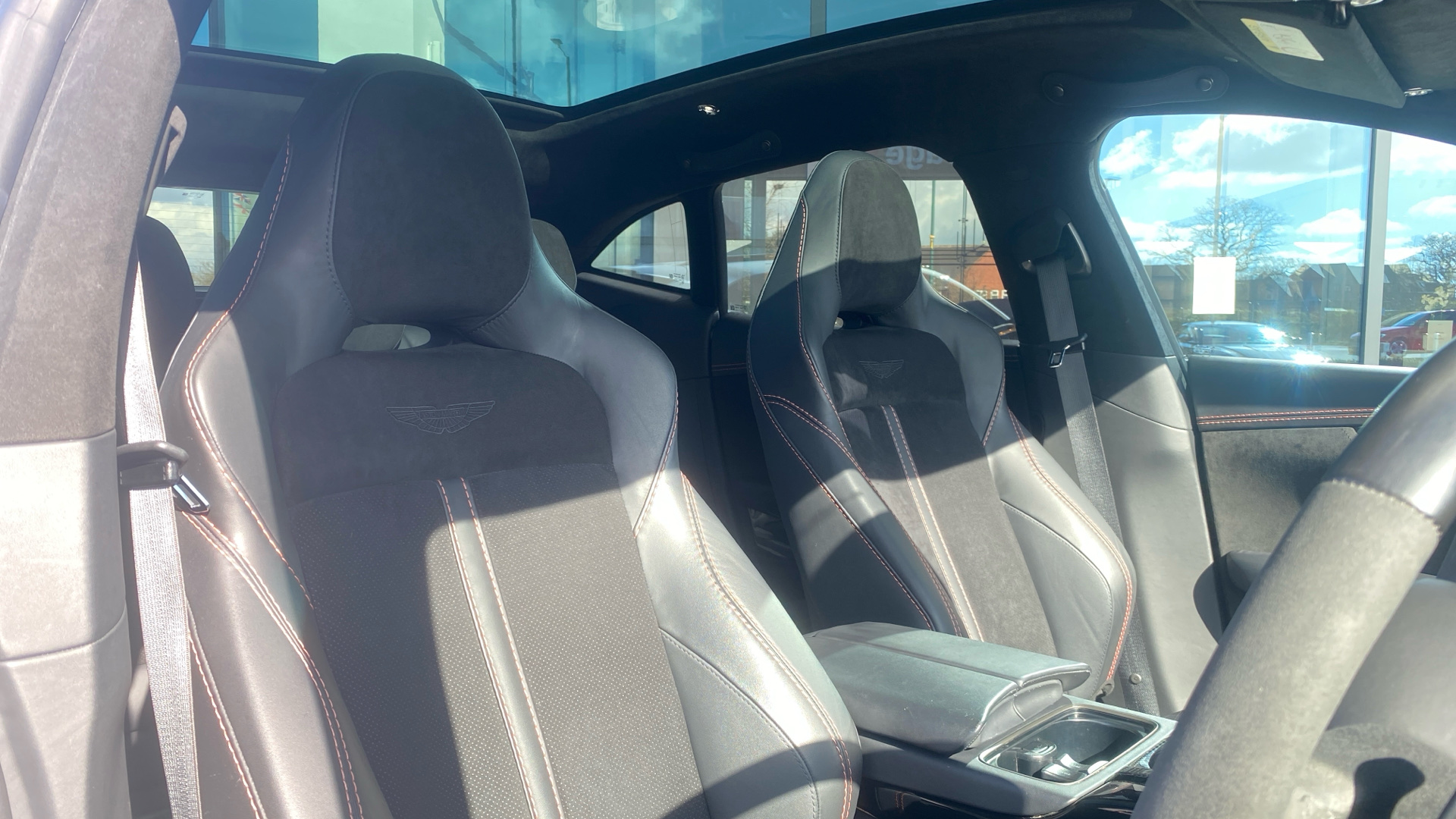 "Front sun visors with driver and passenger mirrors",