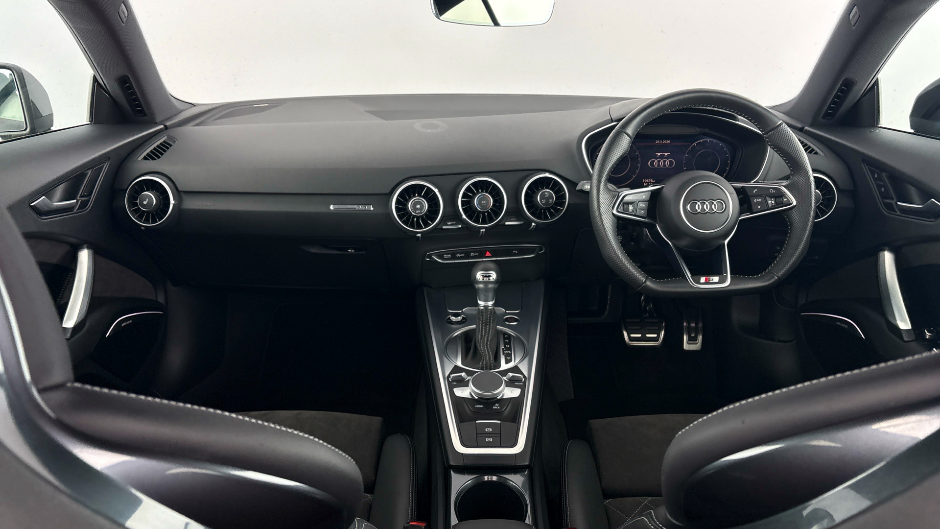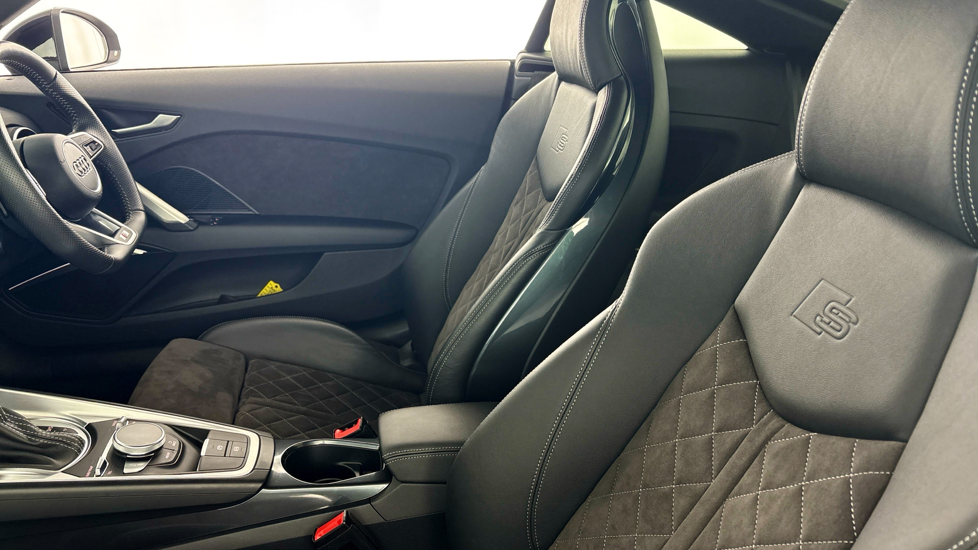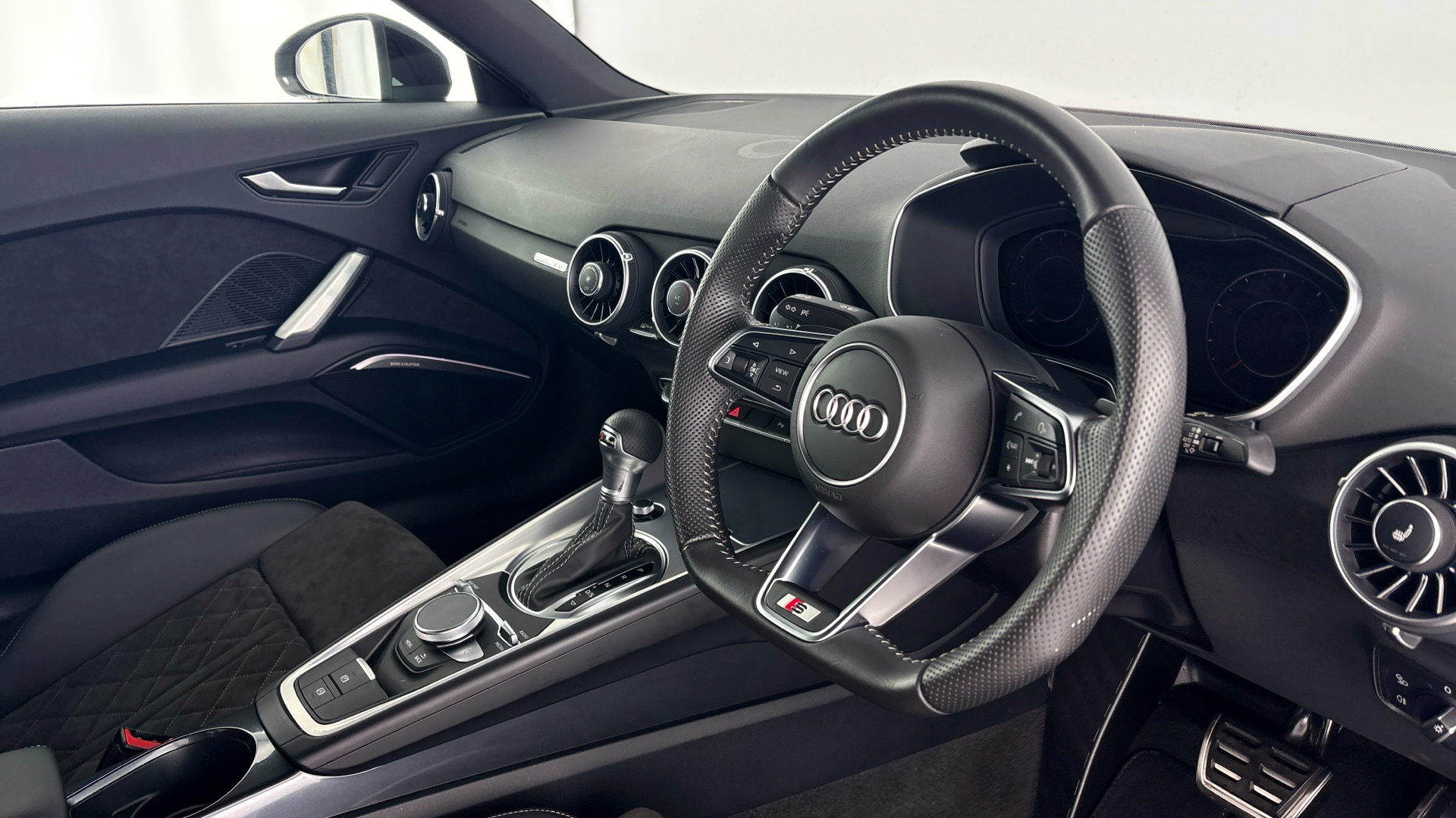 "features": "Audi drive select with 4 Pre configured modes, Audi smartphone interface, Audi virtual cockpit - 12.3\" high-resolution LCD display with fully customisable instrument cluster, Cruise control + speed limiter, Emergency call service, MMI touch panel, Mobile phone preparation with bluetooth interface, Progressive power assisted steering, Service interval indicator, Start/Stop system with energy recuperation, TP memo, Sports suspension, AM/FM radio, Bluetooth audio streaming, DAB Digital radio, MMI Radio with CD player and SD/XC card slot, Auto dimming rear view mirror, Auto headlight range control, Black chrome tailpipe, Dark privacy glass from B-pillar backwards, Electric folding door mirrors, Electric front windows, Electrically adjustable and heated door mirrors with integrated LED side indicators, Front fog lights, Green tinted heat insulating glass, LED 3rd brake light, LED daytime running lights, LED headlights with LED rear lights + dynamic rear indicators, Light and rain sensors, Rear boot, Sunband for windscreen, 12V socket, 2 rear seats, 3 spoke flat bottomed high multi-function leather sport steering wheel with gearshift paddles, 4 way electric lumbar support for driver and front passenger, Black headlining, Contrasting silver stitching in steering wheel, Door sill trims, Extended aluminium look with stainless steel pedals, Front centre armrest, Front passenger seat, Front super sports seats, Heated front seats, Height adjustable driver's seat, Height adjustable front head restraints, Height/reach adjust steering wheel, ISOFIX child seat mounting for front passenger seat with airbag deactivation, Manual adjustment of seat height, fore/aft position, seat angle, seat depth and backrest angle, Perforated leather gearknob in black, Rear head restraints, Rear top tether child seat ISOFIX attachment, Split folding rear seat, Black styling pack - TT, Non smoking pack - TT/TT RS, 3 point front seat belts, ABS, ASR traction control, Curtain airbags, Driver and front passenger airbag with front passenger airbag deactivation, EDL traction control, Electromechanical parking brake, ESP, First aid kit, Front side airbags, Head airbags, Hill hold assist, Seatbelt warning, Tyre pressure loss indicator, Warning triangle, Anti theft alarm, Anti theft wheel bolts, Immobiliser, Keyless Go, Remote central locking, Matt brushed aluminium inlays, Tool kit, Tyre repair kit, ",