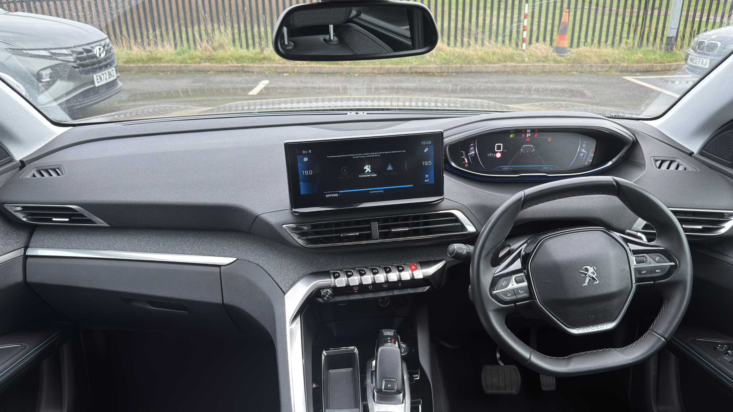"Peugeot i-cockpit with configurable 12.3\" headup digital instrumental panel and compact sports steering wheel",