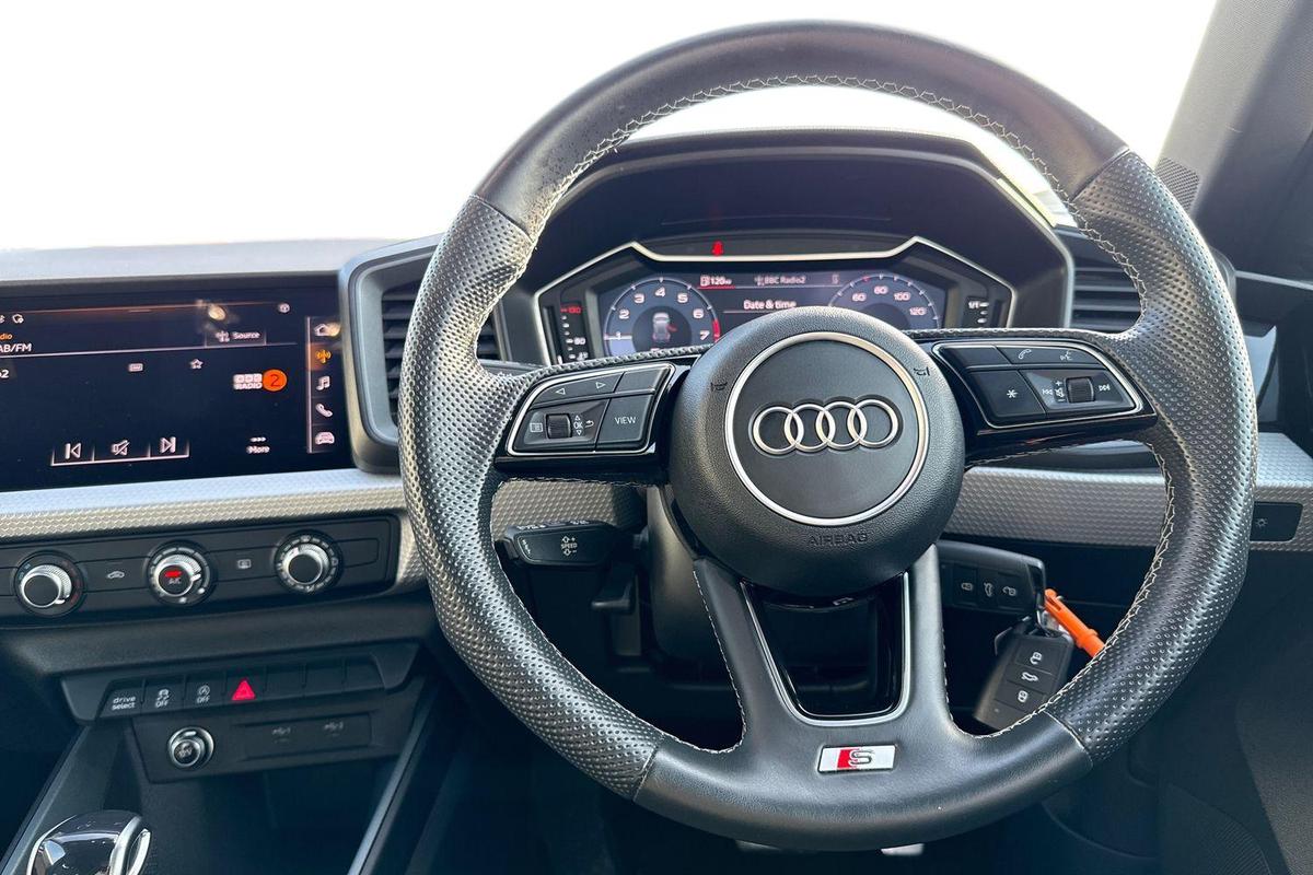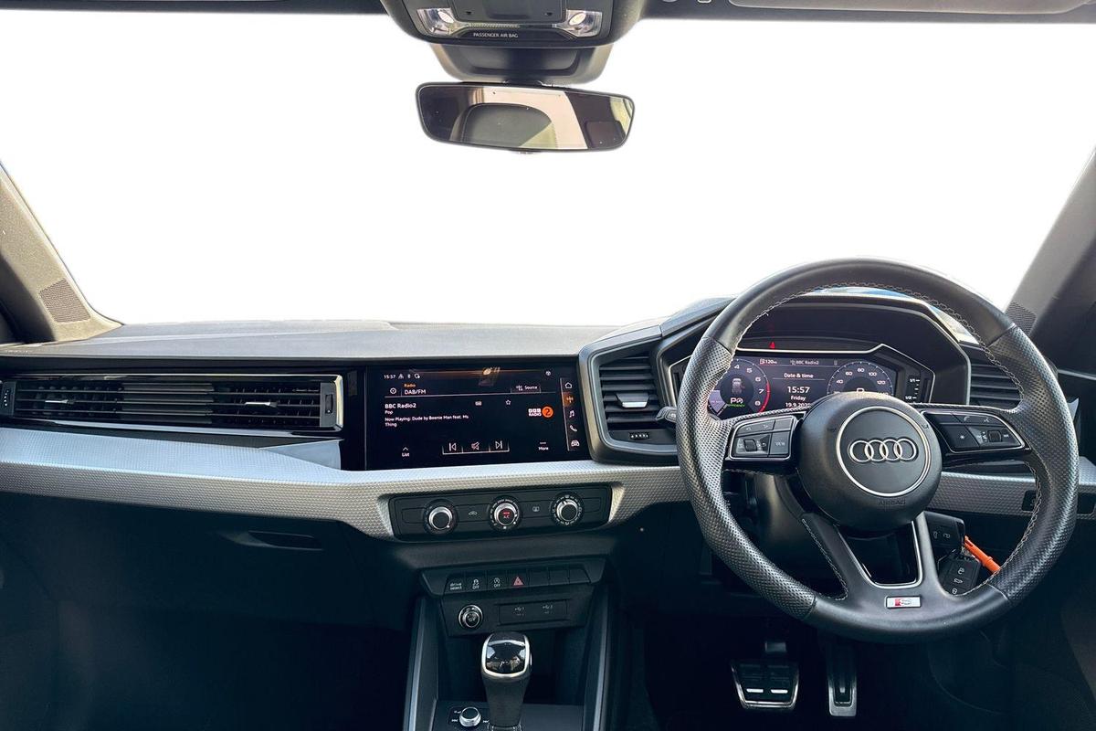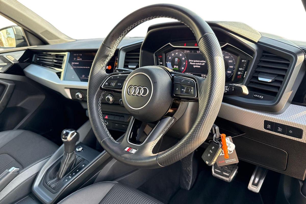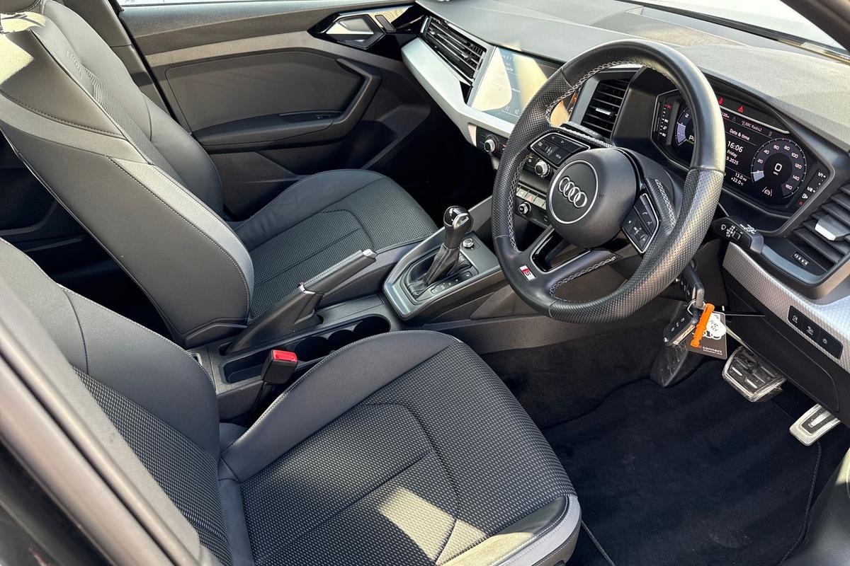 "features": "Audi connect emergency call and service, Audi drive select (Auto, Comfort, Dynamic, Efficiency and Individual), Audi smartphone interface, Audi Virtual Cockpit - 10.25\" digital and colour instrument cluster, Automatic start/stop system with recuperation, Bluetooth interface, Collision avoidance assistant, Electromechanical power speed sensitive steering, Lane departure warning system, MMI Navigation Plus with high resolution 10.1\" colour touch screen display, Service indicator, Voice control system with natural language interaction, 1xUSB-A and 1xUSB-C connection, 6 passive loudspeakers, CD player, DAB Digital radio, Acoustic glass windscreen, Aluminium window trim, Auto dimming frameless rear view mirror, Body colour exterior mirrors, Electrically adjustable/heated/folding/dimming door mirrors with kerb view includes integrated LED indications + kerb view function for passenger side, Front electric windows, Illuminated door sills with aluminium inserts at the front with S logo, LED daytime running lights, Light and rain sensors, Model and engine designation badges at rear, Privacy glass - dark tinted rear window, rear door and side windows, Rear electric windows, S line bumpers, S roof spoiler, 12V socket and storage compartment in front centre console, 40/20/40 split folding rear seat bench with cupholder, Black cloth headlining, Dual zone electronic climate control, Front and rear centre armrest in leather, Front and rear headrests, Front/rear floor mats, Height and reach adjustable steering wheel, Interior lighting - glove compartment light and right hand side, Luggage compartment floor covering, Manual boot compartment lid, Manually adjustable front seats, Seat side bolsters, Stainless steel pedals and front footrest, Twin leather upholstery with front sports seats S embossed logo, Aluminium interior elements pack - A3 Saloon, S line styling pack - A3 Saloon, 3x3 point rear seat belts, Driver and front passenger airbag with passenger airbag deactivation, Electronic Stabilisation Control (ESC) including ABS, ASR and EDL, First aid kit with warning triangle and 2 safety vests, Hill hold assist, Pre-sense front with pedestrian and cyclist detection, Seatbelt monitoring, Tyre pressure loss indicator, Anti theft alarm, Anti-theft wheel bolts, Electronically operated child lock, Immobiliser, Remote control central locking, Aluminium air vent surrounds, Aluminium trim elements, Dark spectrum aluminium inlays, accent surfaces in the dashboard and centre console in platinum grey silk effect paint finish, ",