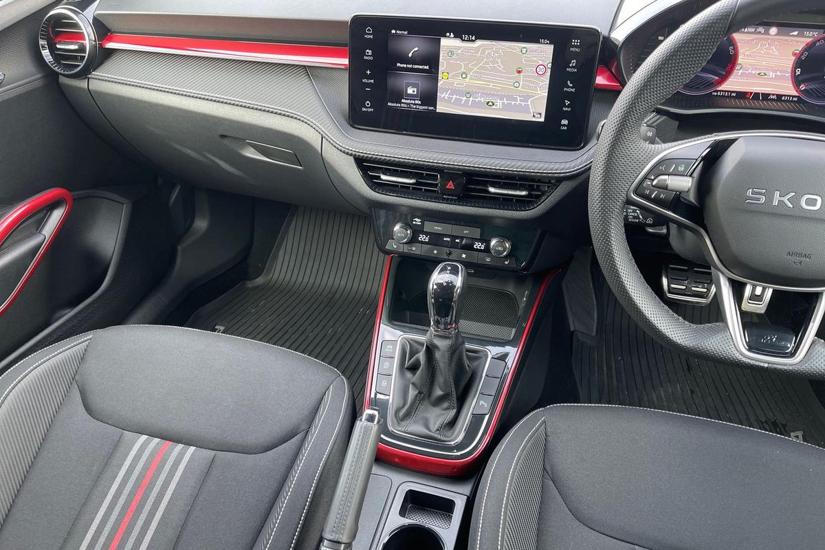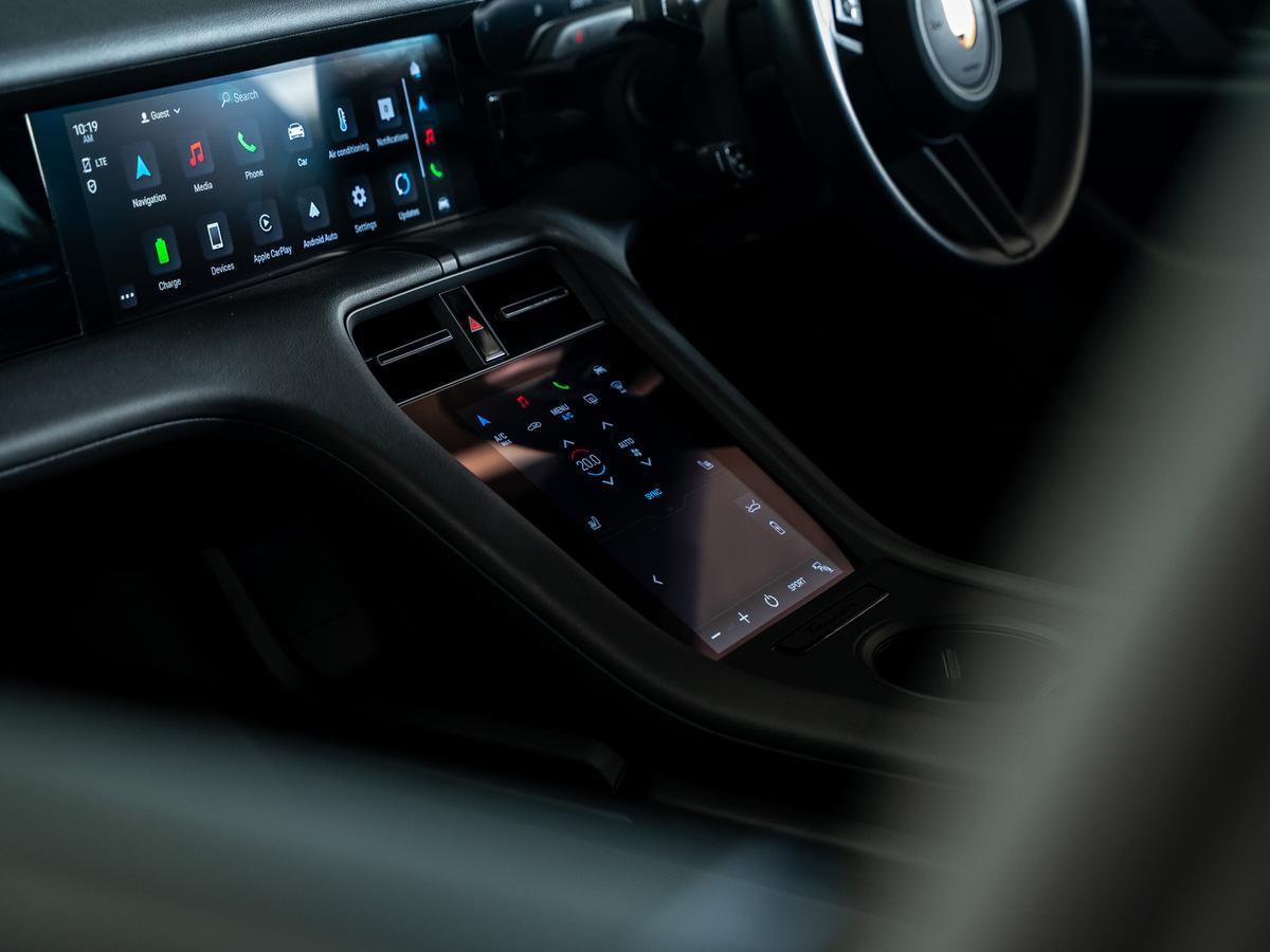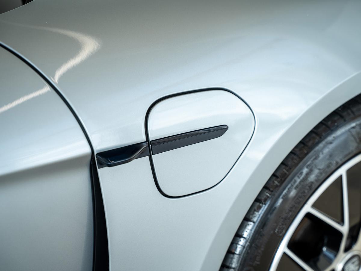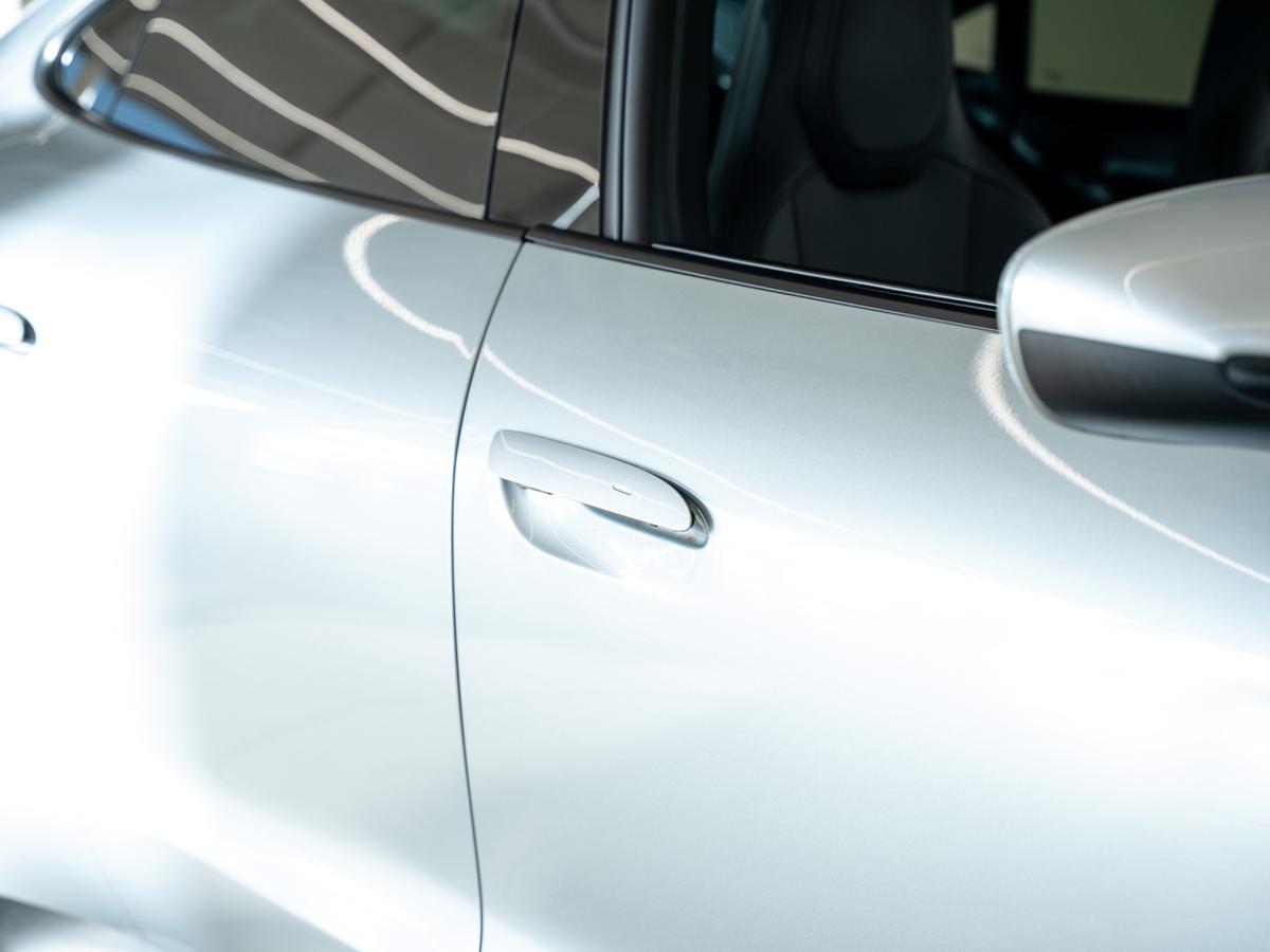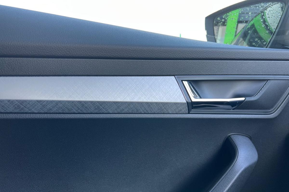 "Accent surfaces in the dashboard and centre console in platinum grey silk effect paint finish",