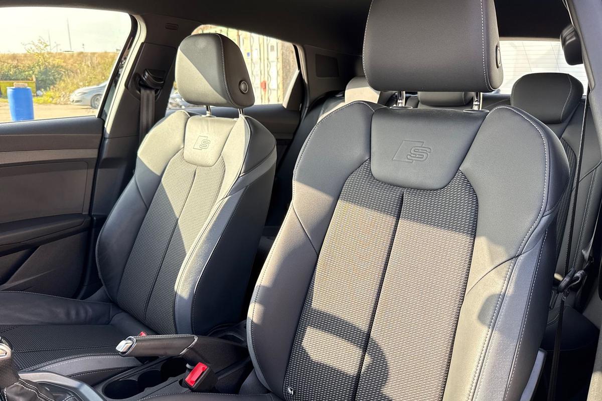 "features": "Audi drive select (Auto, Comfort, Dynamic and Individual), Audi smartphone interface, Audi Virtual Cockpit - 10.25\" digital and colour instrument cluster, Automatic start/stop system with recuperation, Bluetooth interface, Collision avoidance assistant, Cruise control, e-Call (emergency call), Electromechanical power speed sensitive steering, Lane departure warning system, MMI Navigation Plus with high resolution 10.1\" colour touch screen display, Rear parking sensors, Service indicator, Trip computer, Voice control system with natural language interaction, 2xUSB-C connection with data and charging functions, 6 passive loudspeakers, DAB Digital radio, 3rd brake light, Acoustic glass windscreen, Aluminium window trim, Auto dimming frameless rear view mirror, Electrically adjustable/heated/folding/auto dimming door mirrors with integrated LED indications + kerb view function for passenger side, Front electric windows, Illuminated aluminium inserts front door sills with S logo, LED daytime running lights, LED headlights with LED rear lights and dynamic rear indicators, Light and rain sensors, Privacy glass - dark tinted rear window, rear door and side windows, Rear electric windows, Rear side air outlets in grained matt black, Rear side wing doors, Rear wiper, S line bumpers, S roof spoiler, 12V socket and storage compartment in front centre console, 3 seat bench in 2nd row, 40/20/40 split folding rear seat bench with cupholder, Black cloth headlining, Dual zone electronic climate control, Front and rear centre armrest in leather, Front and rear headrests, Front/rear floor mats, Height and reach adjustable steering wheel, Illuminated vanity mirror, Interior lighting - glove compartment light and right hand side, Luggage compartment floor covering, Manual boot compartment lid, Manually adjustable front seats, Seat side bolsters, Single front passenger seat, Stainless steel pedals and front footrest in black, Twin leather upholstery with front sports seats S embossed logo, Aluminium interior elements pack - A3 Sportback, S line styling pack - A3 Sportback, 3x3 point rear seat belts, Audi pre sense front, Driver and front passenger airbag with passenger airbag deactivation, Electronic Stabilisation Control (ESC) including ABS, ASR and EDL, First aid kit with warning triangle and 2 safety vests, Front side airbags with head airbags and interaction airbag, Pre-sense front with pedestrian and cyclist detection, Seatbelt monitoring, Tyre pressure loss indicator, Anti theft alarm, Anti-theft wheel bolts, Immobiliser, Manual child locks, Remote control central locking, Accent surfaces in the dashboard and centre console in platinum grey silk effect paint finish, Dark spectrum aluminium inlays, ",