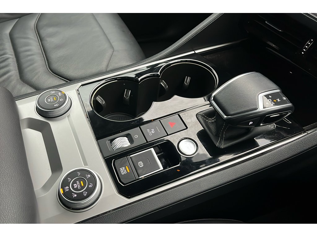 "Leather trimmed gear knob with gloss black inlay/aluminum trim",